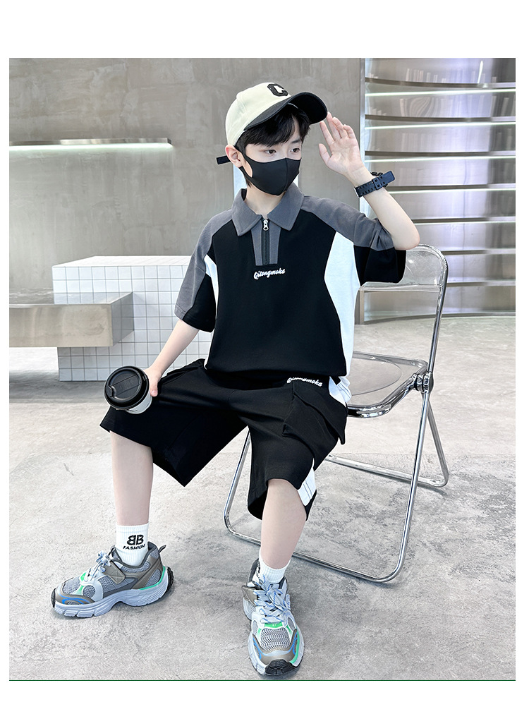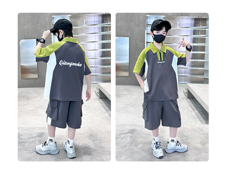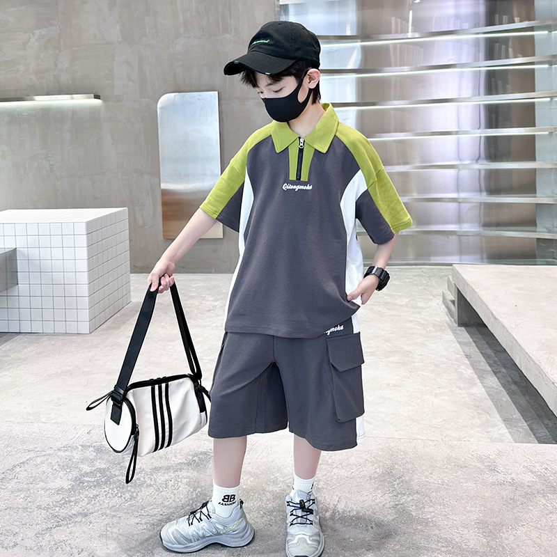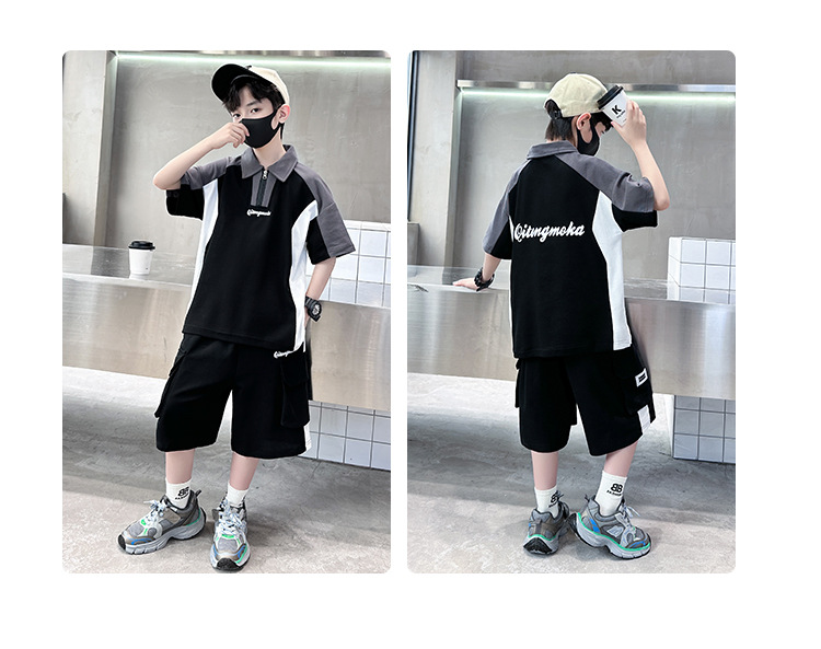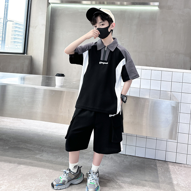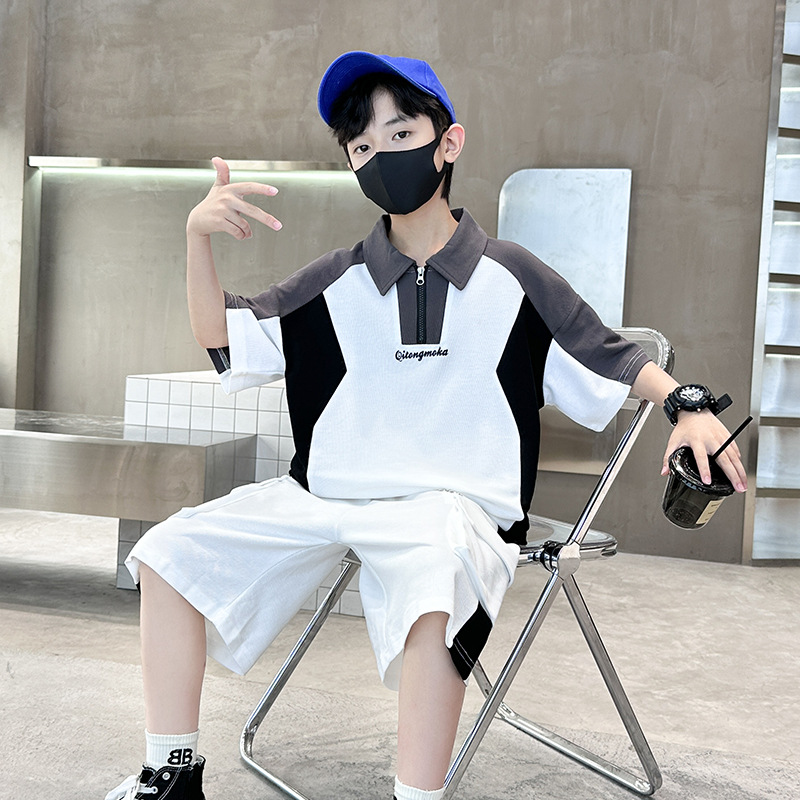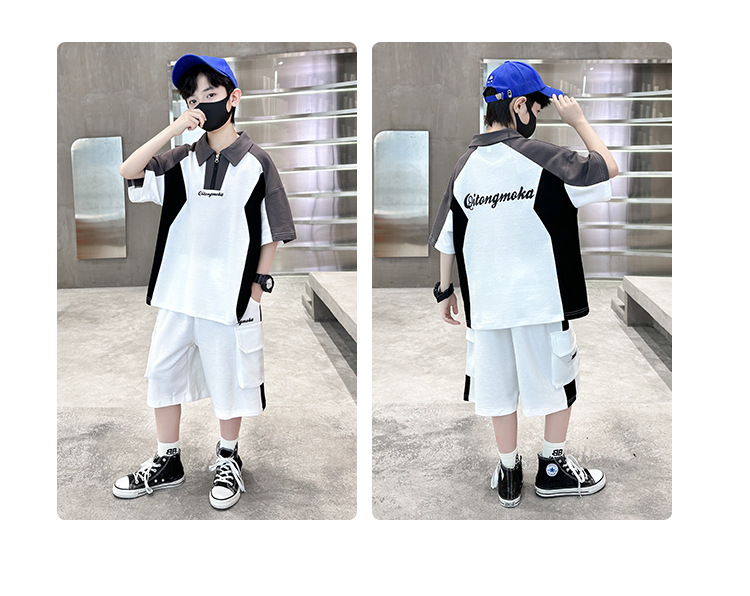 어린이 착용 소년 여름 착용 세트 2024 새로운 잘 생긴 소년의 여름 반팔 캐주얼 투피스 세트