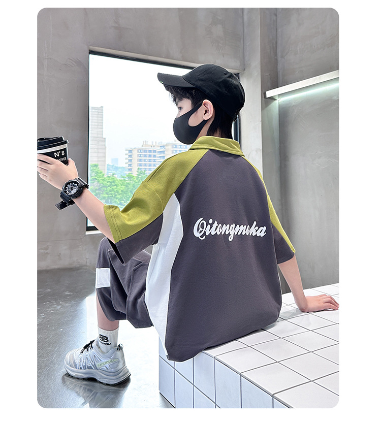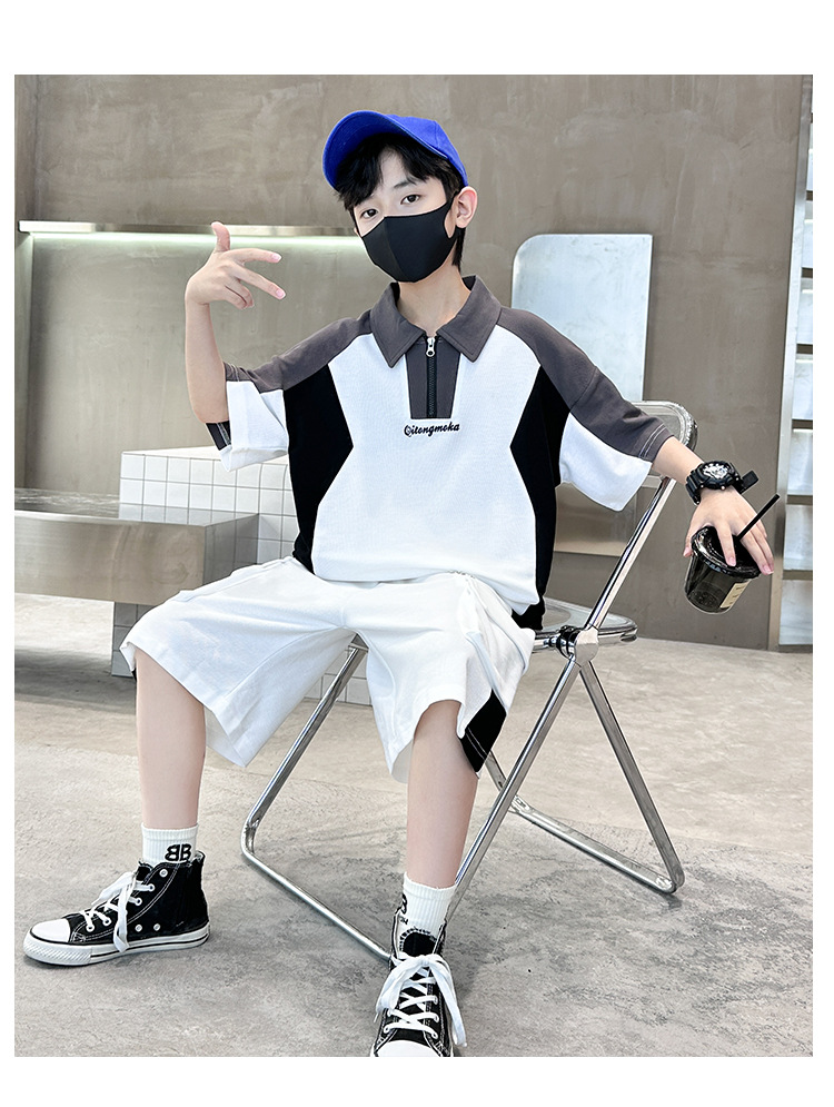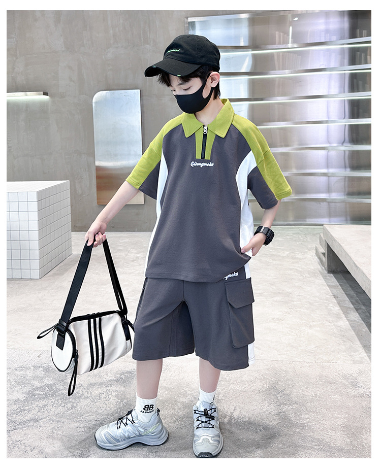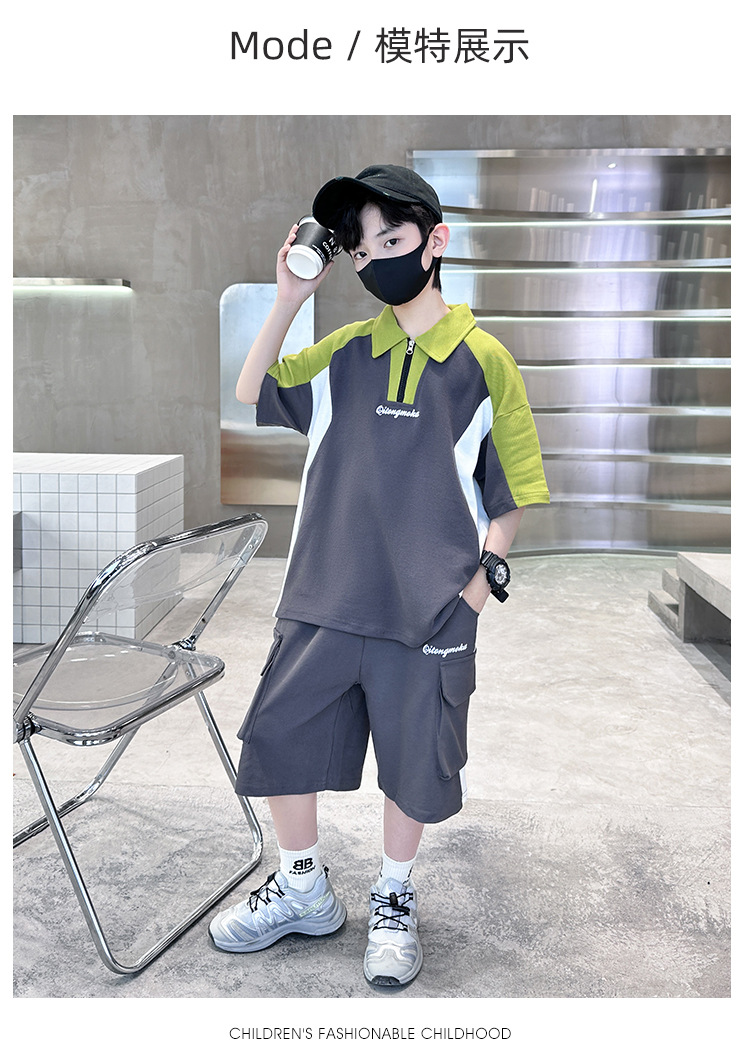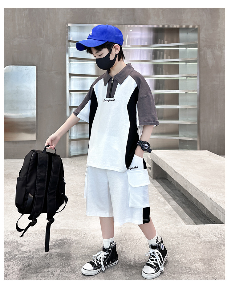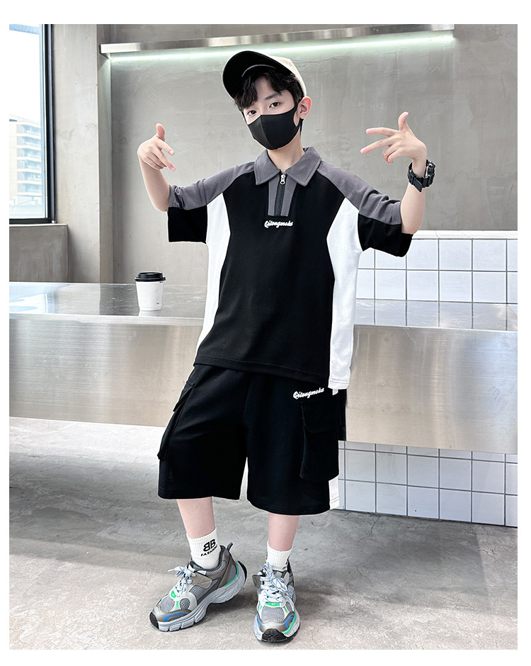어린이 착용 소년 여름 착용 세트 2024 새로운 잘 생긴 소년의 여름 반팔 캐주얼 투피스 세트