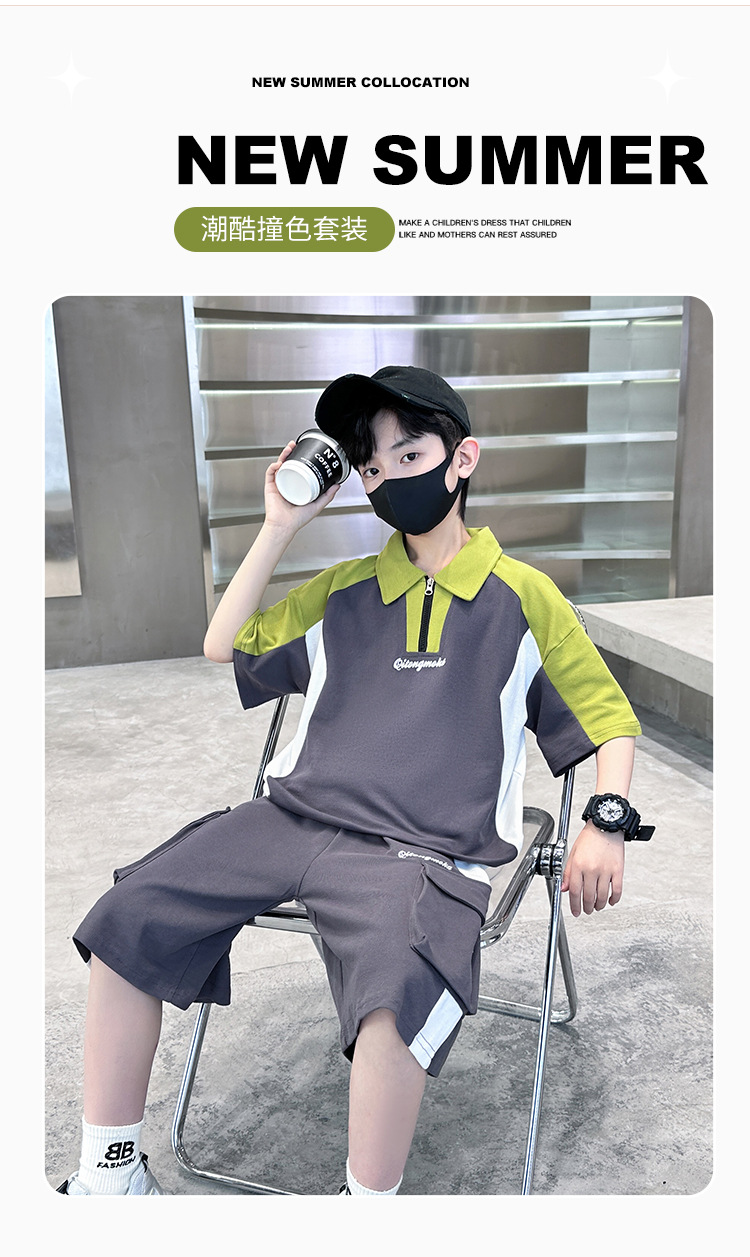 어린이 착용 소년 여름 착용 세트 2024 새로운 잘 생긴 소년의 여름 반팔 캐주얼 투피스 세트스토어 가기