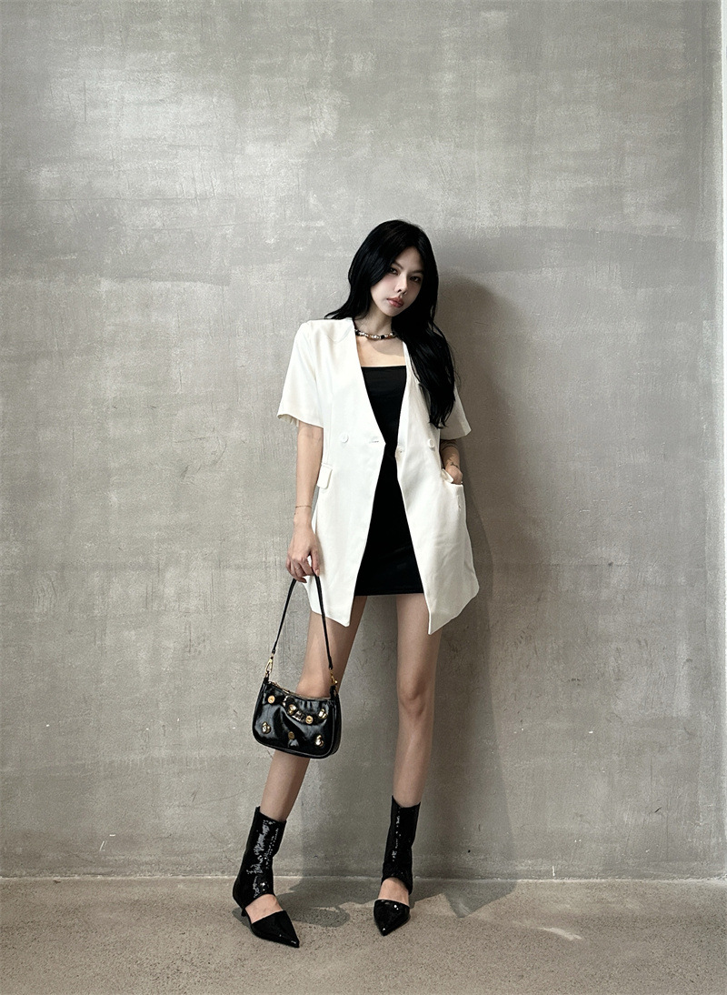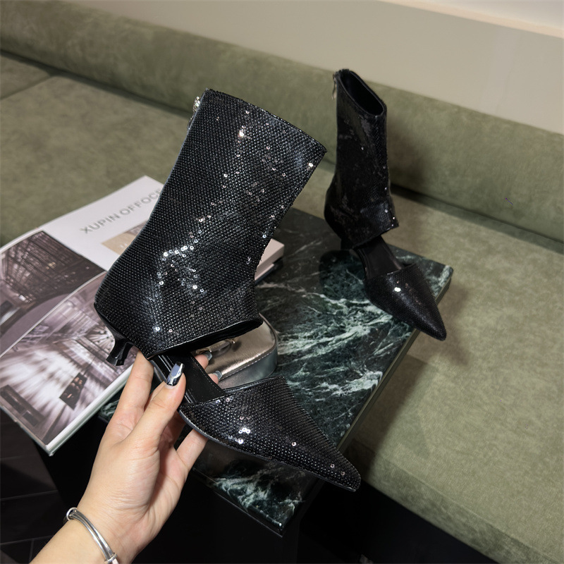 봄과 가을 2024 새로운 포인팅 백 지퍼 쿨 부츠 여성의 얇은 힐 할로우 속편 패션 부츠 우아한 패션 짧은스토어 가기