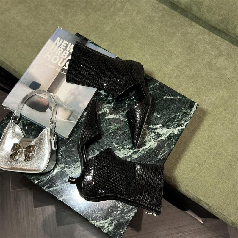봄과 가을 2024 새로운 포인팅 백 지퍼 쿨 부츠 여성의 얇은 힐 할로우 속편 패션 부츠 우아한 패션 짧은