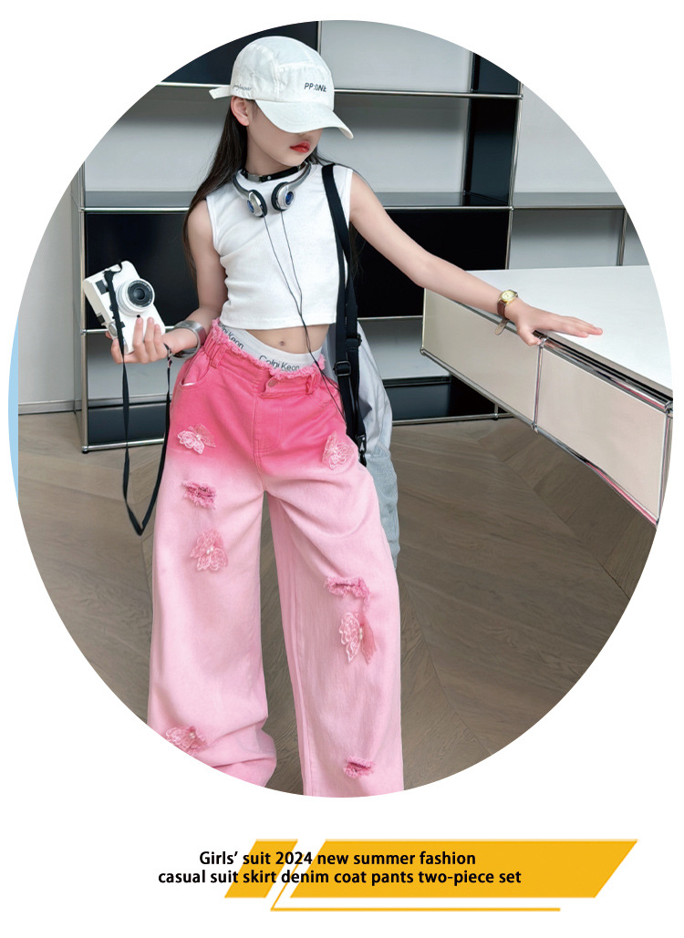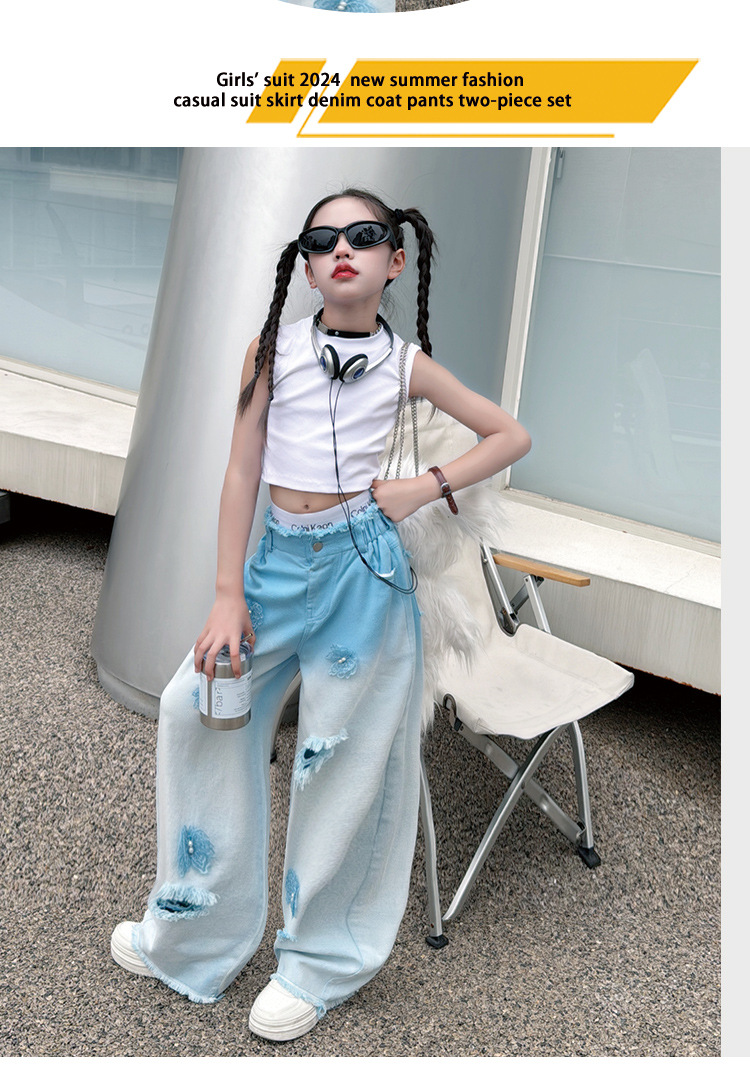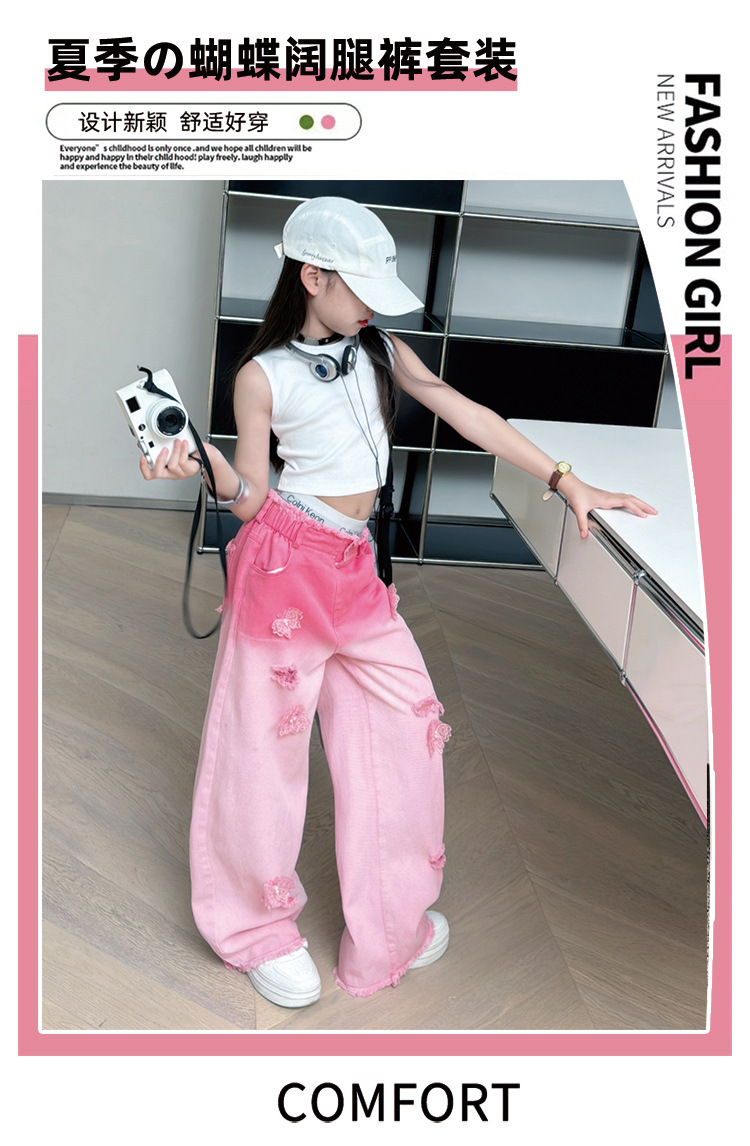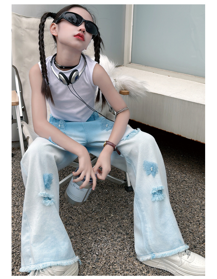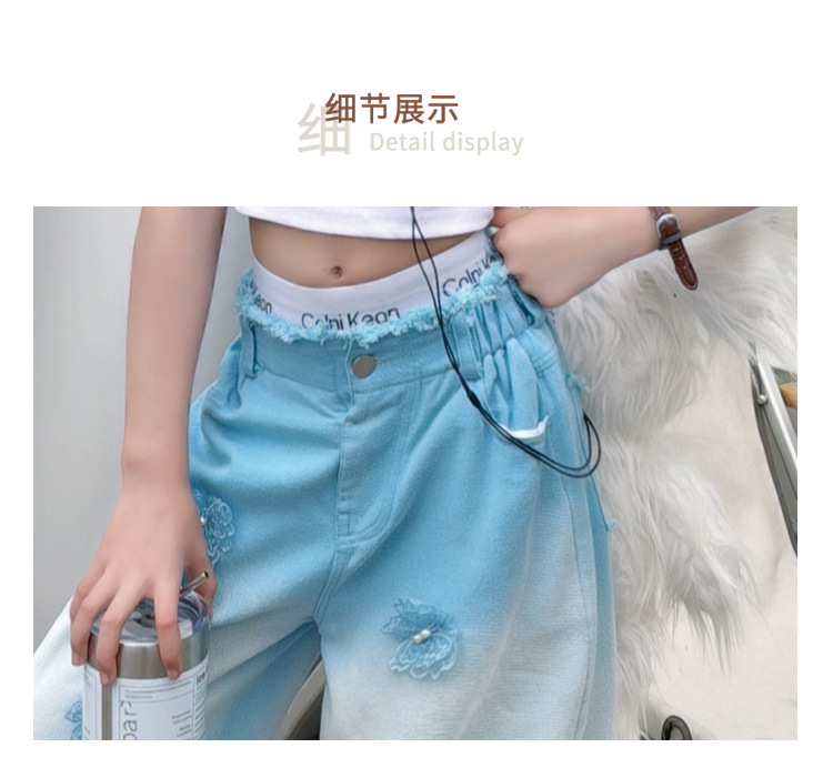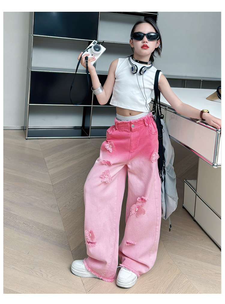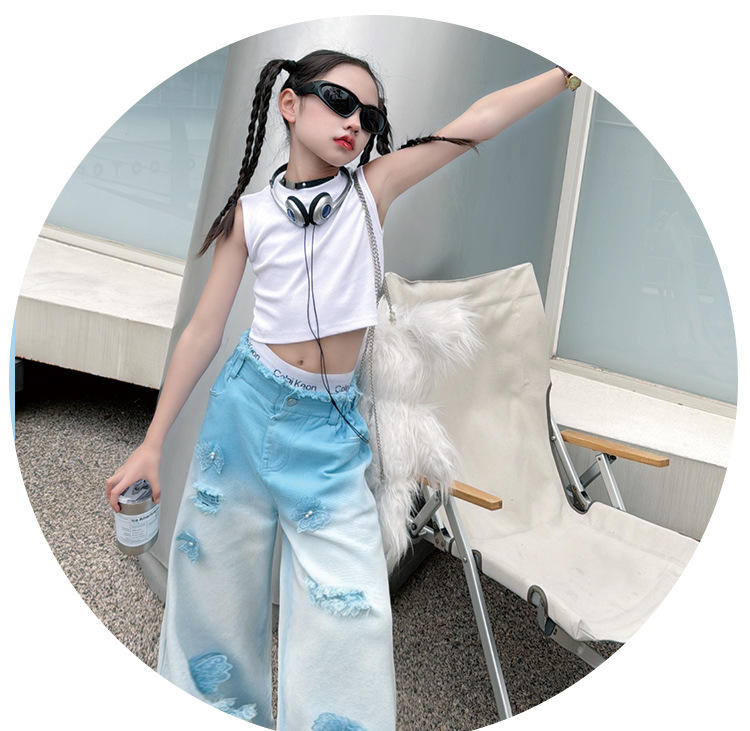 소녀 그라디언트 리핑 청바지 여름 얇은 인터넷 유명인 프라이드 스트리트 걸의 큰 어린이 스트레이트 와이드 레그 바지 높은 허리 바지스토어 가기