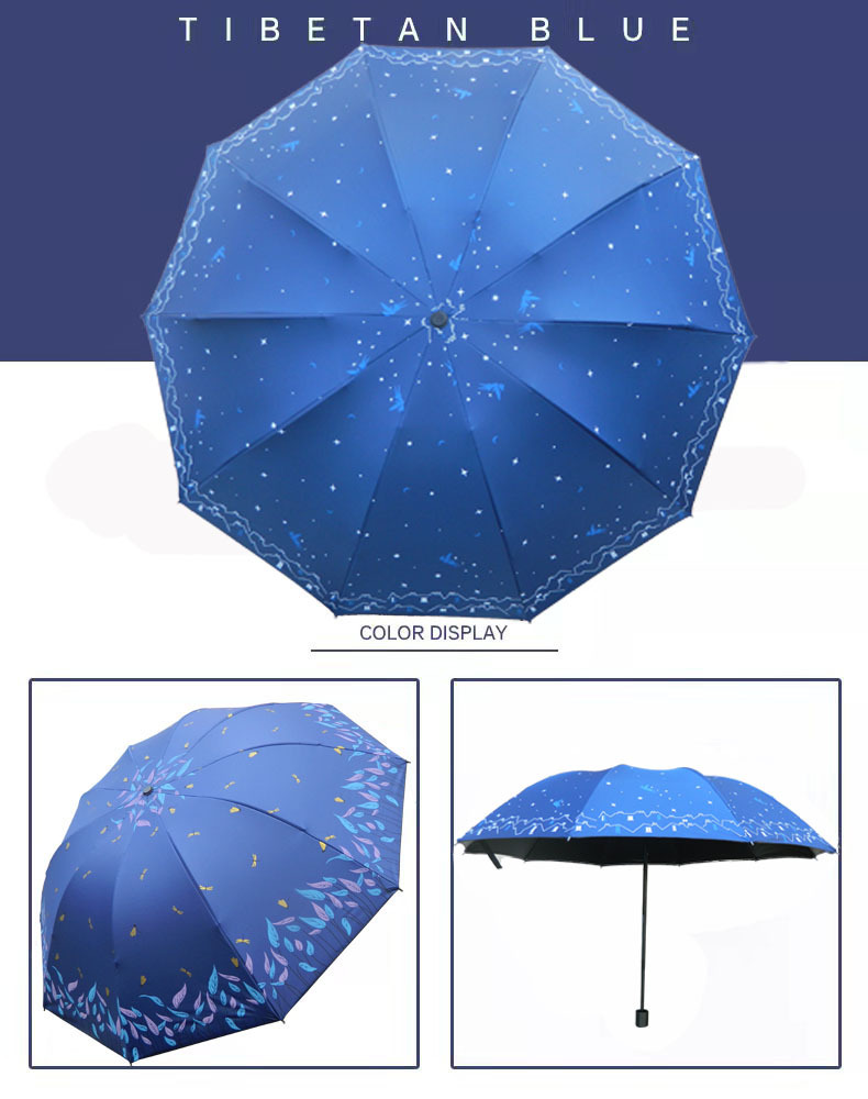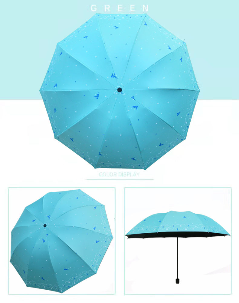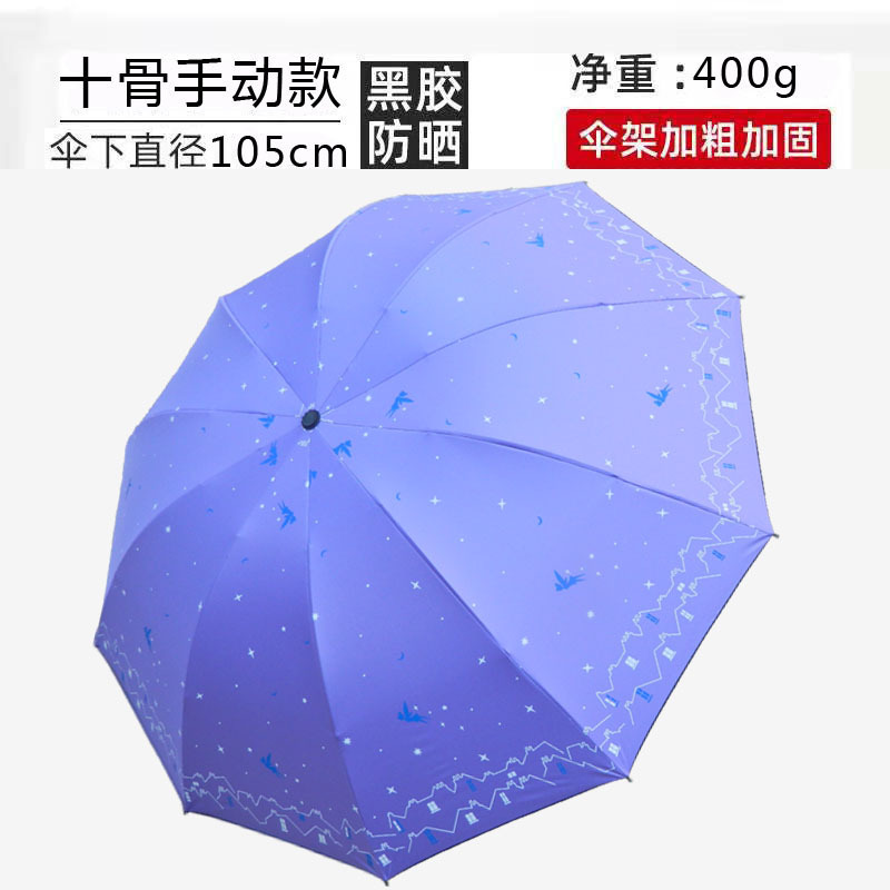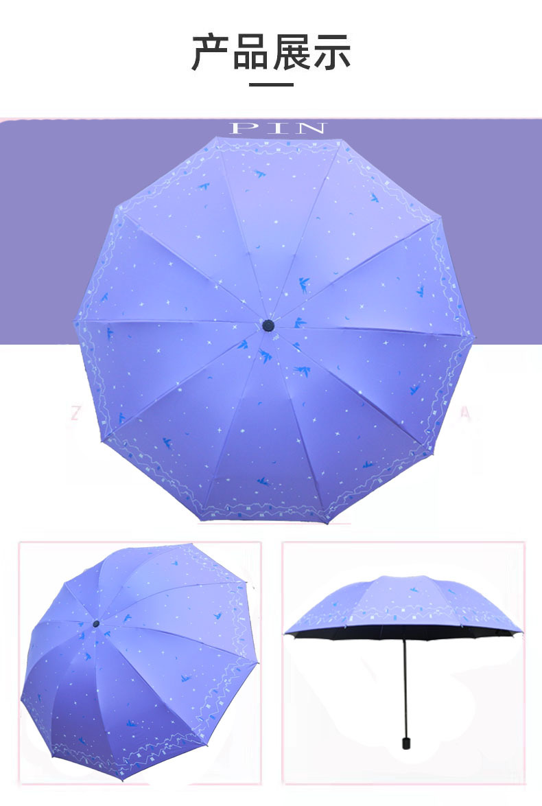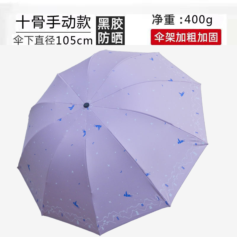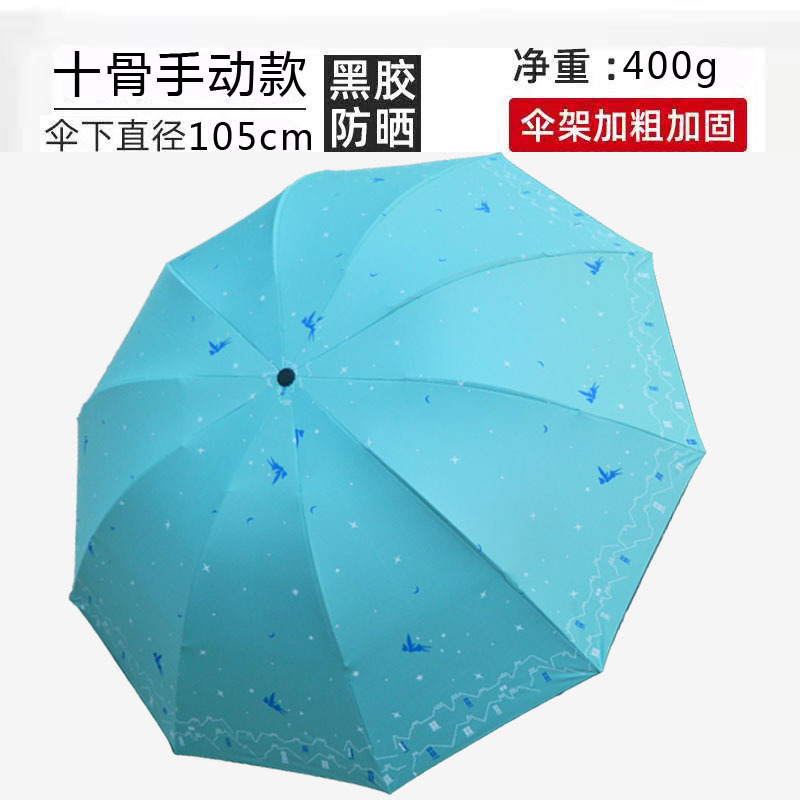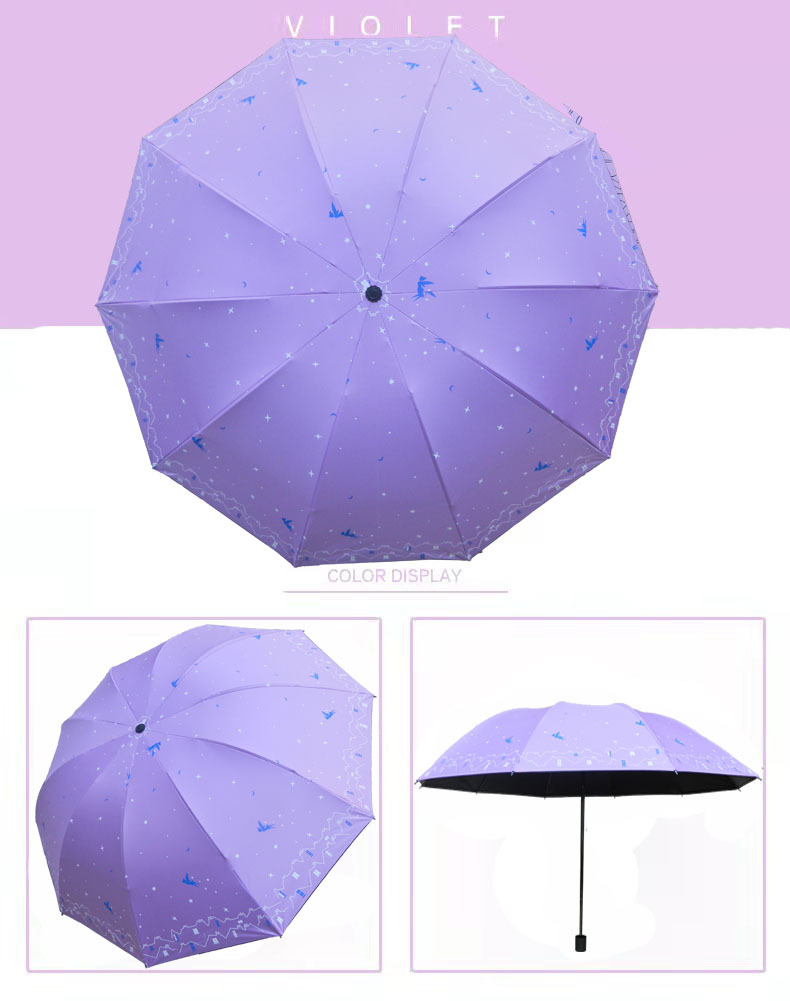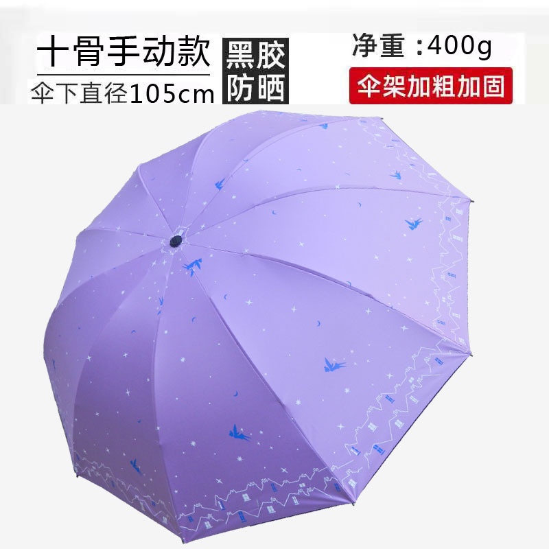 10 뼈 확대 강화 3 배 햇볕이 잘 드는 우산 아름다운 꽃 우산 검은 고무 선 스크린 작은 맑은 차양 우산