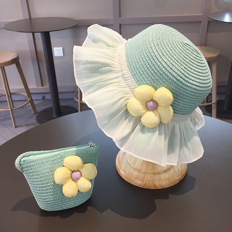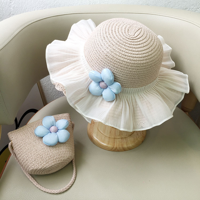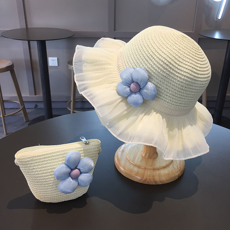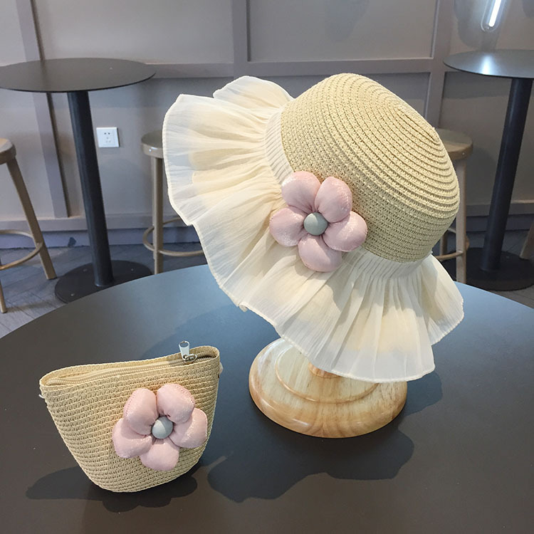 여름 여아용 햇빛 가리개 밀짚모자, 여름 여아용 해변 자외선 차단 어부 공주 어린 소녀 모자, 가방, 큰 챙 모자