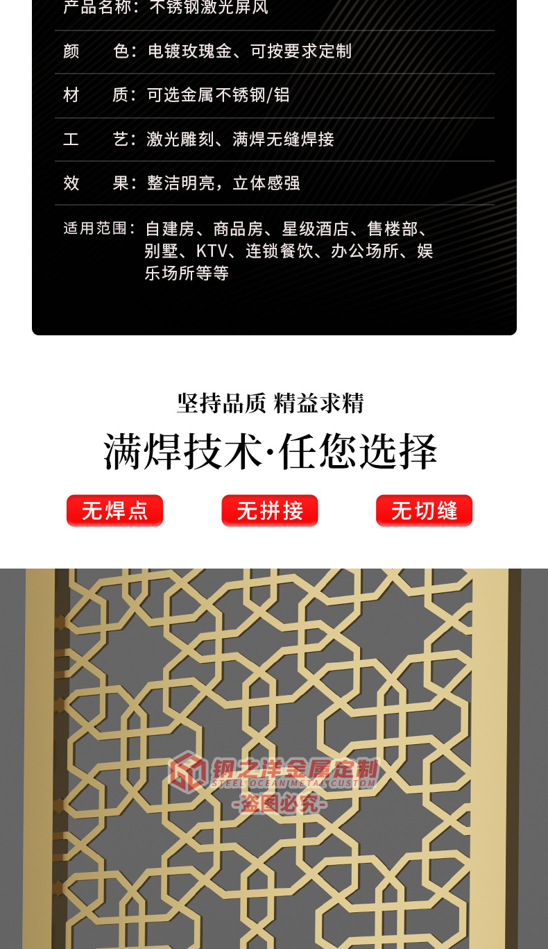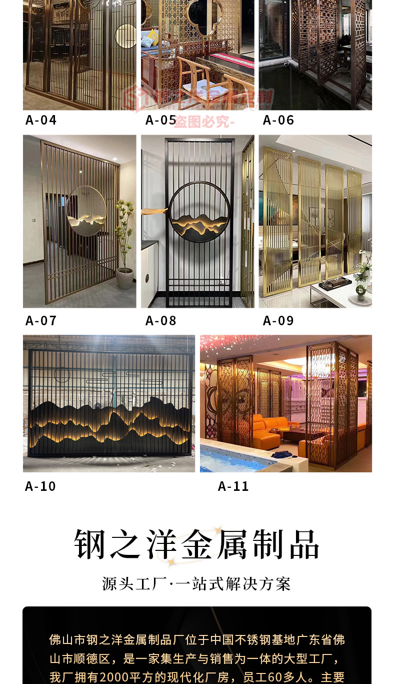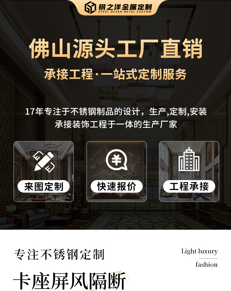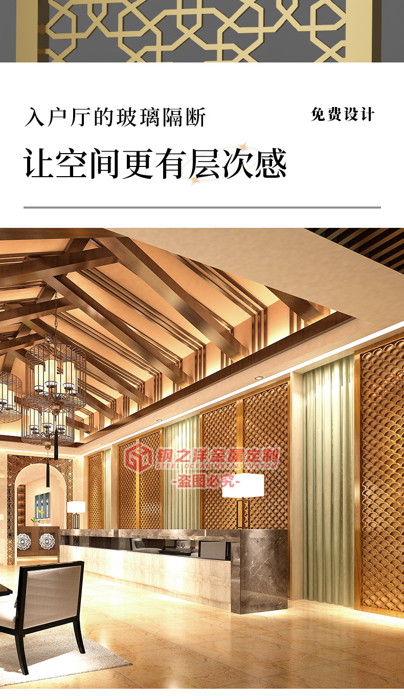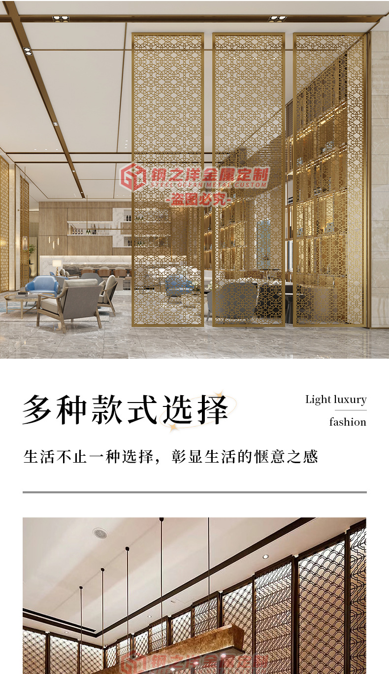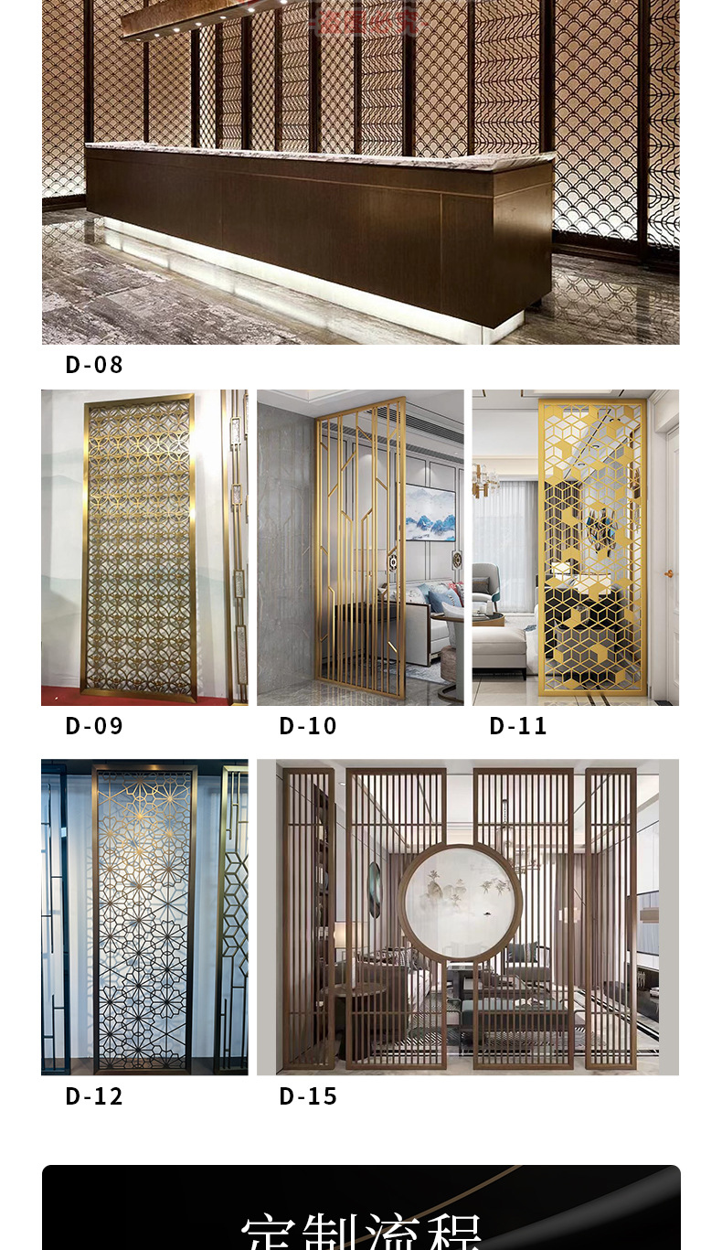 새로운 중국 레스토랑 스테인레스 스틸 카드 홀더 화면 빛 럭셔리 거실 입구 파티션 빈 금속 화면