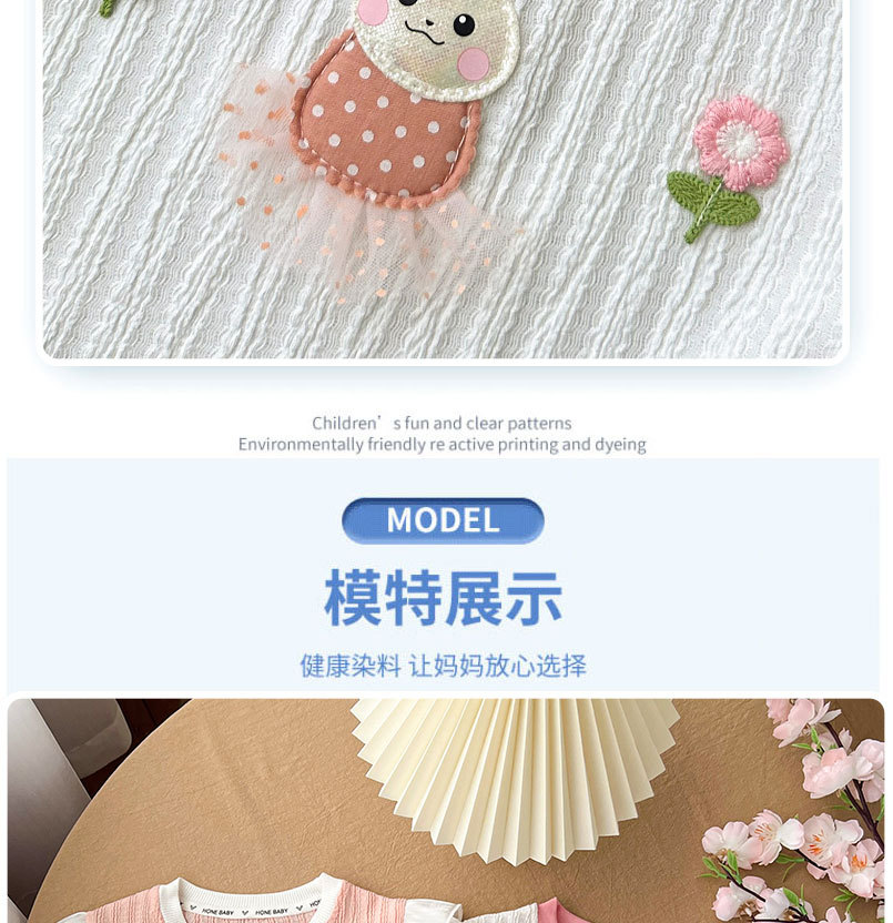 • 꽃 토끼 반 소매 세트 파우더