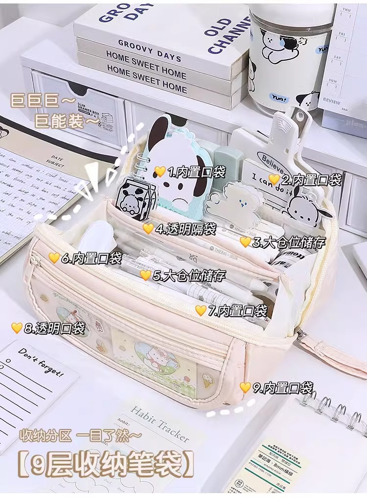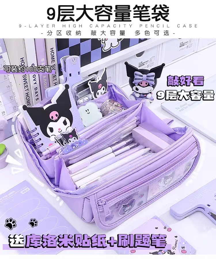 Kulomi 연필 케이스 9 층 대용량 중학교 여자 초등학생 높은 컬러 값 귀여운 만화 연필 케이스 문구 상자