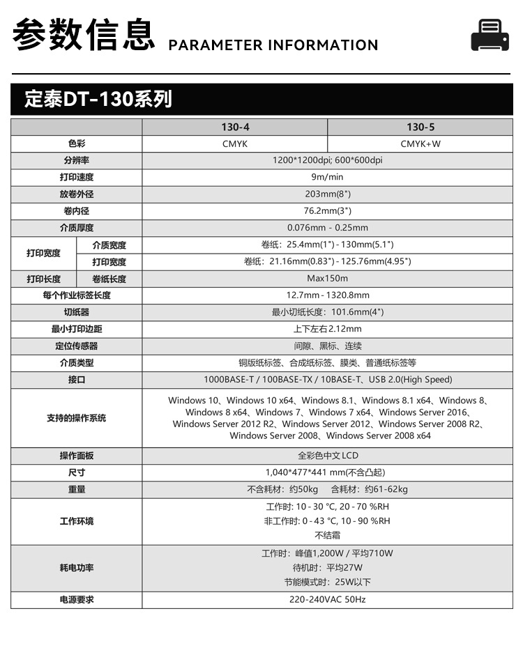 컬러 바코드 라벨 프린터 화이트 잉크 프린터 DT130 시리즈