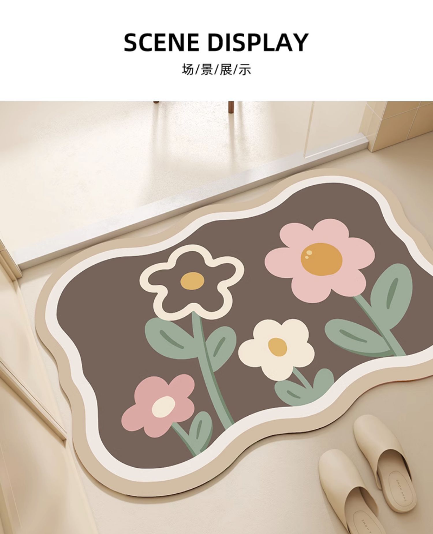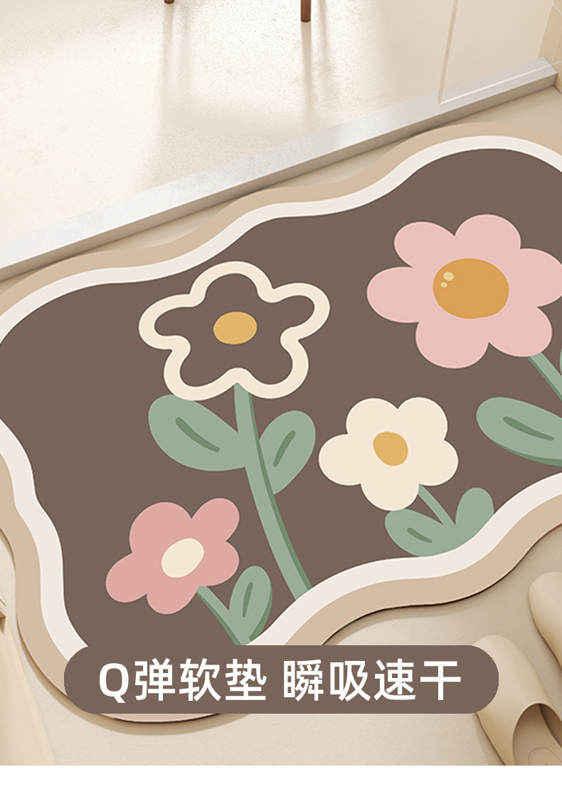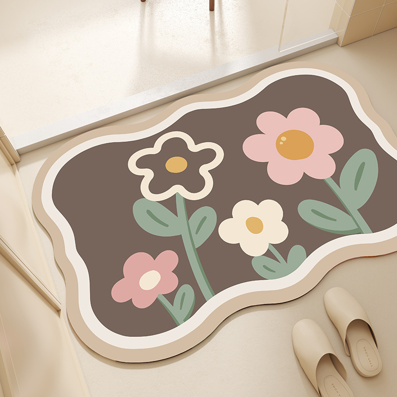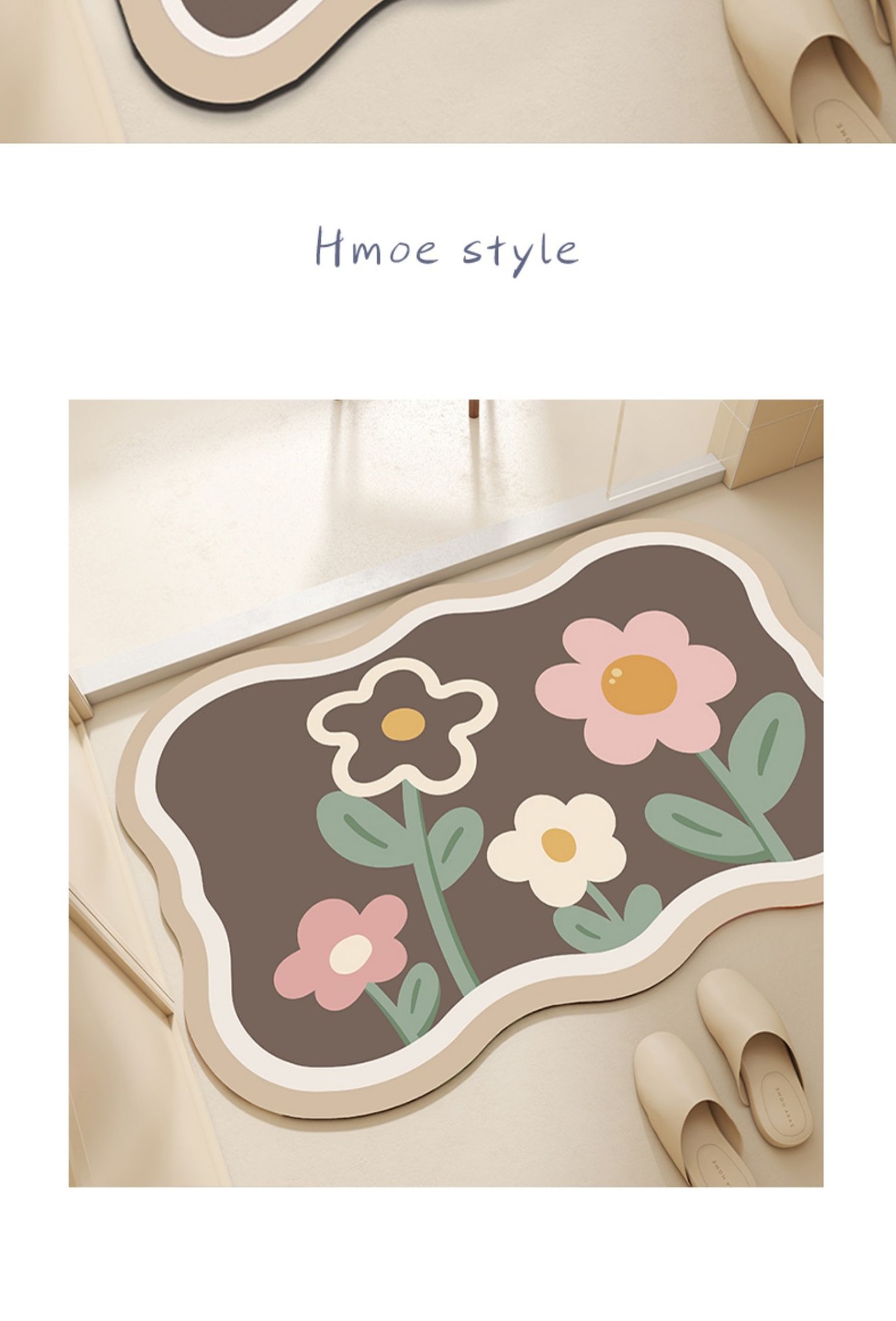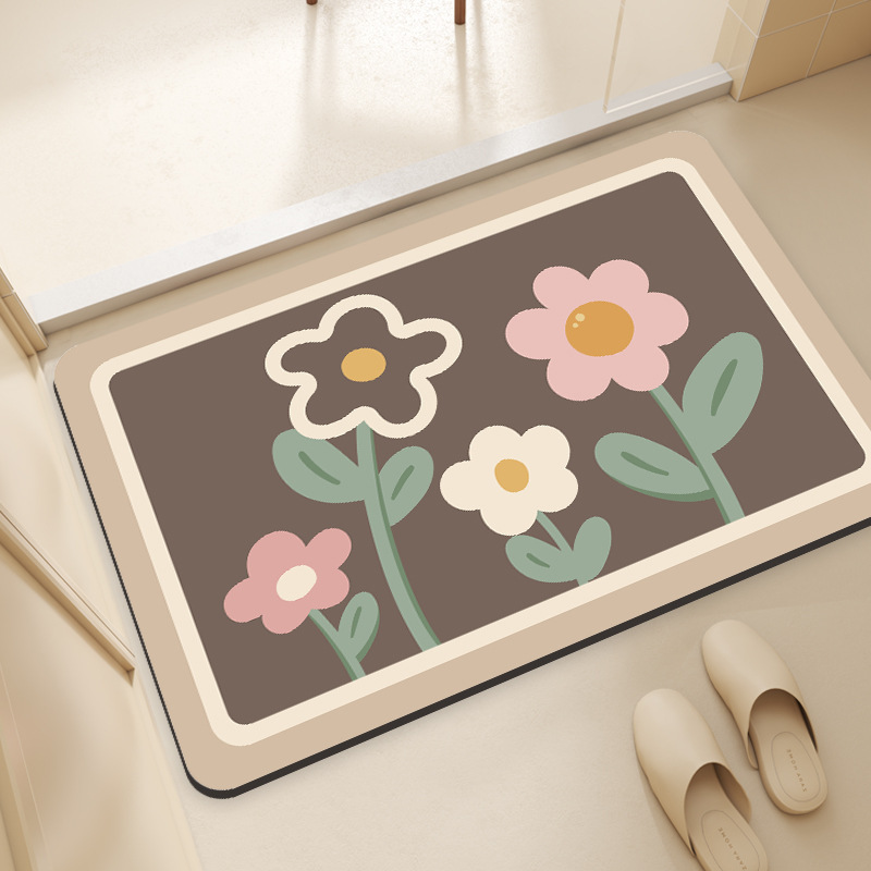 INS Flower Diatom 진흙 매트 욕실 빠른 건조 발 매트 화장실 미끄럼 방지 매트 화장실 문 흡수성 매트스토어 가기