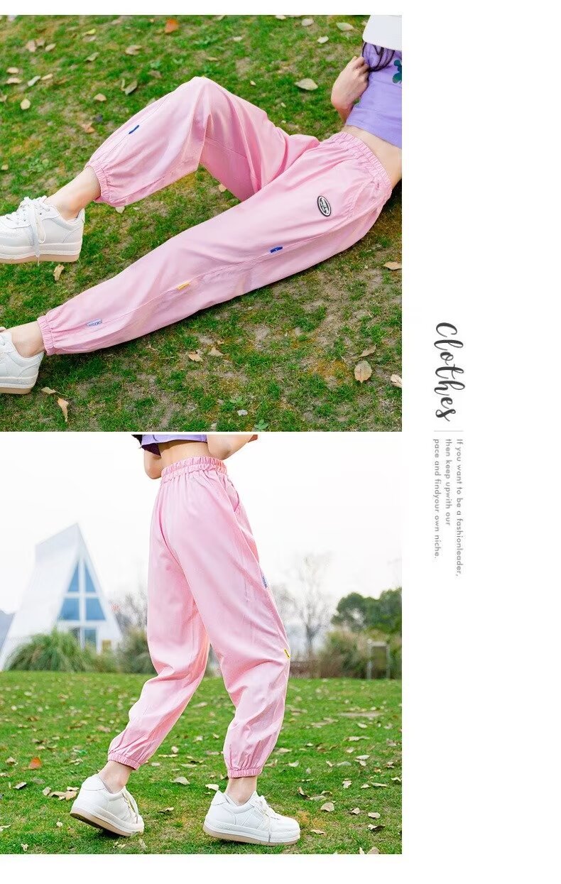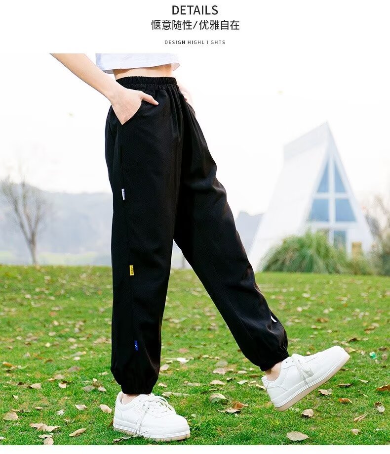 소녀 안티-모기 바지 여름 얇은 어린이 여름 바지 여자 아이스 실크 바지 여름 블랙 큰 어린이 스포츠 바지