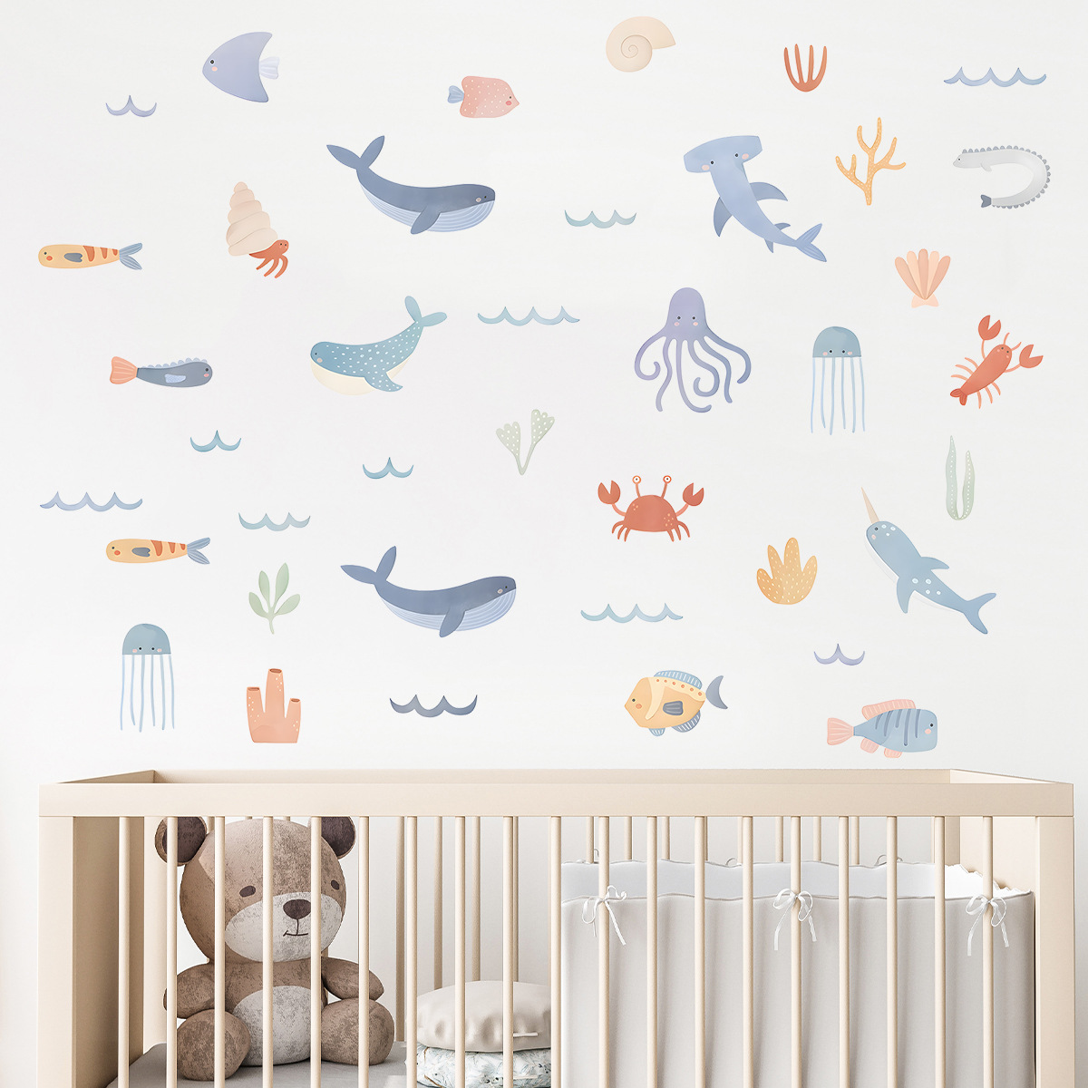 귀여운 해양 생물 자기 접착 벽 스티커 만화 귀여운 재미 어린이 방 유치원 장식 스티커 BR0348F
