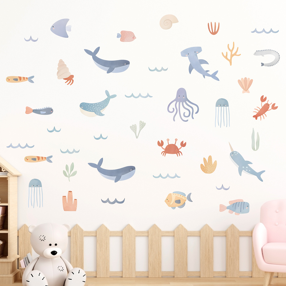 귀여운 해양 생물 자기 접착 벽 스티커 만화 귀여운 재미 어린이 방 유치원 장식 스티커 BR0348F스토어 가기
