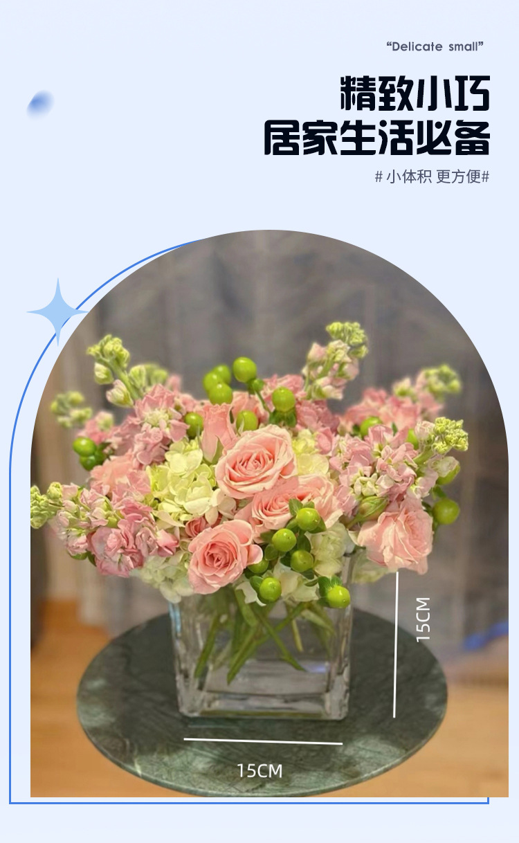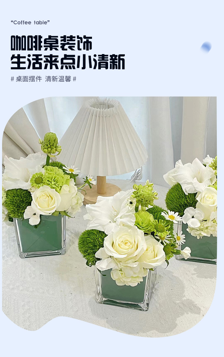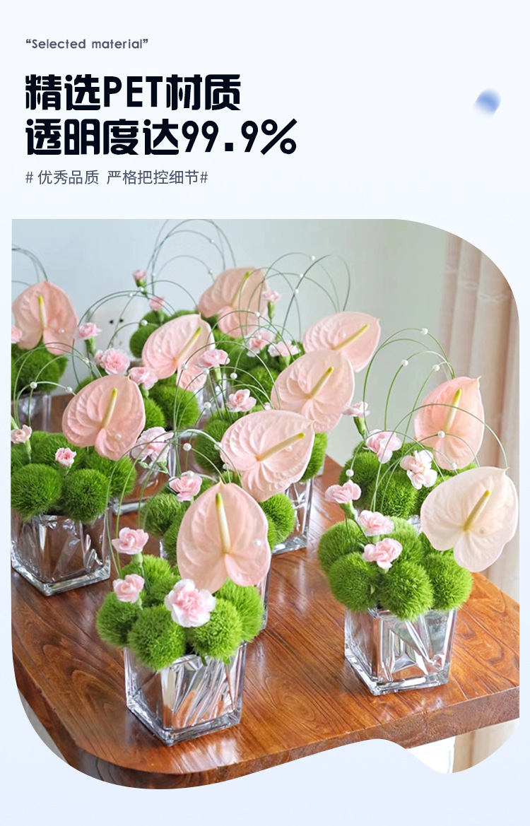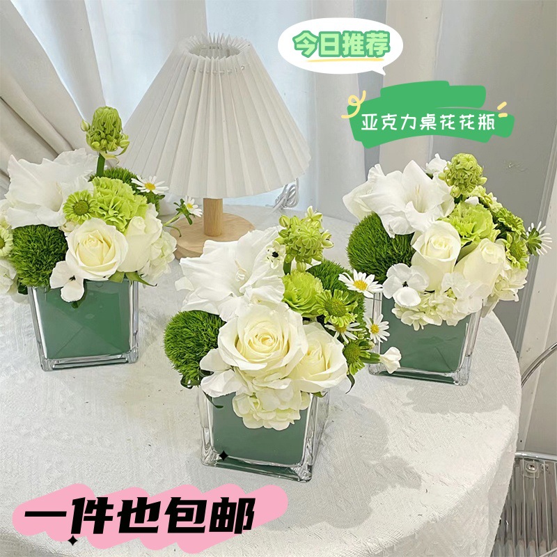 아크릴 드롭 방지 꽃병 수경 로즈 스퀘어 투명 꽃병 그린 로즈 비즈니스 스퀘어 꽃병 장식 꽃 삽입 꽃다발스토어 가기