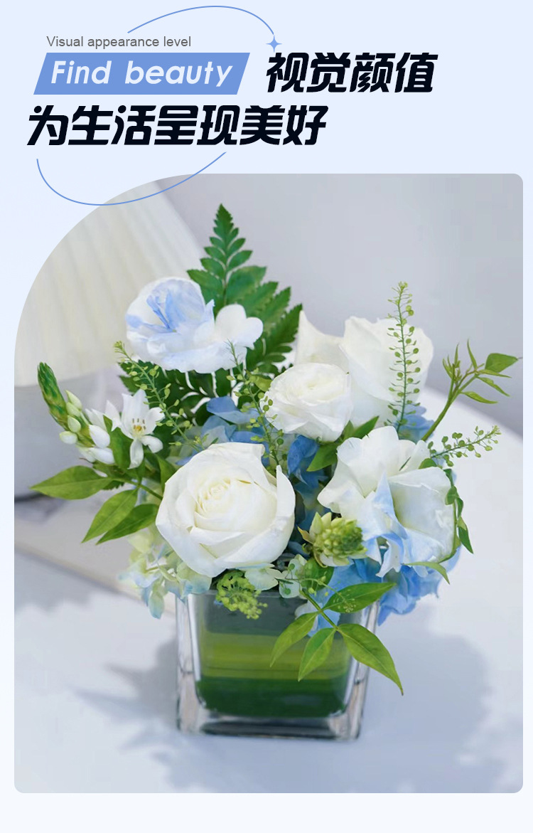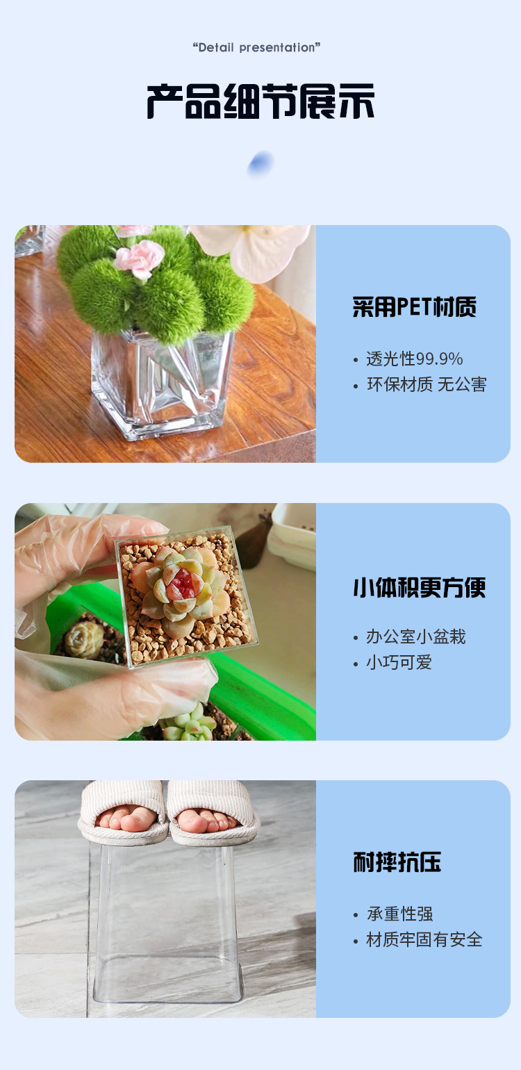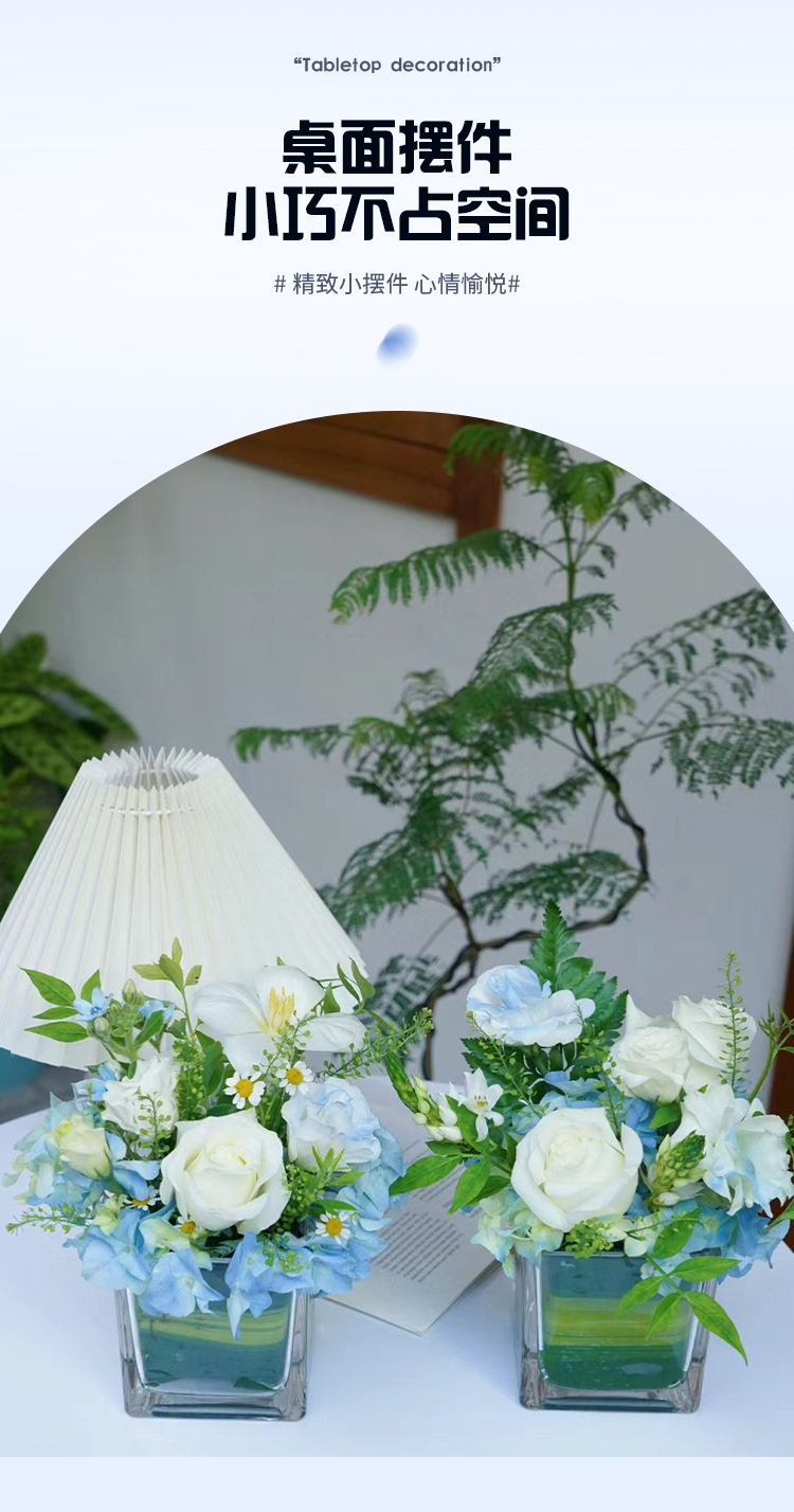 아크릴 드롭 방지 꽃병 수경 로즈 스퀘어 투명 꽃병 그린 로즈 비즈니스 스퀘어 꽃병 장식 꽃 삽입 꽃다발스토어 가기