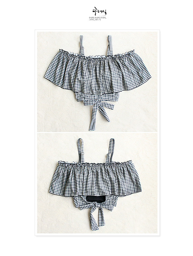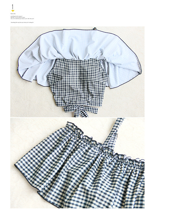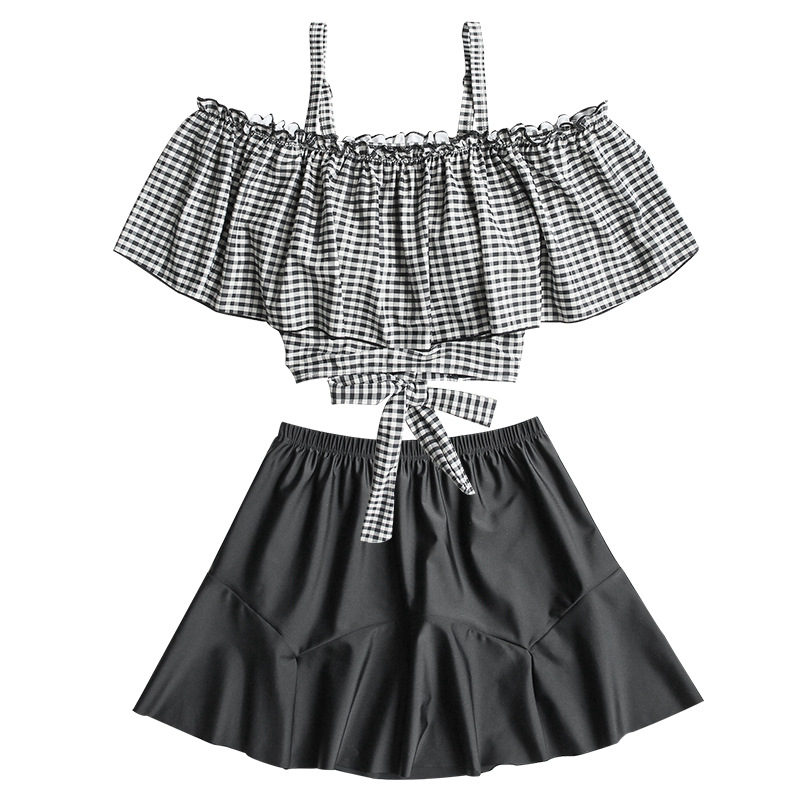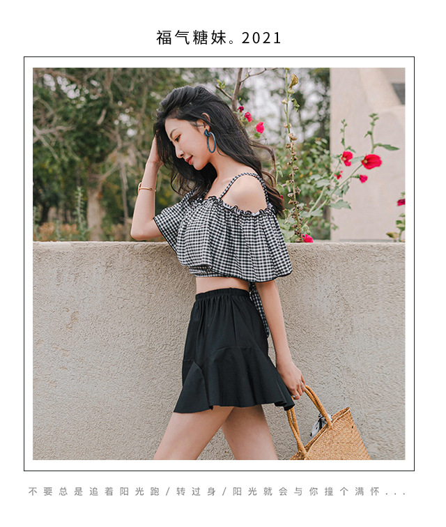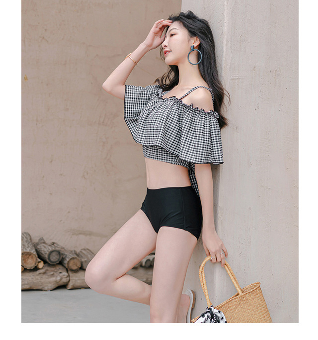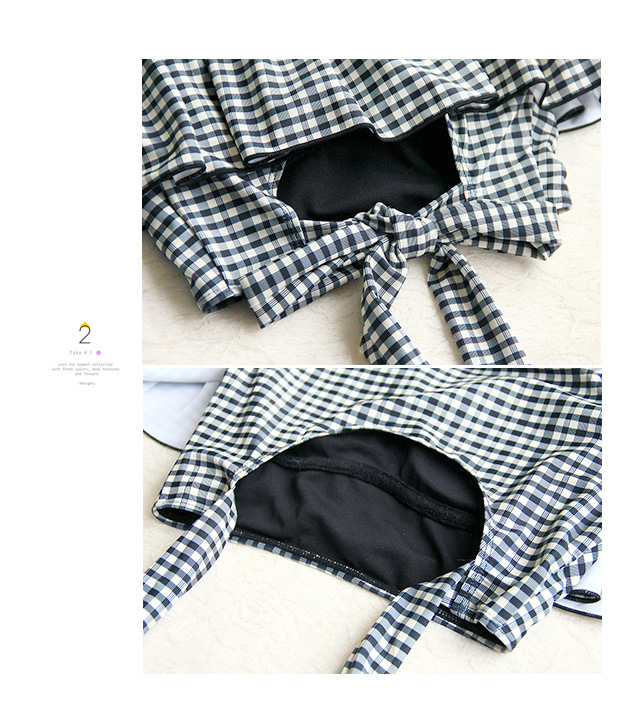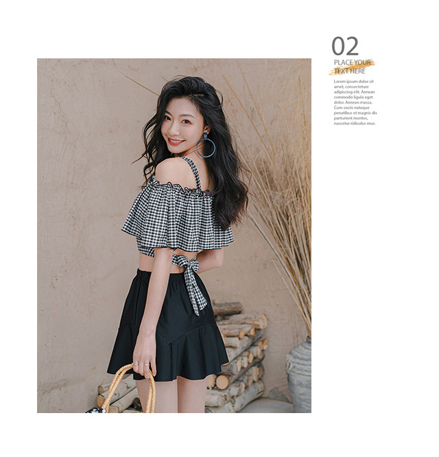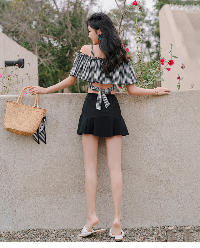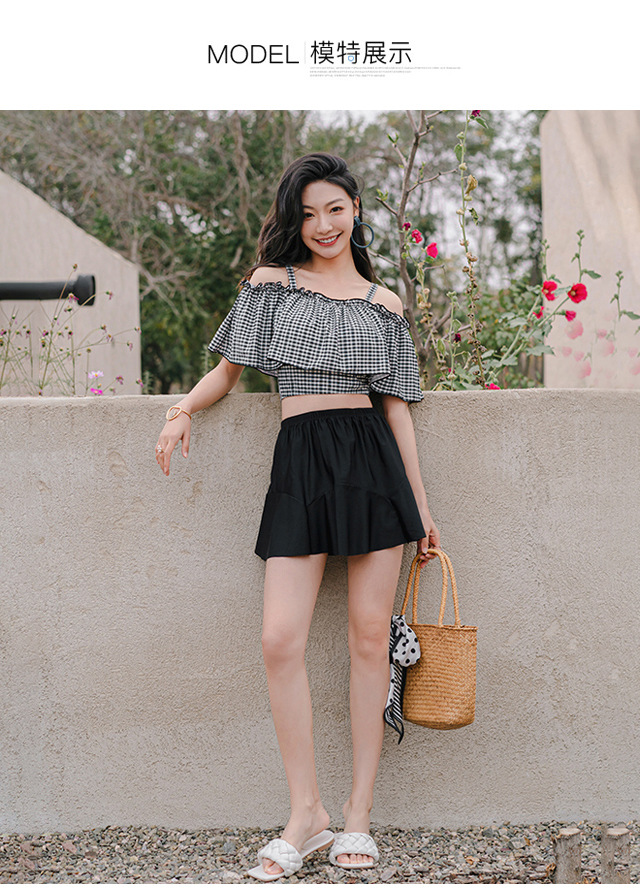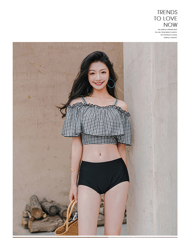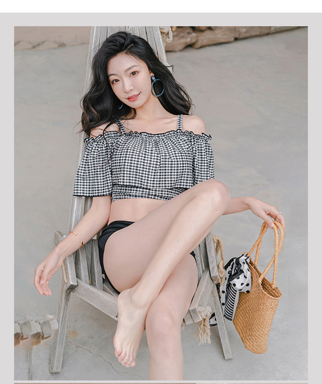 스플릿 수영복 3 피스 소녀의 여름 학생의 작은 바디 러플 가슴 덮음 슬리밍 레트로 플레이드 온천 수영복