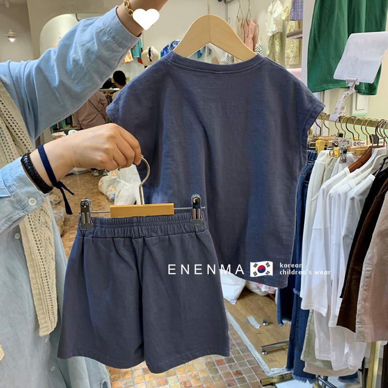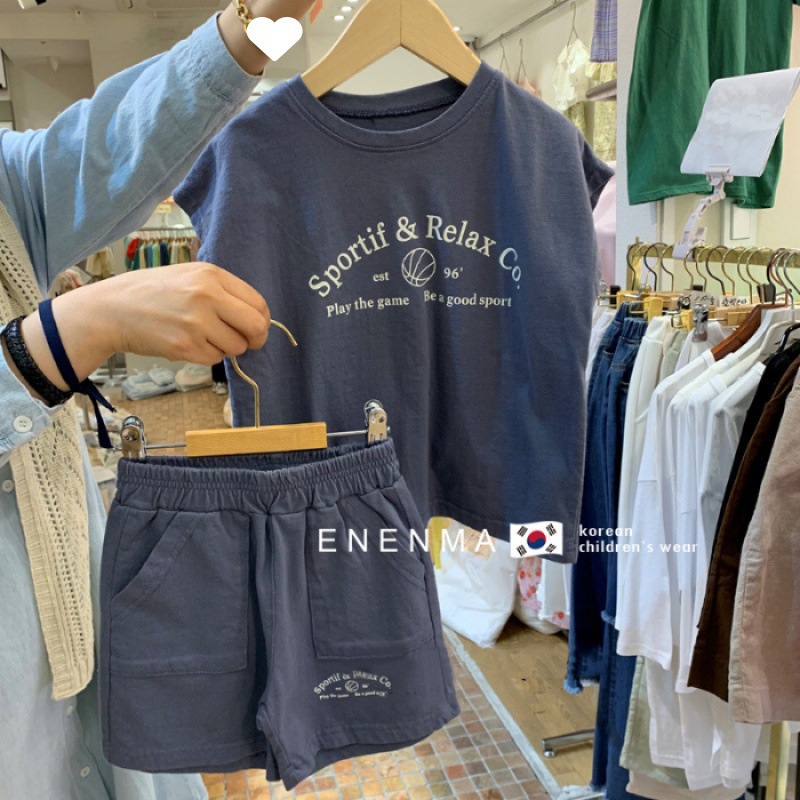 소년 소녀 여름 세트 아기 외국 스타일 어린이 성격 조수 스포츠 대외 무역 INS 편지 티셔츠 반바지 투피스 세트스토어 가기