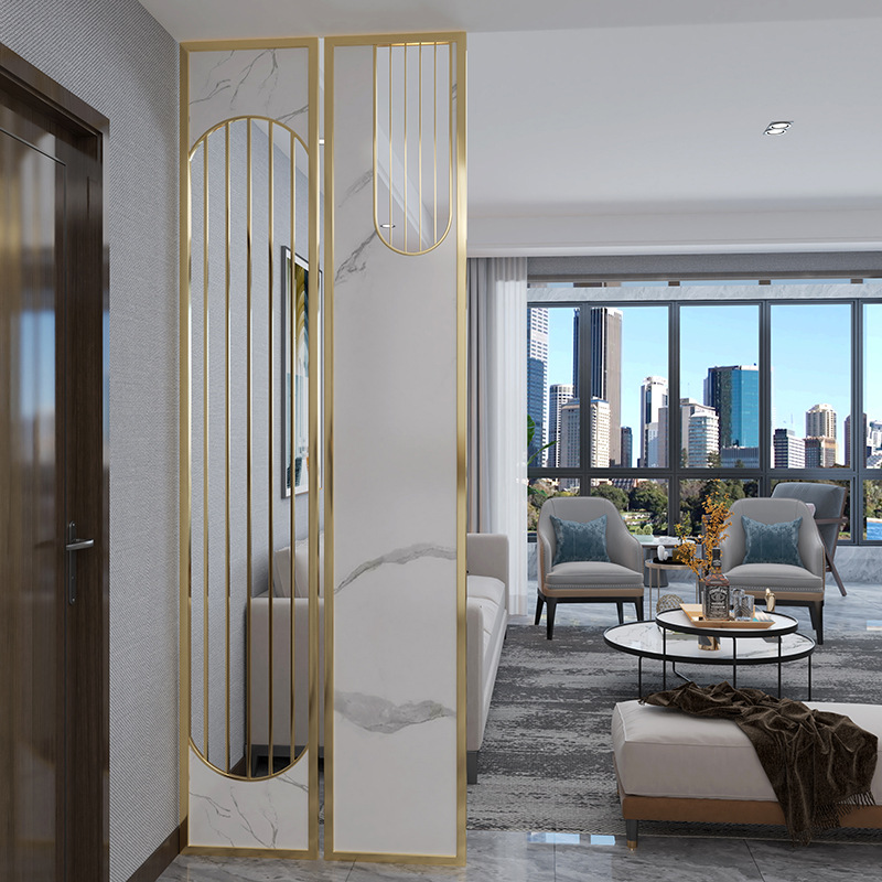 창홍 유리 파티션 거실 입구 금속 장식 벽 빛 럭셔리 현대 간단한 대피소 스테인레스 스틸 스크린