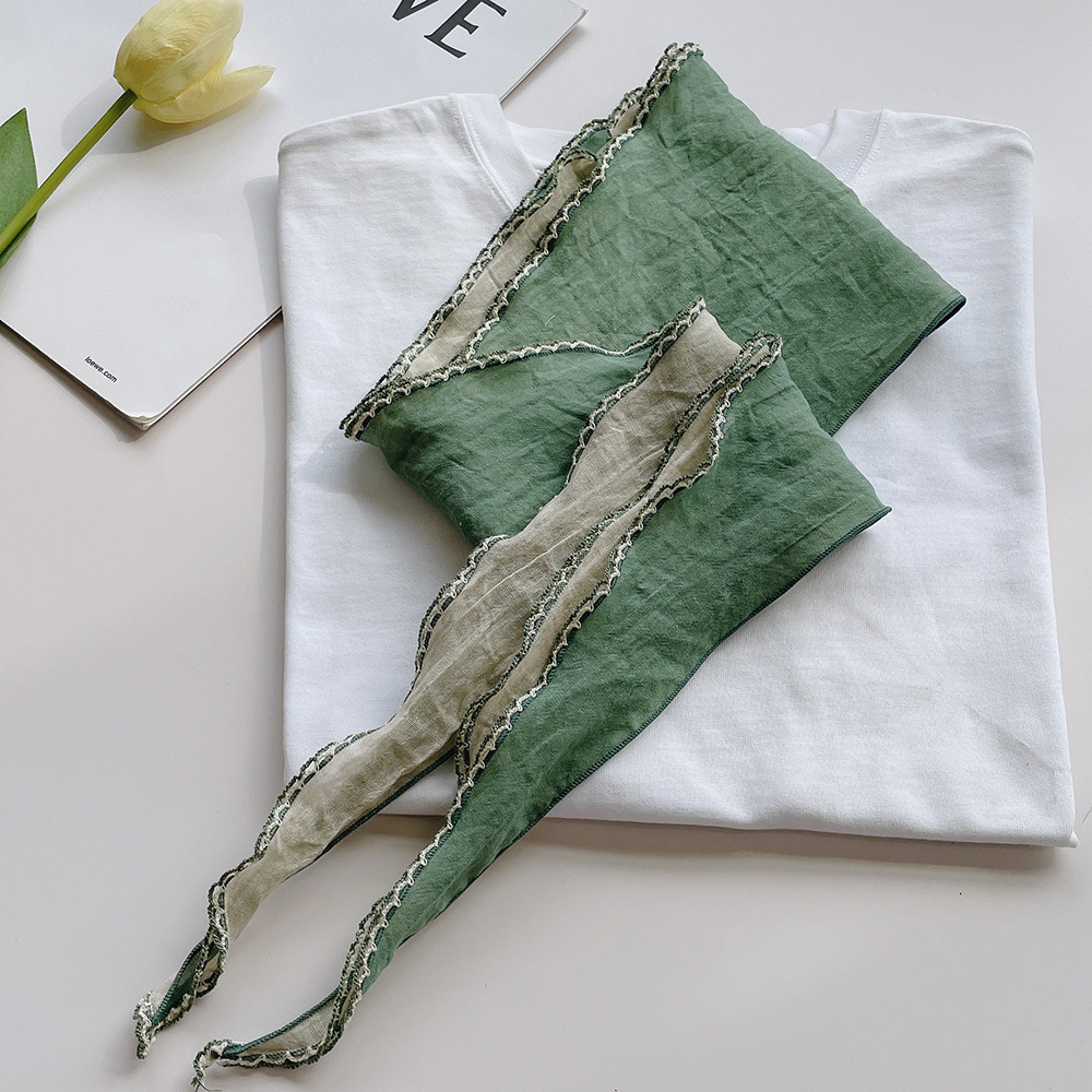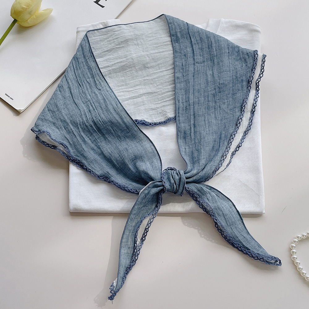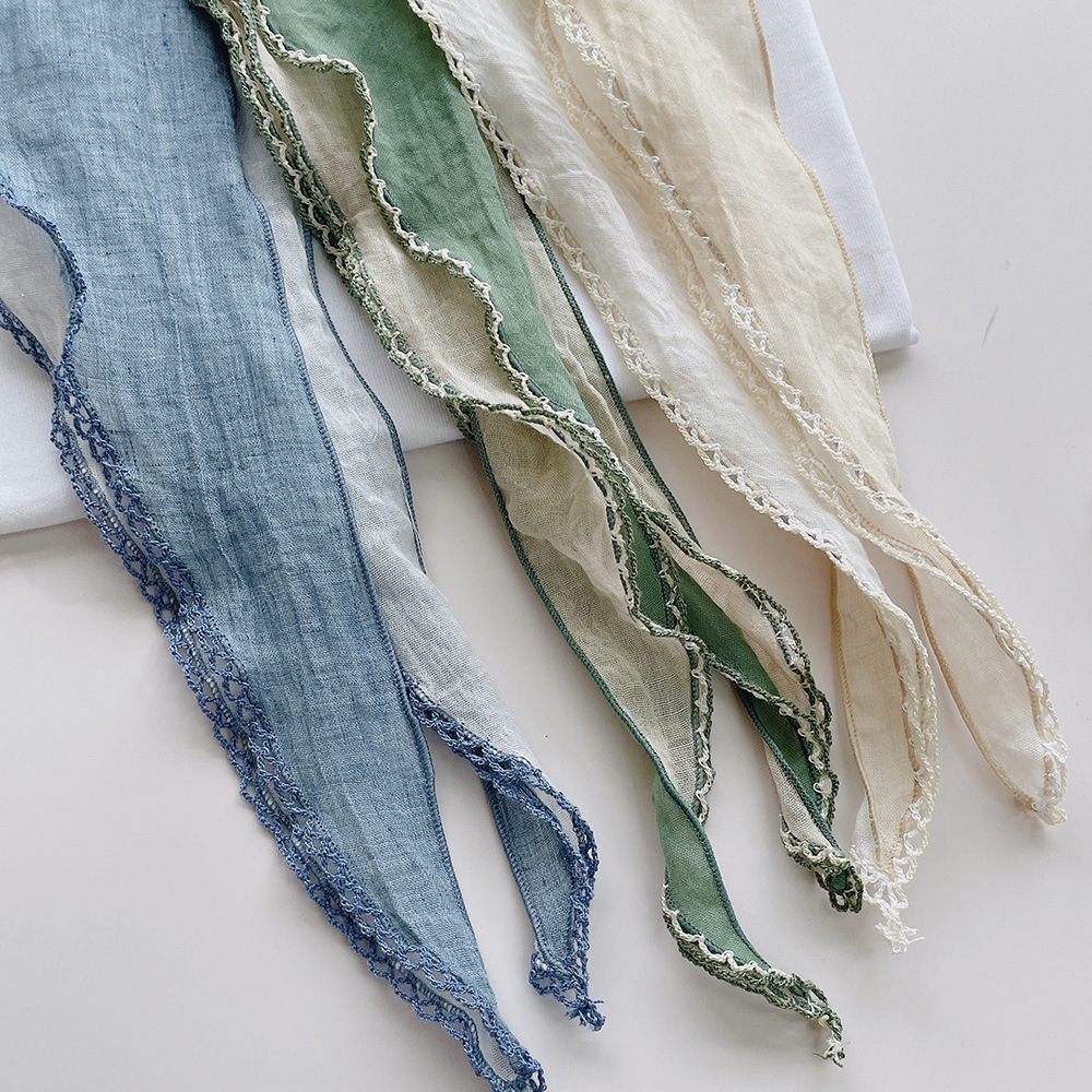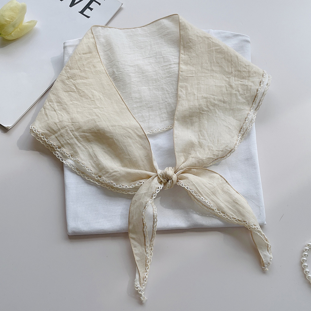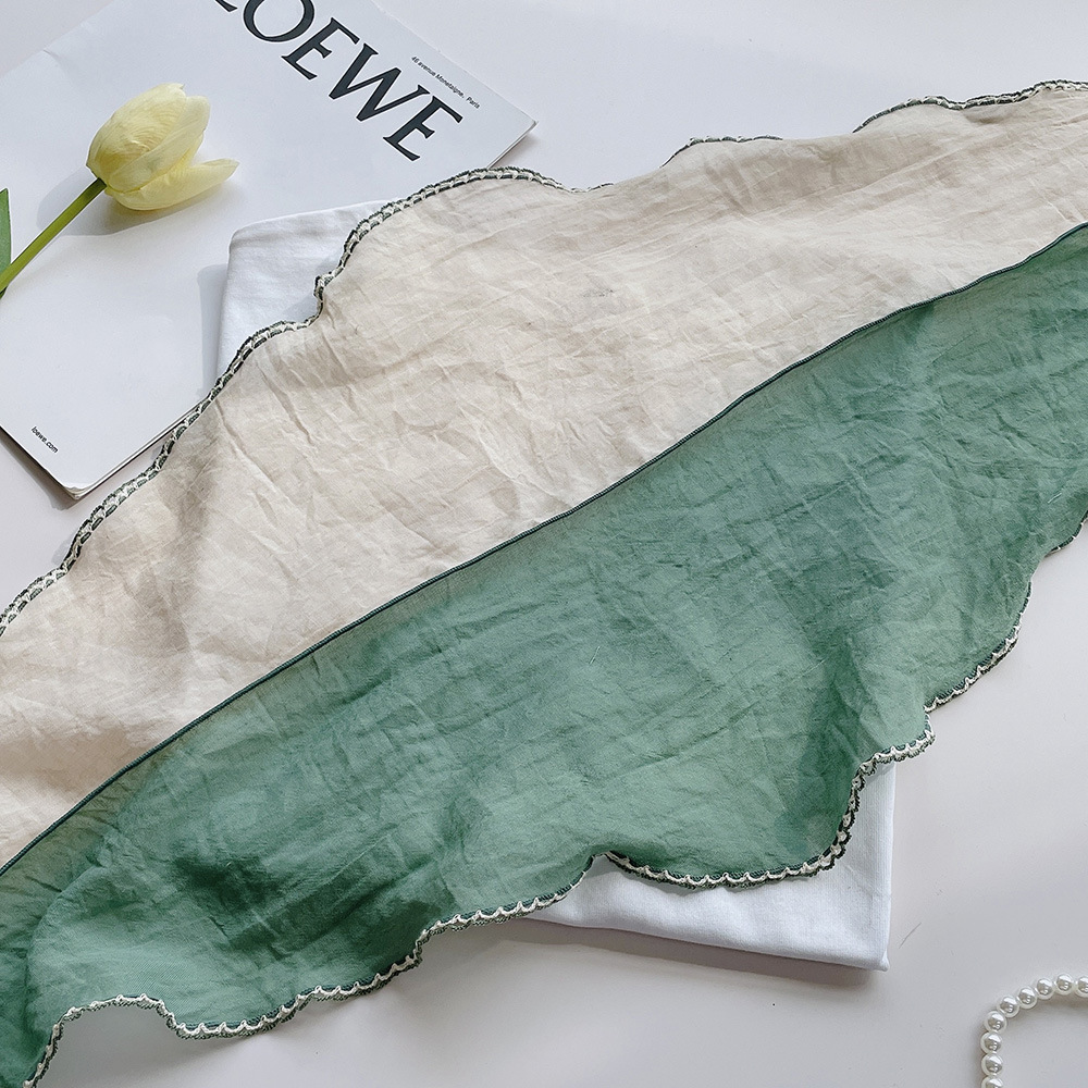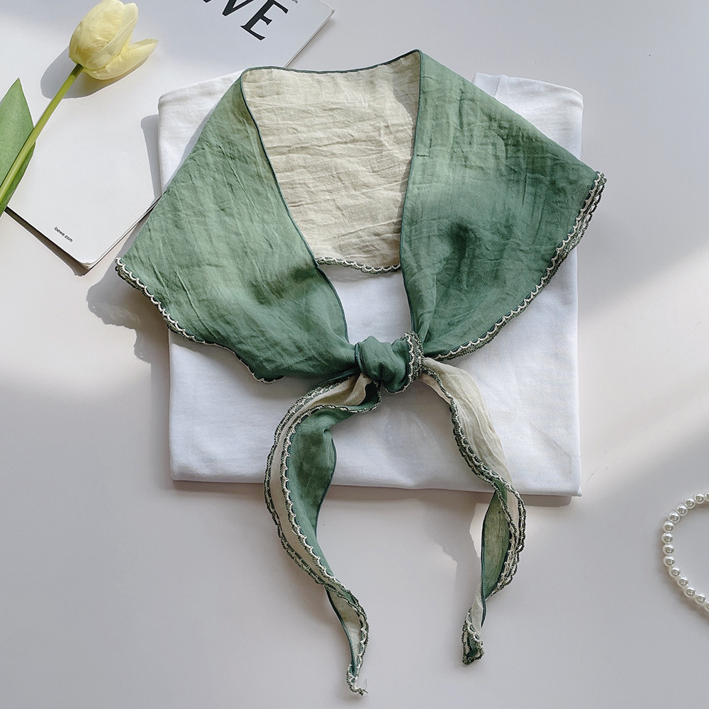 菱形拼色巾,加上曲牙边设计,文艺、优雅。