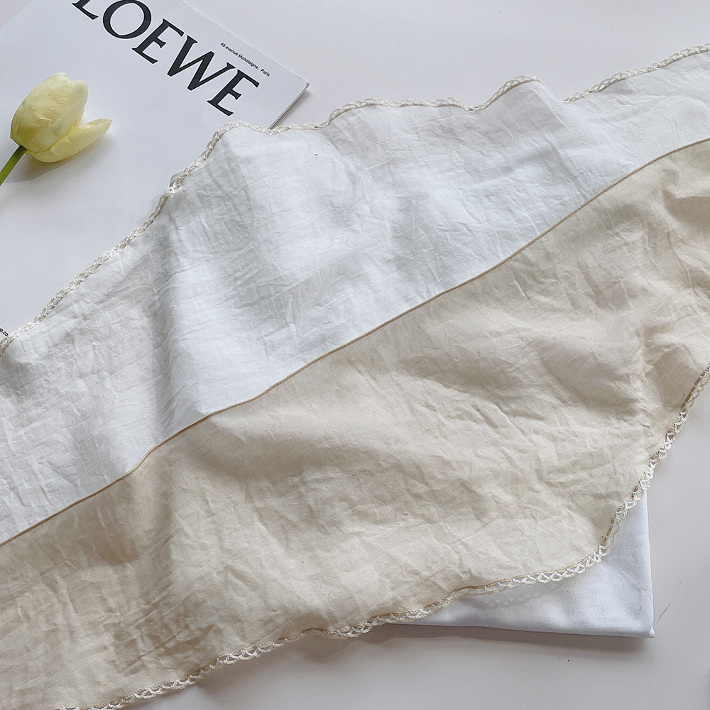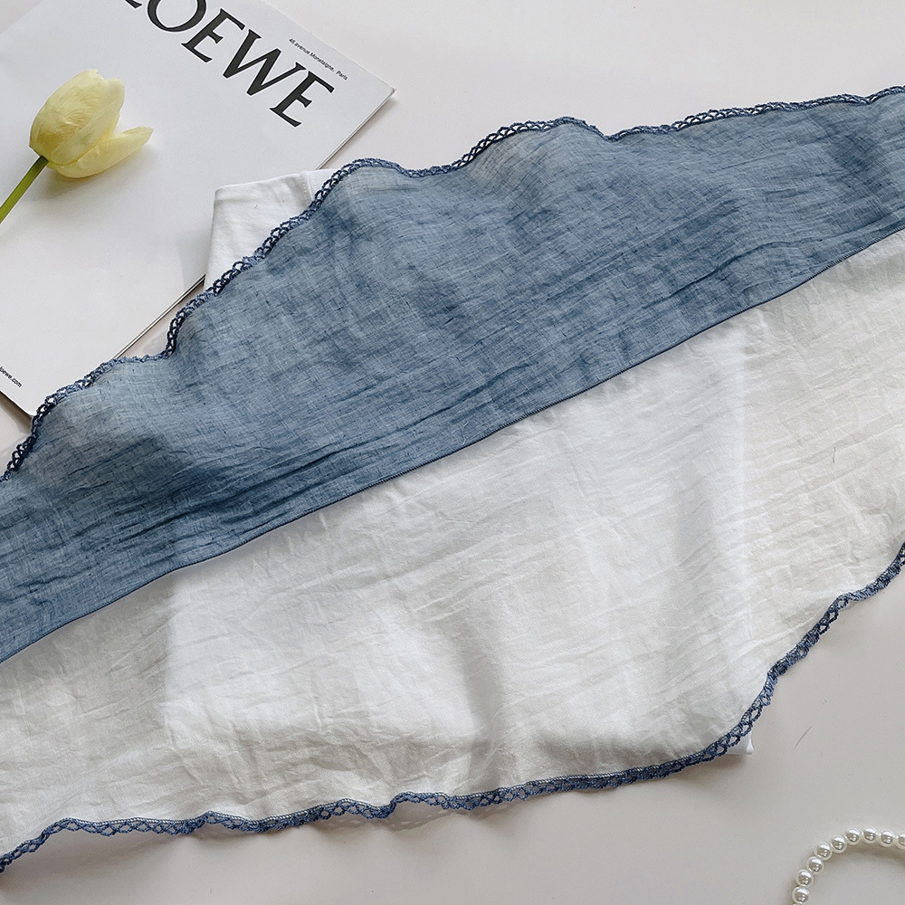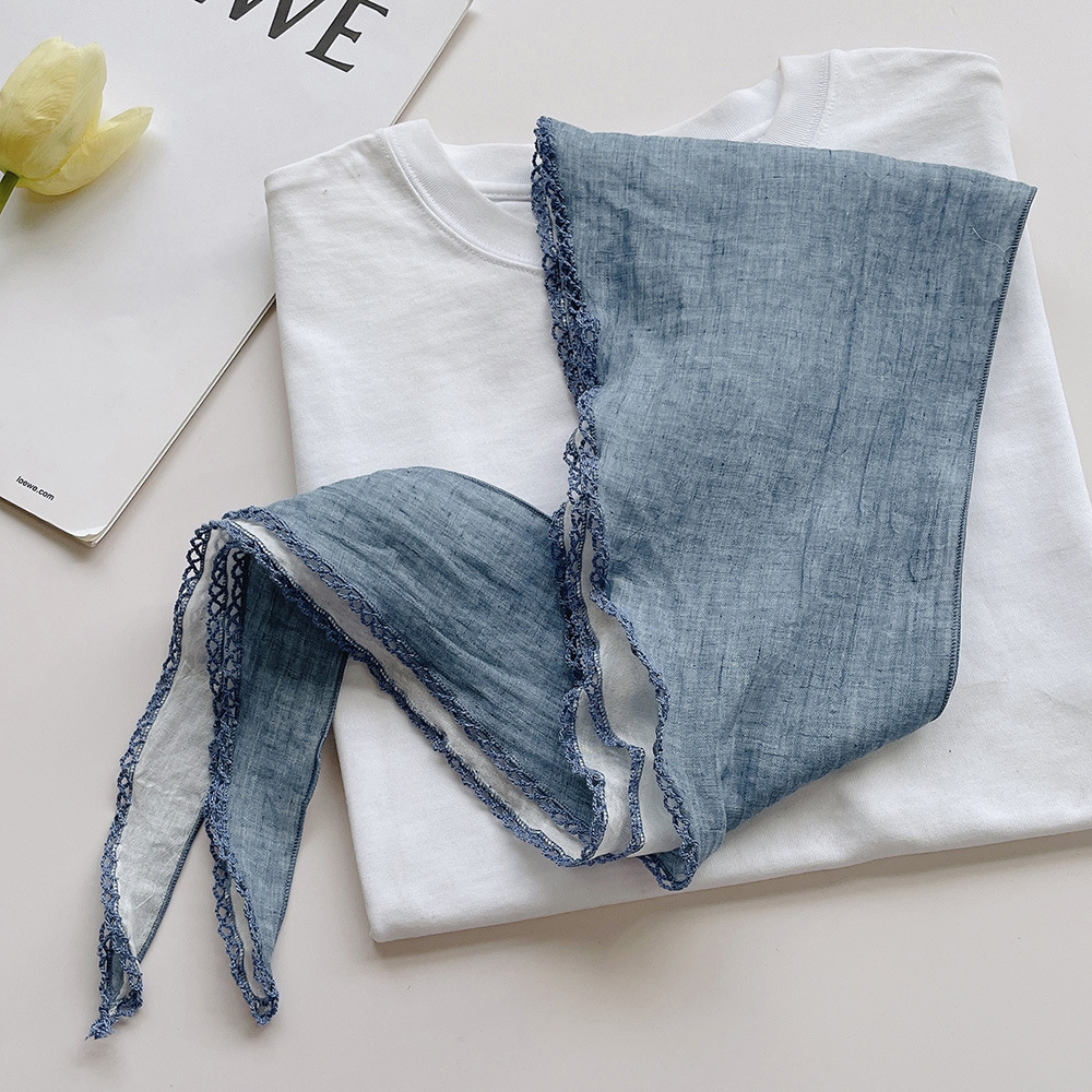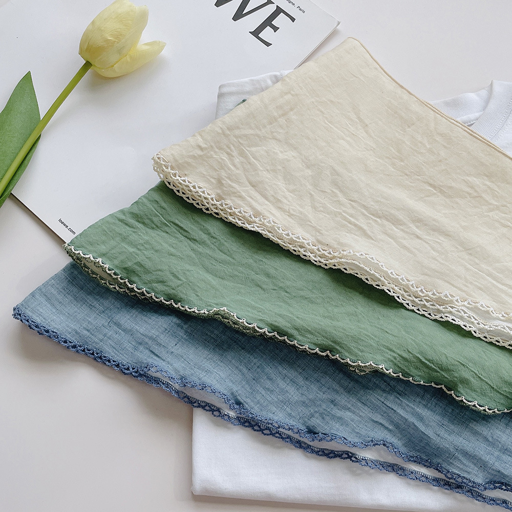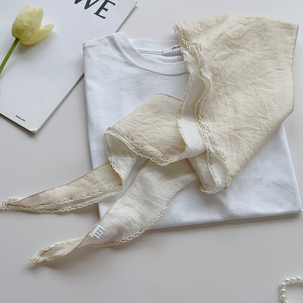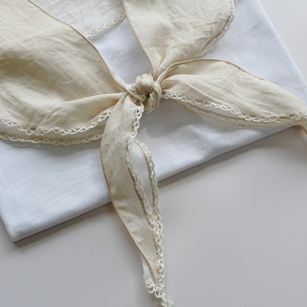 菱形拼色巾,加上曲牙边设计,文艺、优雅。