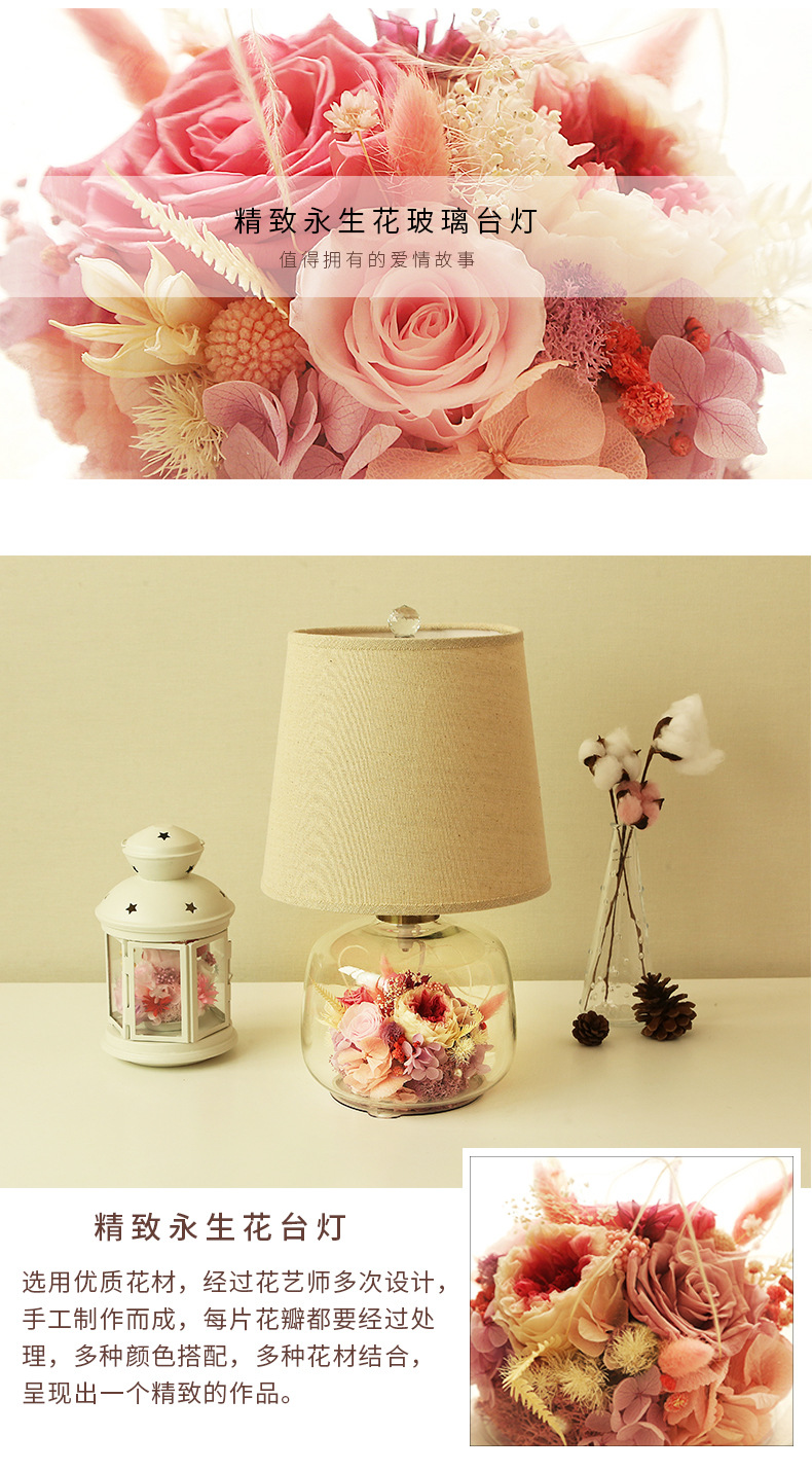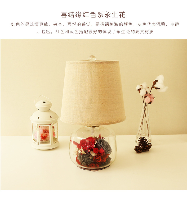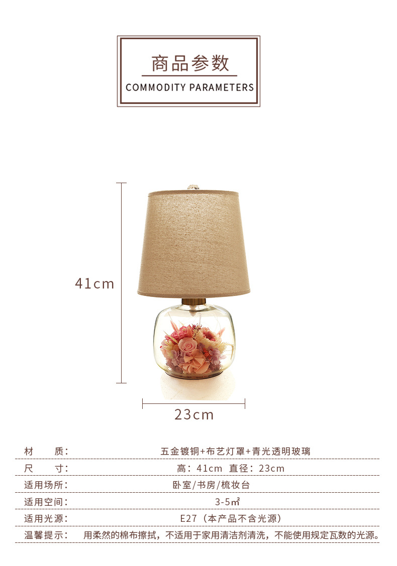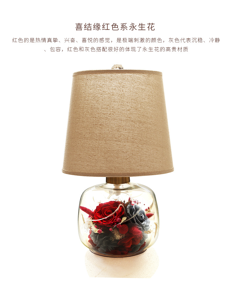 현대 간단한 성격 창조적 인 북유럽 테이블 램프 말린 꽃 유리 따뜻한 침실 침실 웨딩 장식 희미한 램프