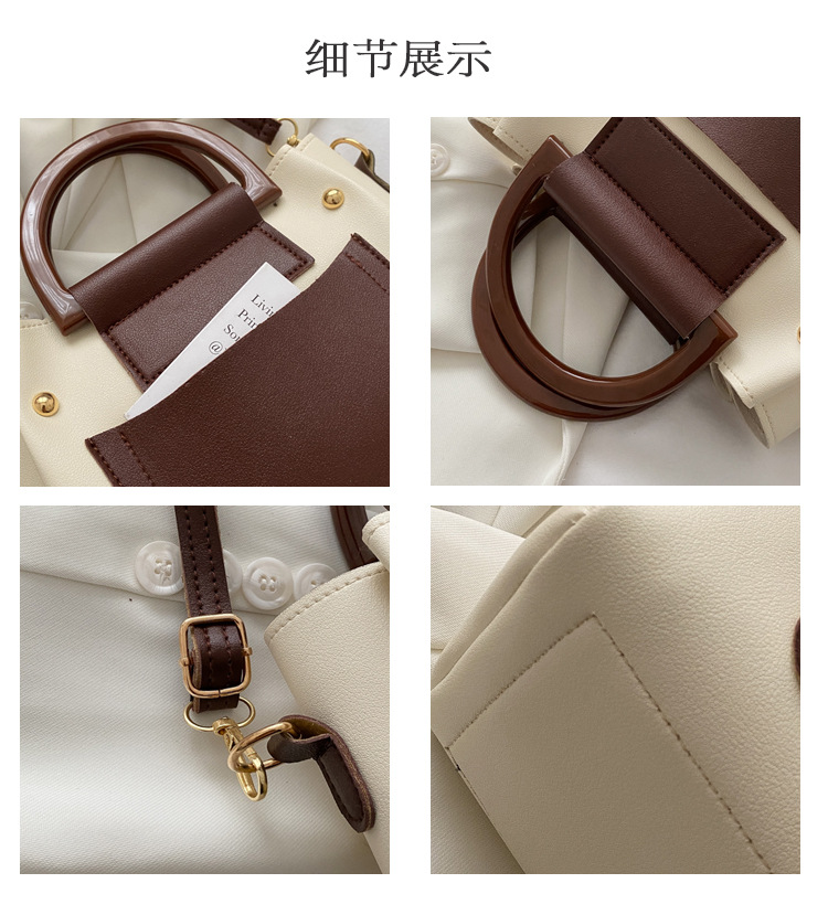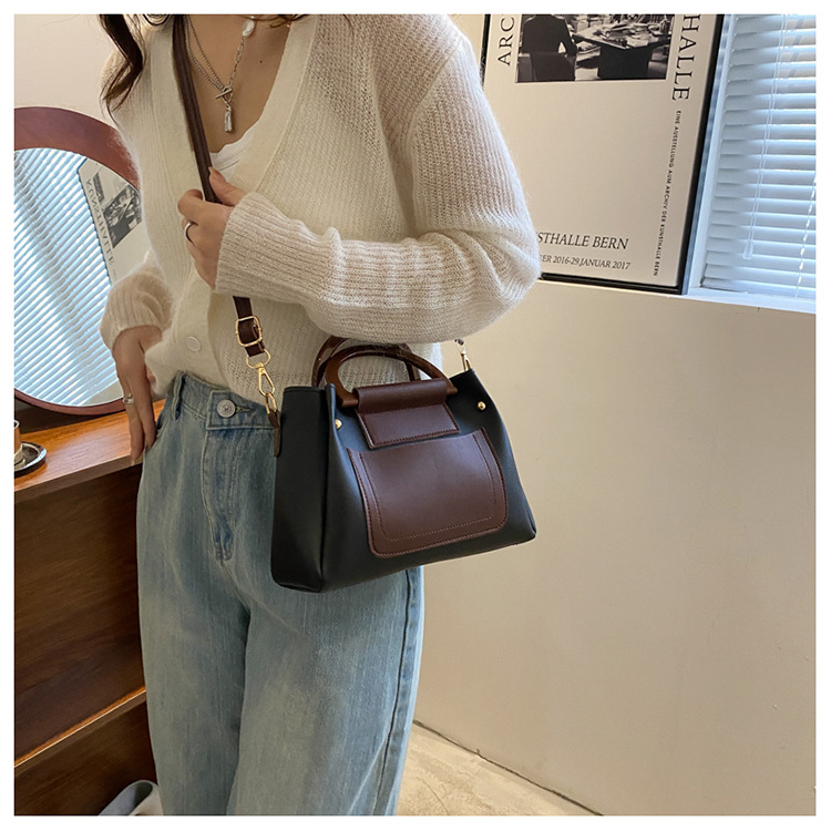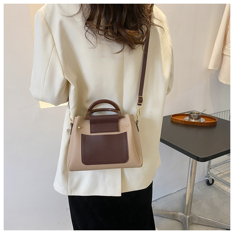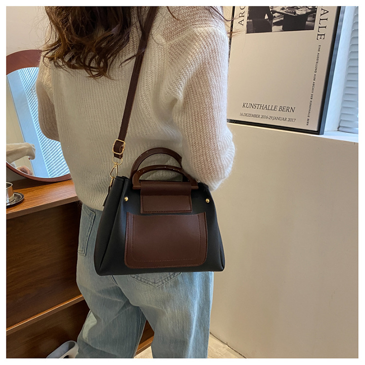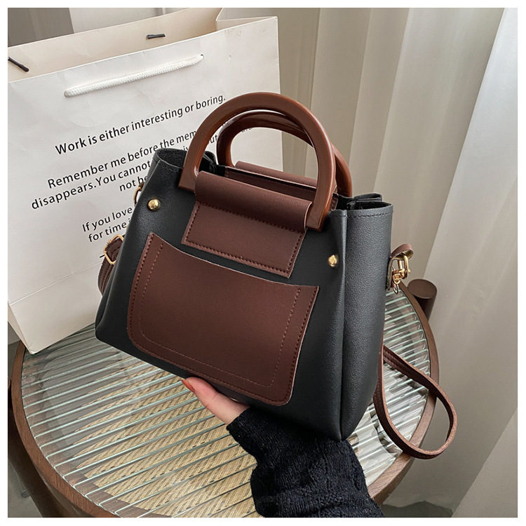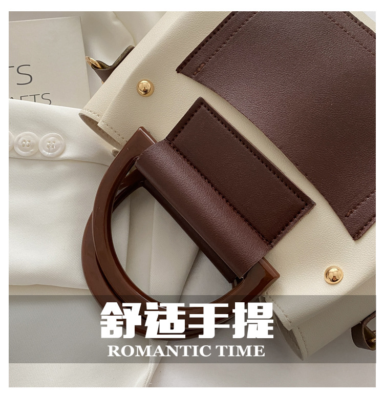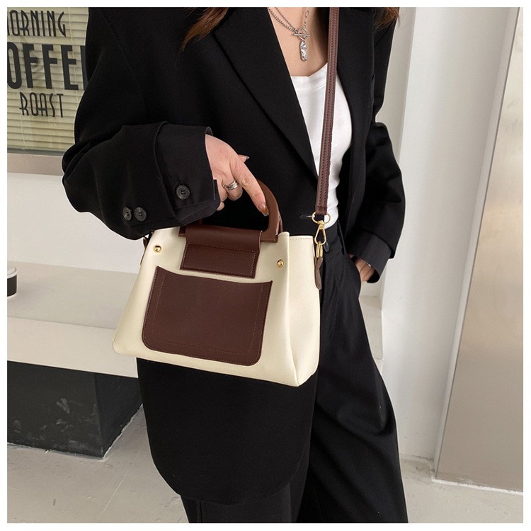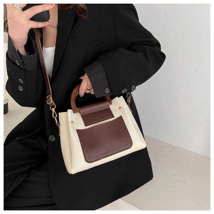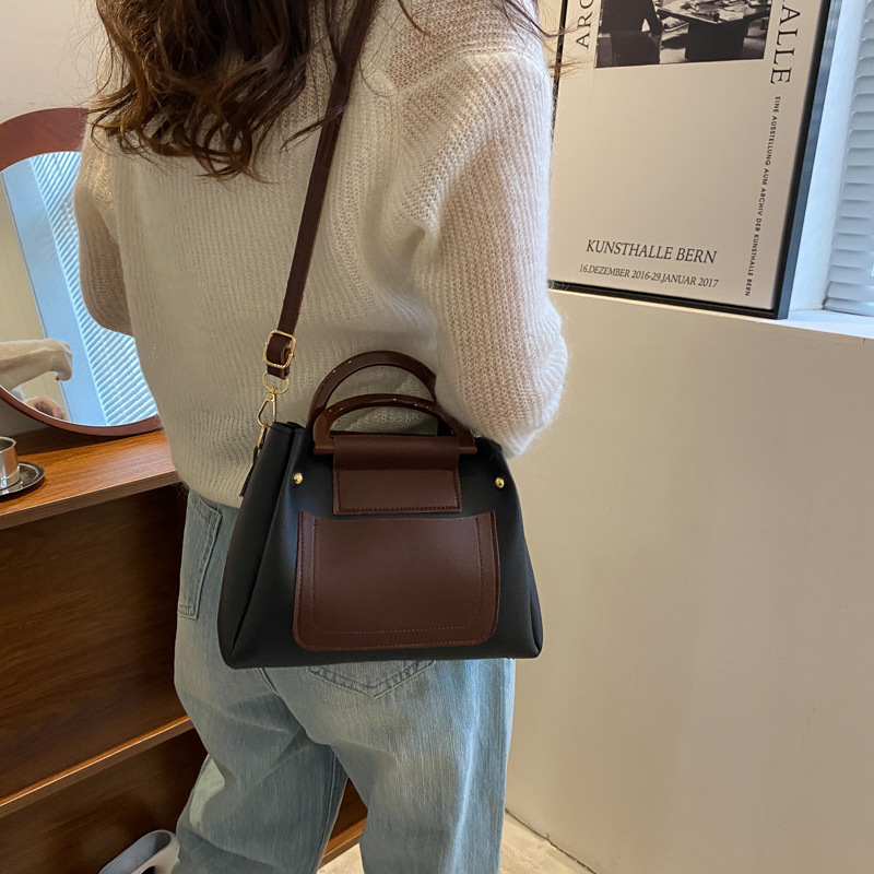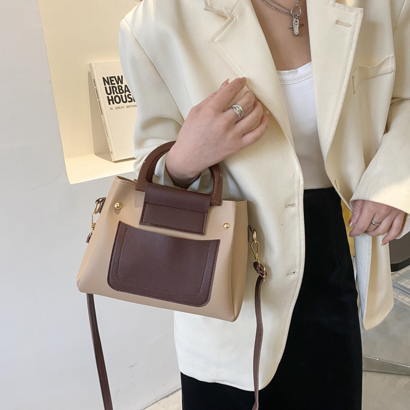 새로운 봄 한국 패션 접합 복고풍 질감 어깨 작은 사각형 가방 2024 캐주얼 서양식 휴대용 크로스 바디 백