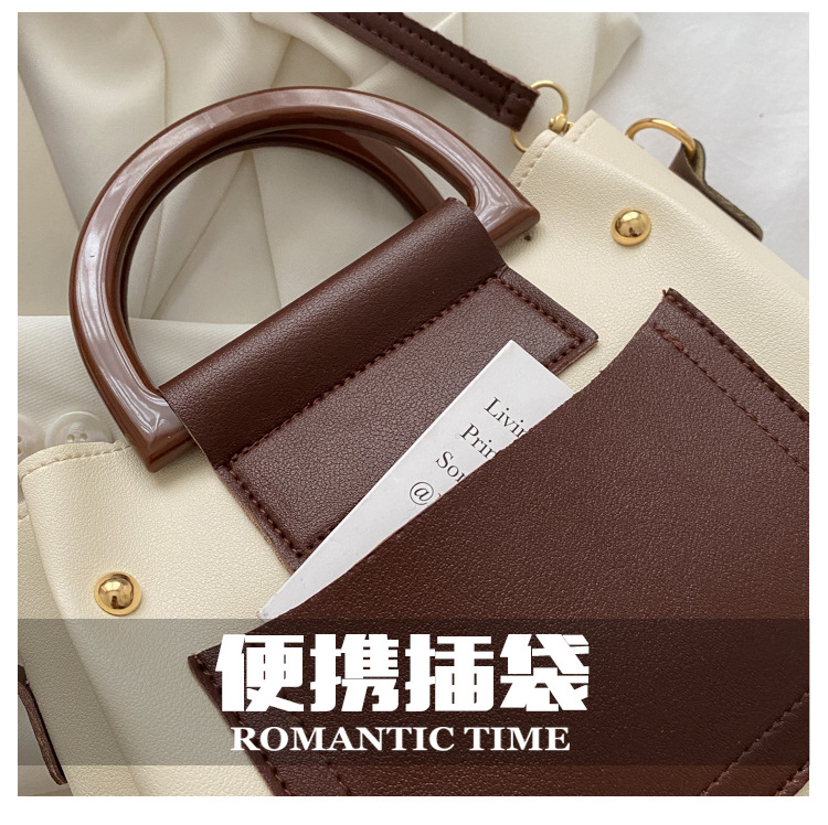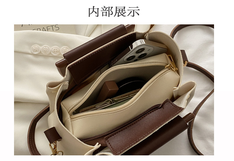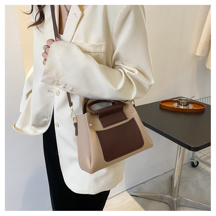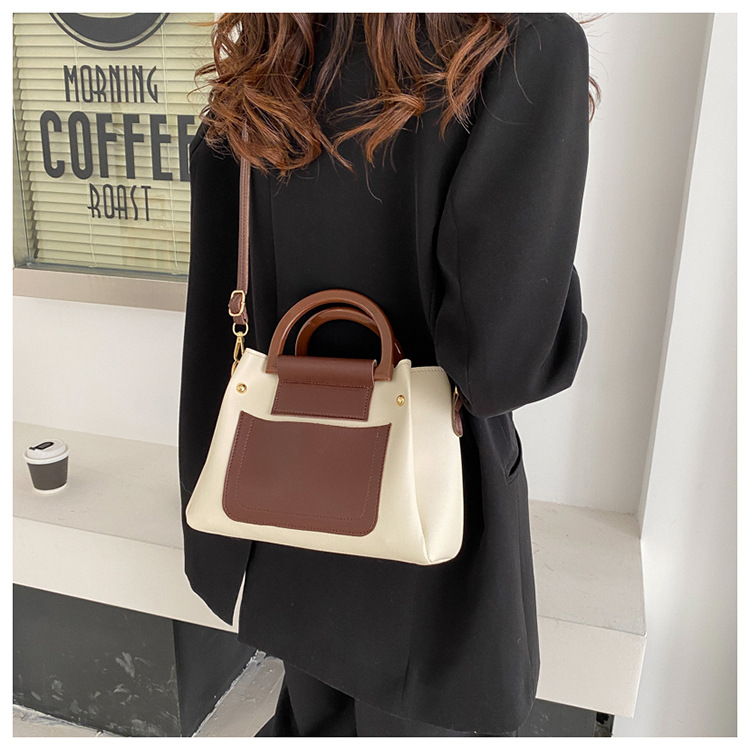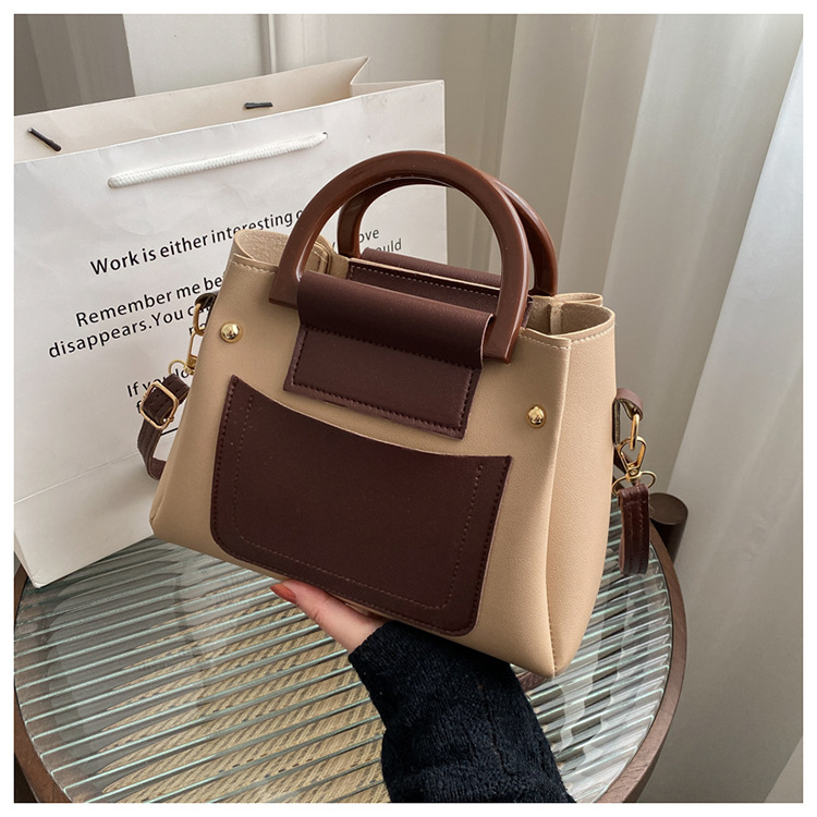 새로운 봄 한국 패션 접합 복고풍 질감 어깨 작은 사각형 가방 2024 캐주얼 서양식 휴대용 크로스 바디 백스토어 가기