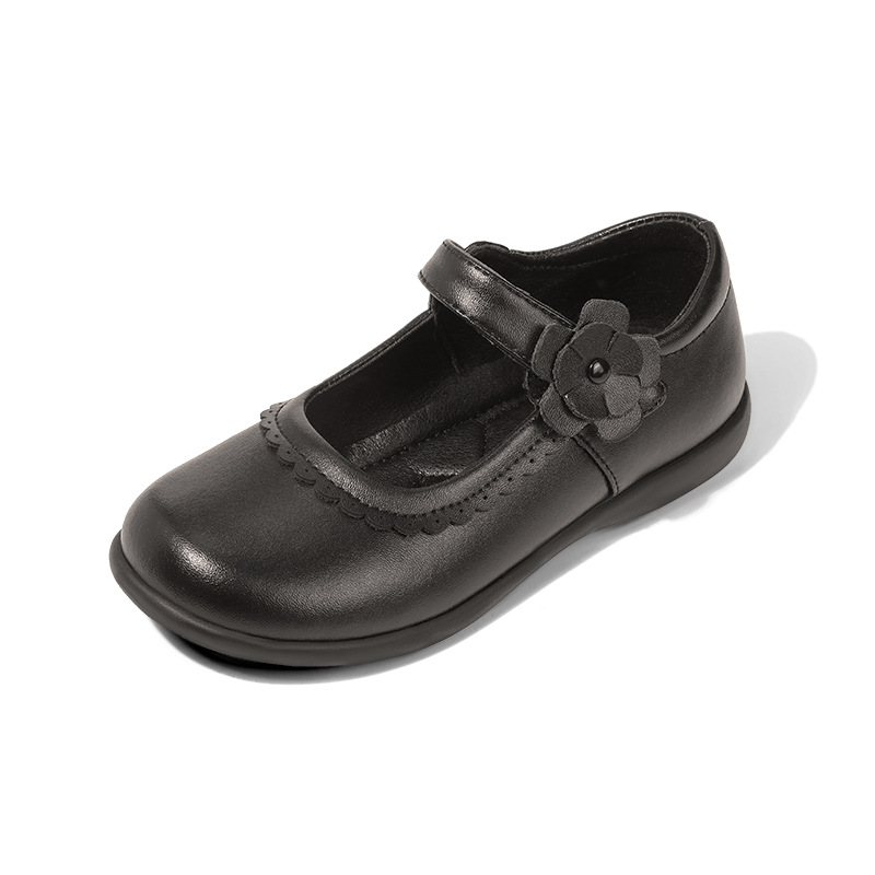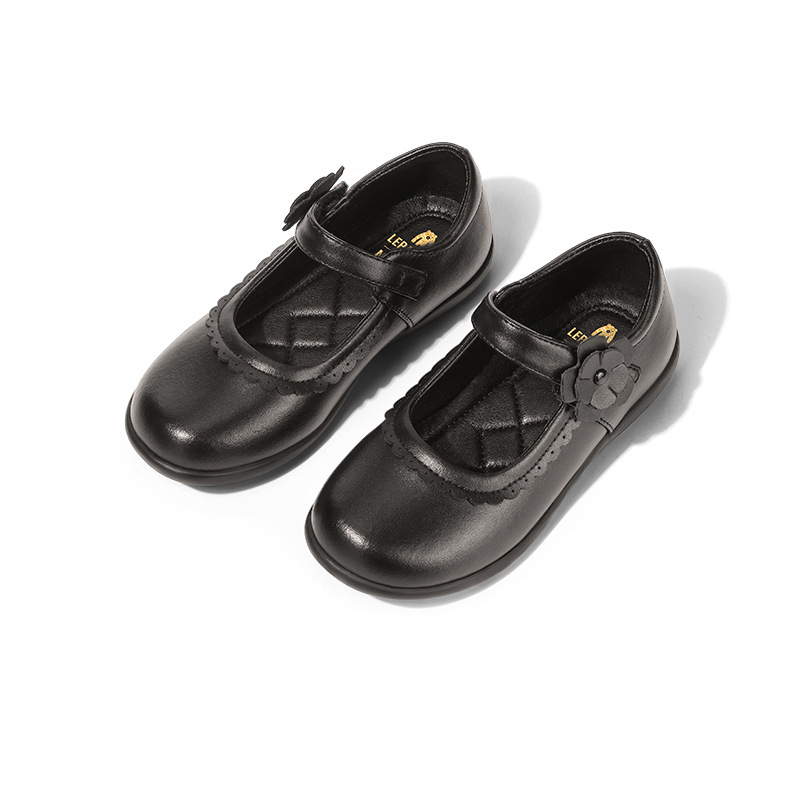 소녀 검은 작은 가죽 신발 어린이 공주 신발 중 큰 어린이 학생 무대 공연 신발 캐주얼 봄과 가을 콩 신발