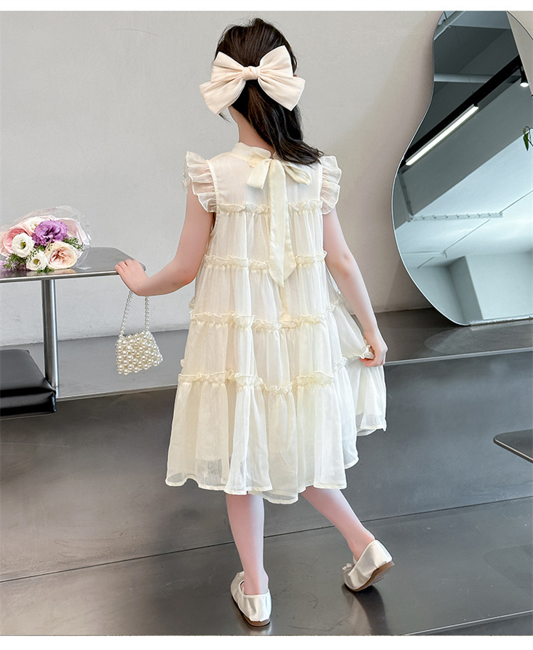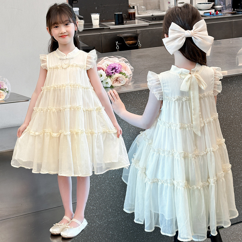 오렌지 타이거 소녀의 민소매 케이크 스커트 여름 2024 새로운 어린 소녀의 국가 스타일 버클 원피스 어린이 치마스토어 가기