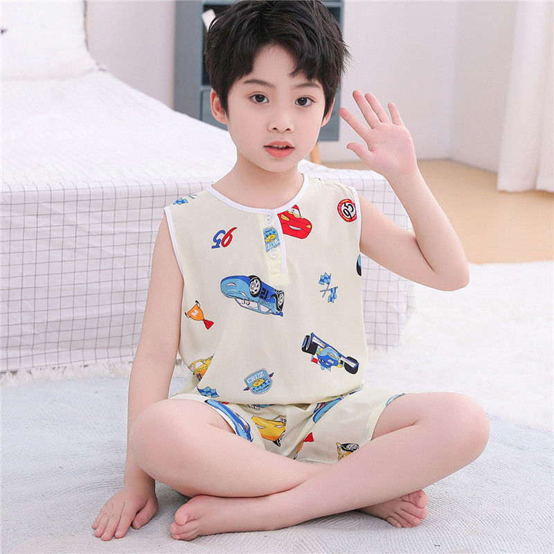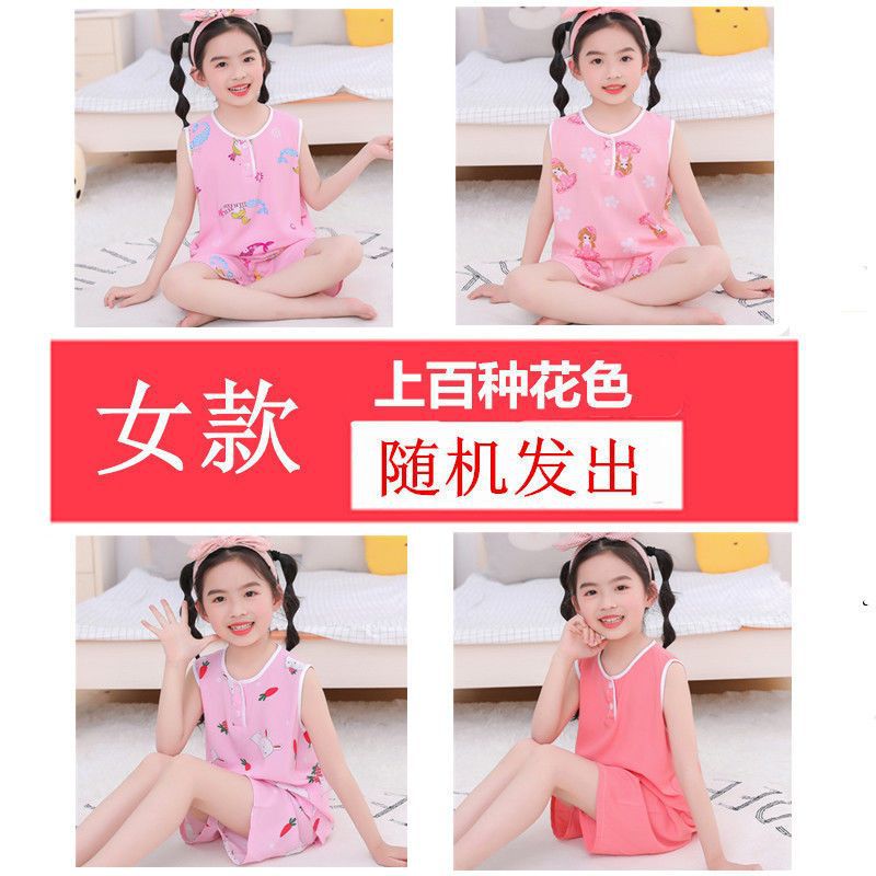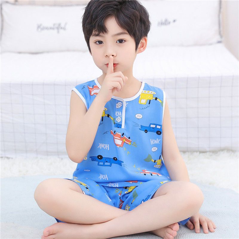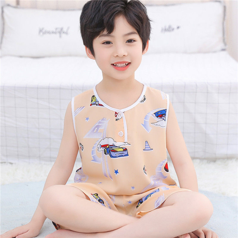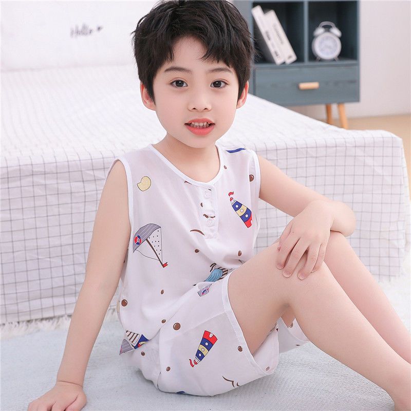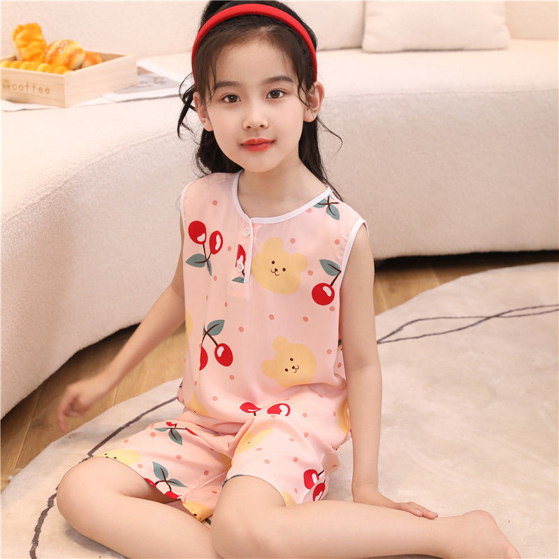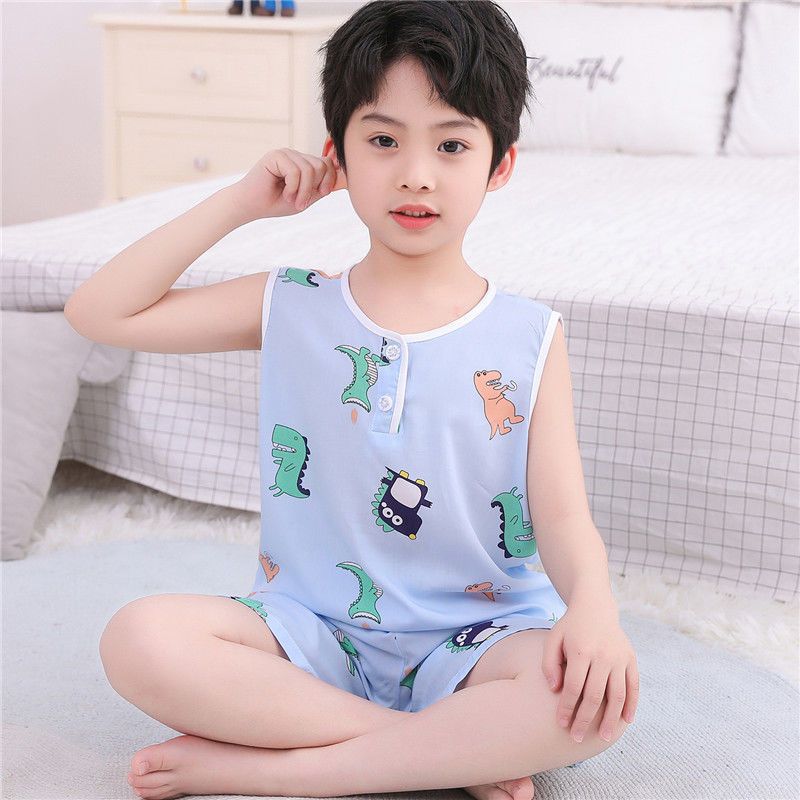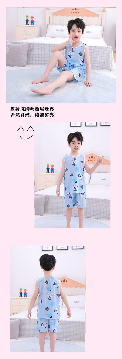 아동면 실크 조끼 반바지 세트 아기 잠옷 에어컨 옷 소녀와 소년면 실크 중형 및 대형 어린이 홈 얇은 옷