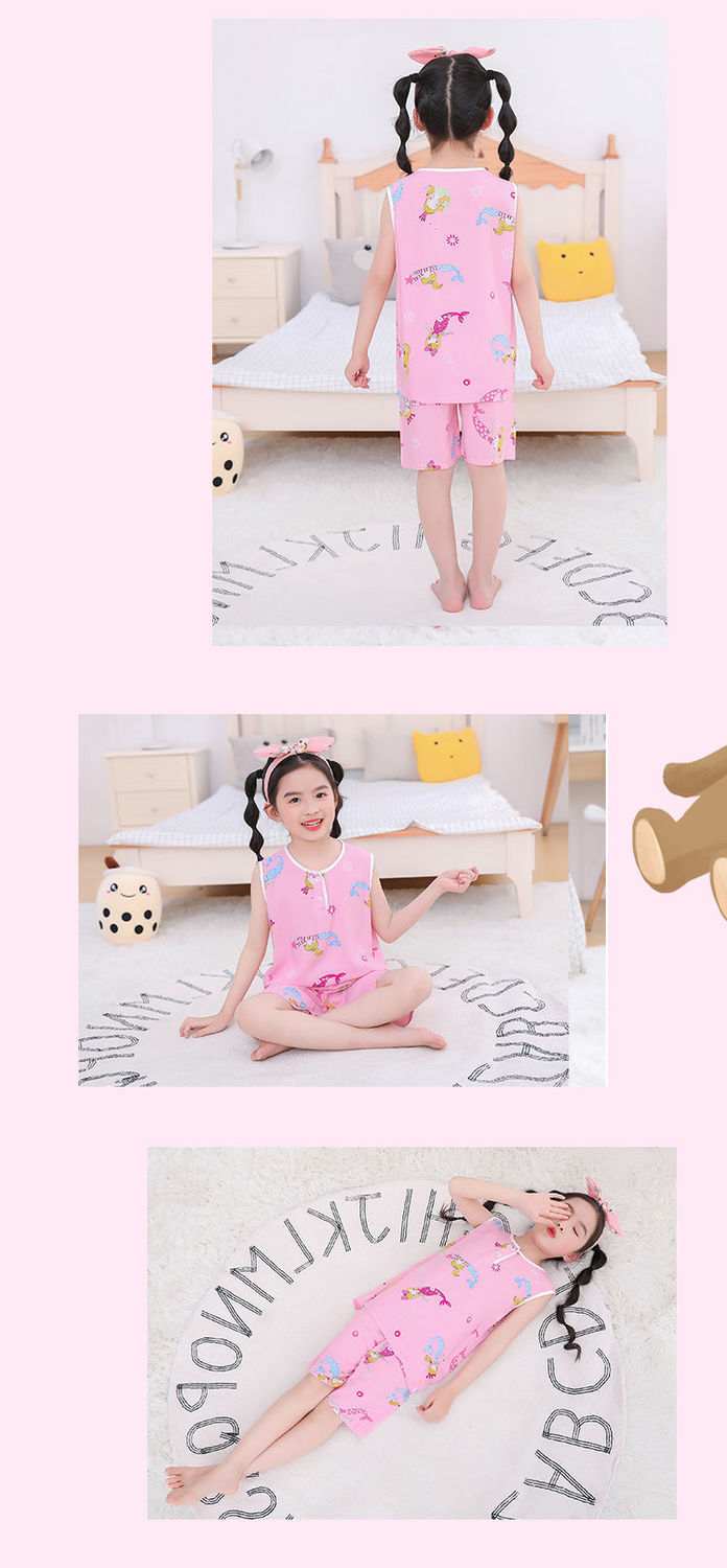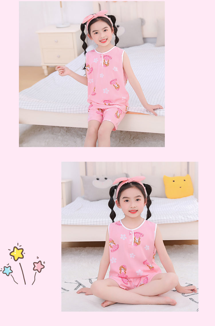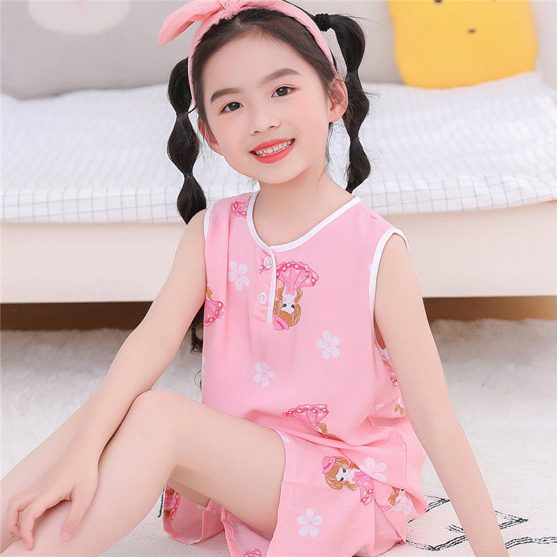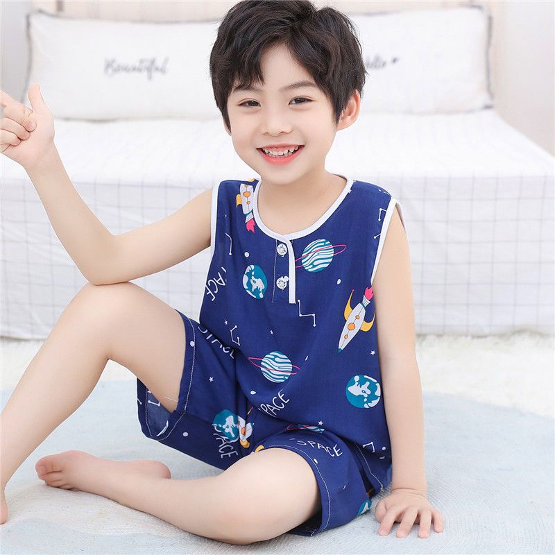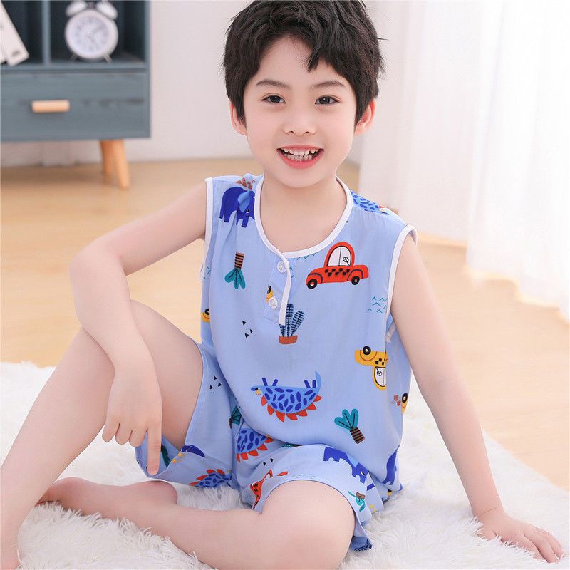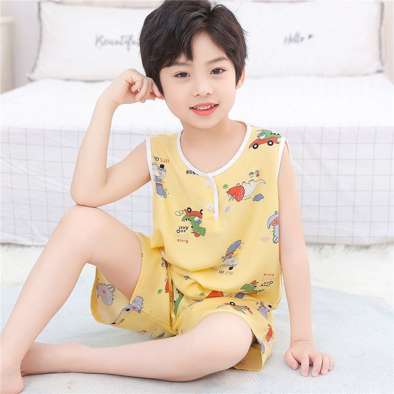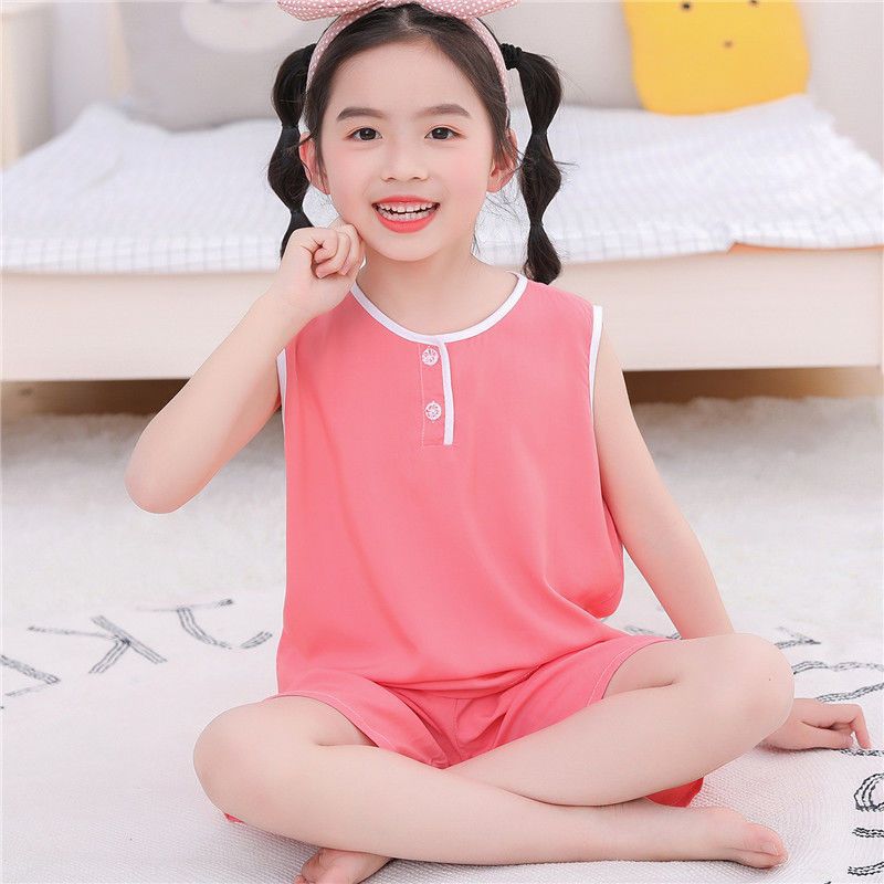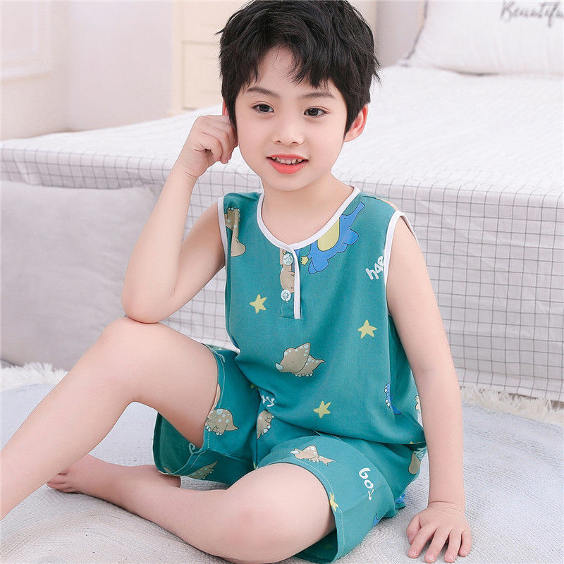 아동면 실크 조끼 반바지 세트 아기 잠옷 에어컨 옷 소녀와 소년면 실크 중형 및 대형 어린이 홈 얇은 옷