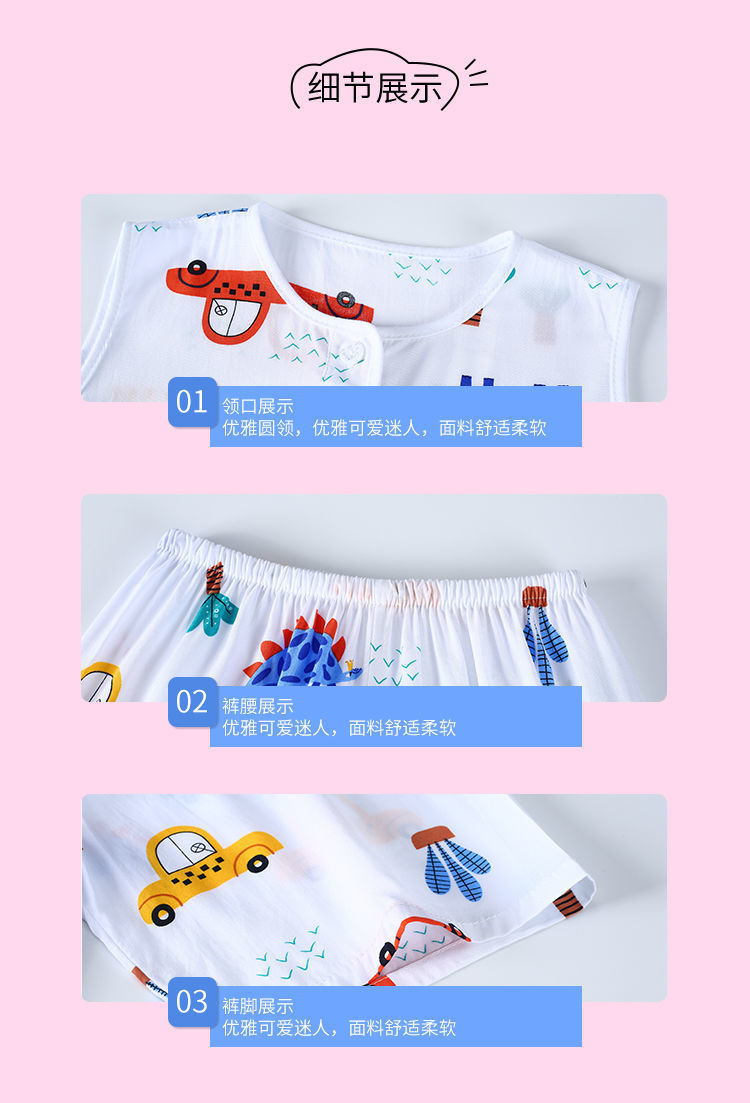 아동면 실크 조끼 반바지 세트 아기 잠옷 에어컨 옷 소녀와 소년면 실크 중형 및 대형 어린이 홈 얇은 옷스토어 가기