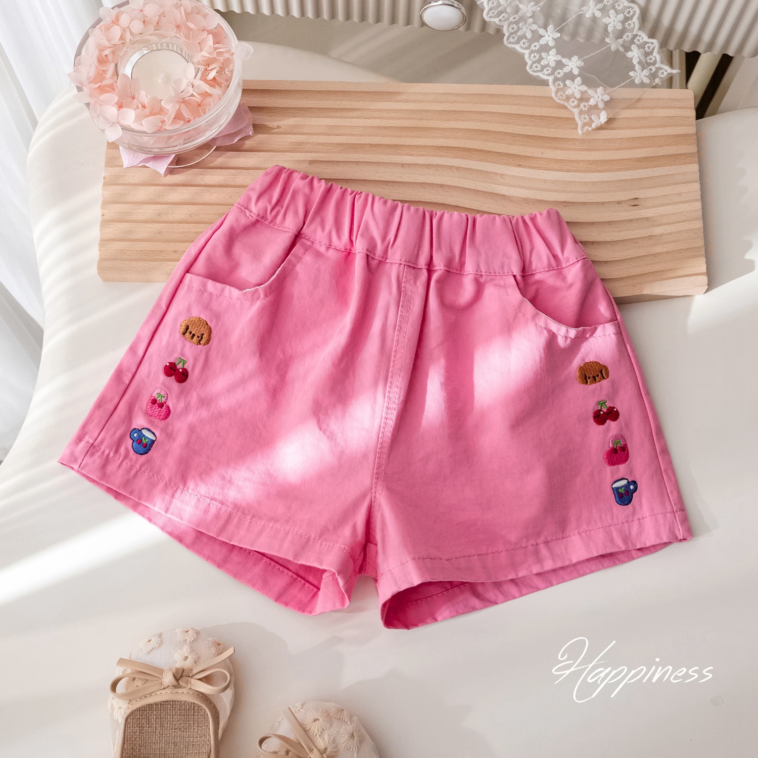 여자 여름 캐주얼 바지 한국 스타일 외국 스타일 만화 자수 반바지 아기 소녀 달콤한 귀여운 뜨거운 바지 여름 바지스토어 가기