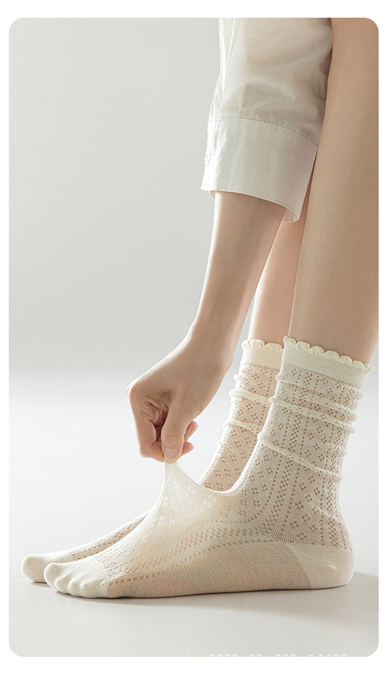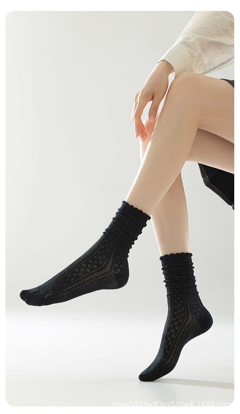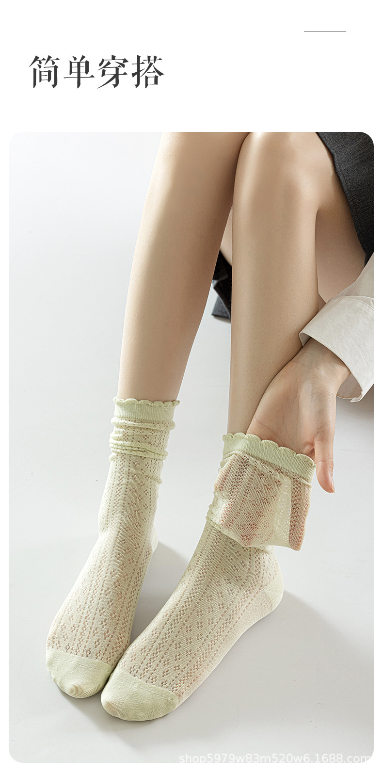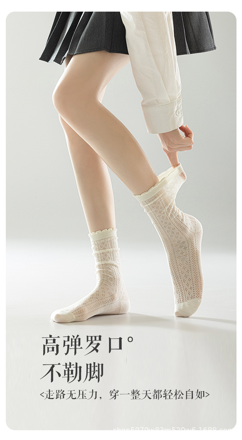 봄과 여름 초박형 메쉬 통기성 튜브 양말 숙녀 느슨한 입 감금 양말 여름 뼈없는 흰색 레이스 더미 양말스토어 가기