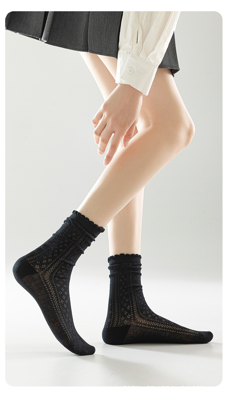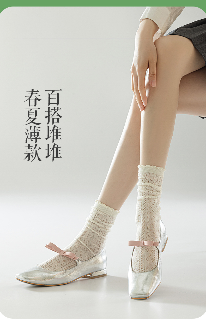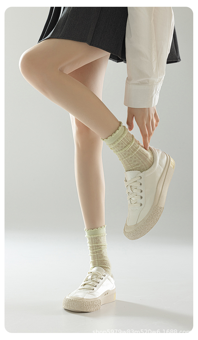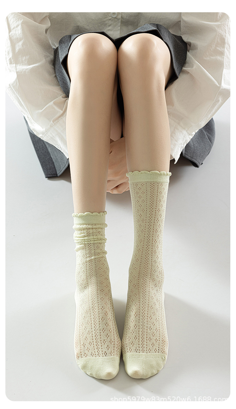 봄과 여름 초박형 메쉬 통기성 튜브 양말 숙녀 느슨한 입 감금 양말 여름 뼈없는 흰색 레이스 더미 양말스토어 가기