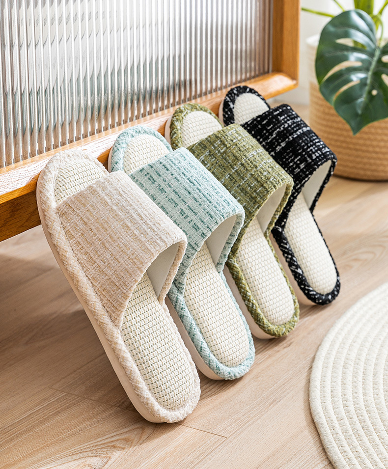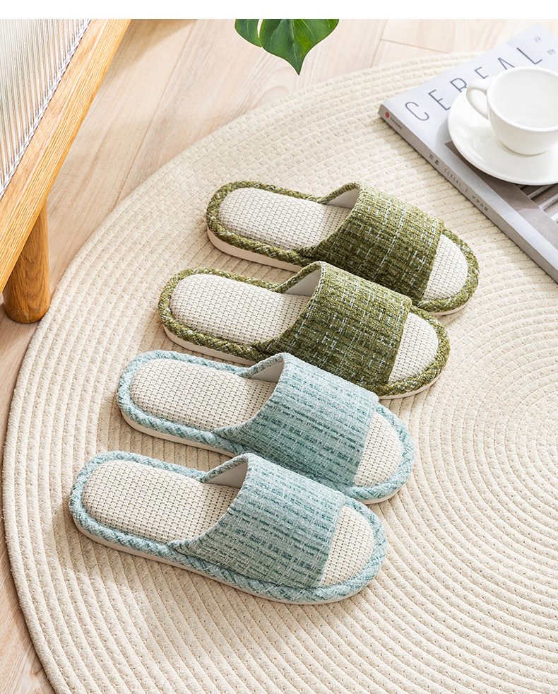 실내 미끄럼 방지 사일런트 리넨 슬리퍼 경량 땀 흡수성 홈 사계절 면화 및 리넨 커플 슬리퍼 봄, 여름, 가을, 겨울