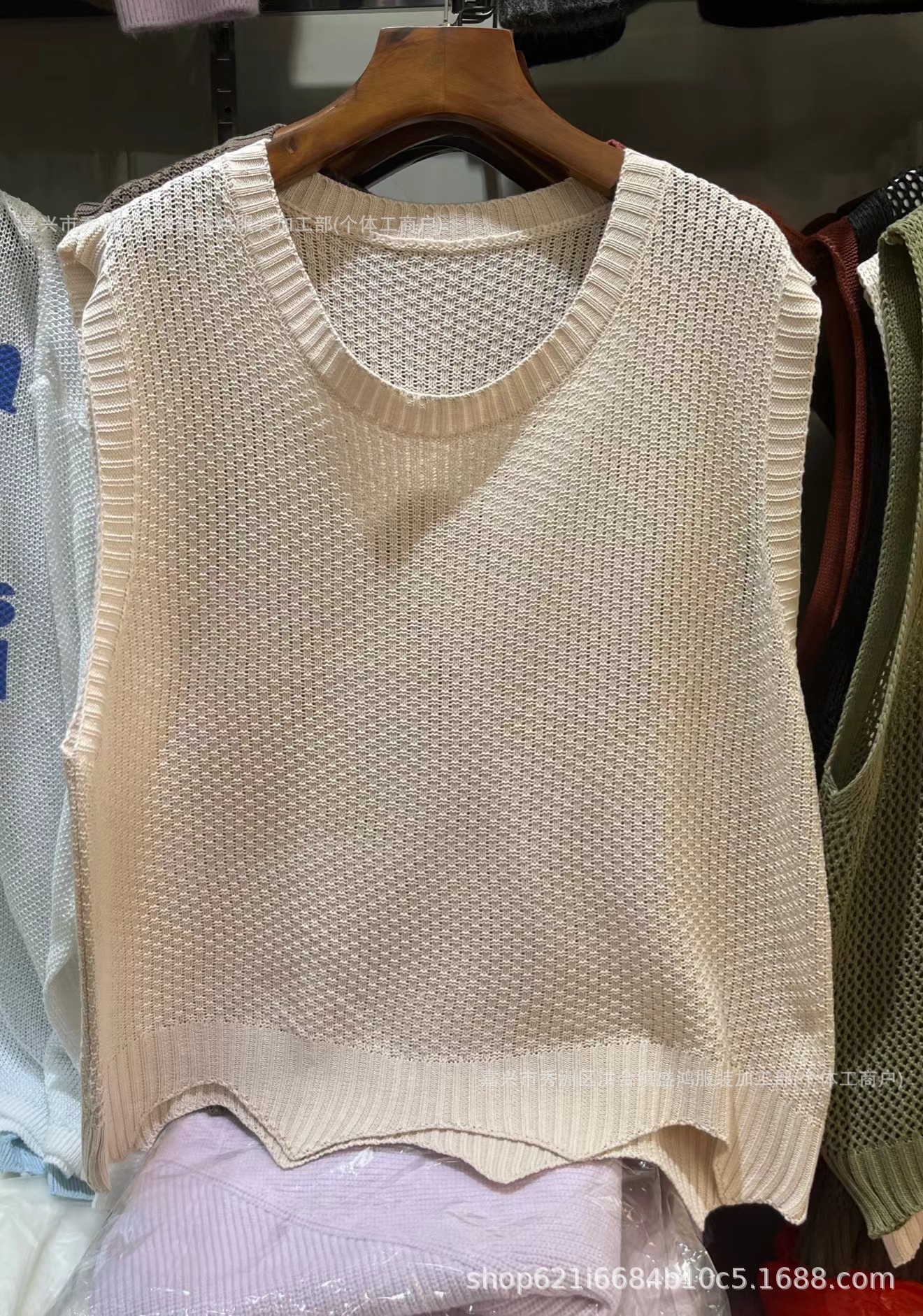 국경 간 폭발 여성 불규칙한 조끼 조끼 여성 겹침 솔리드 컬러 라운드 넥 레트로 조끼 얇은 루즈 조끼스토어 가기