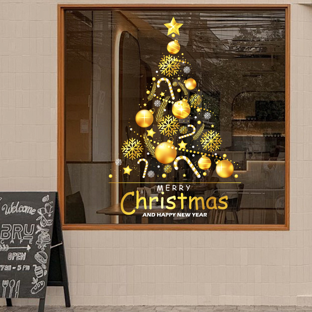 Yiyao DD4601 크리스마스 황금 눈송이 유리 스티커 상점 창 크리스마스 분위기 장식 정전기 스티커스토어 가기