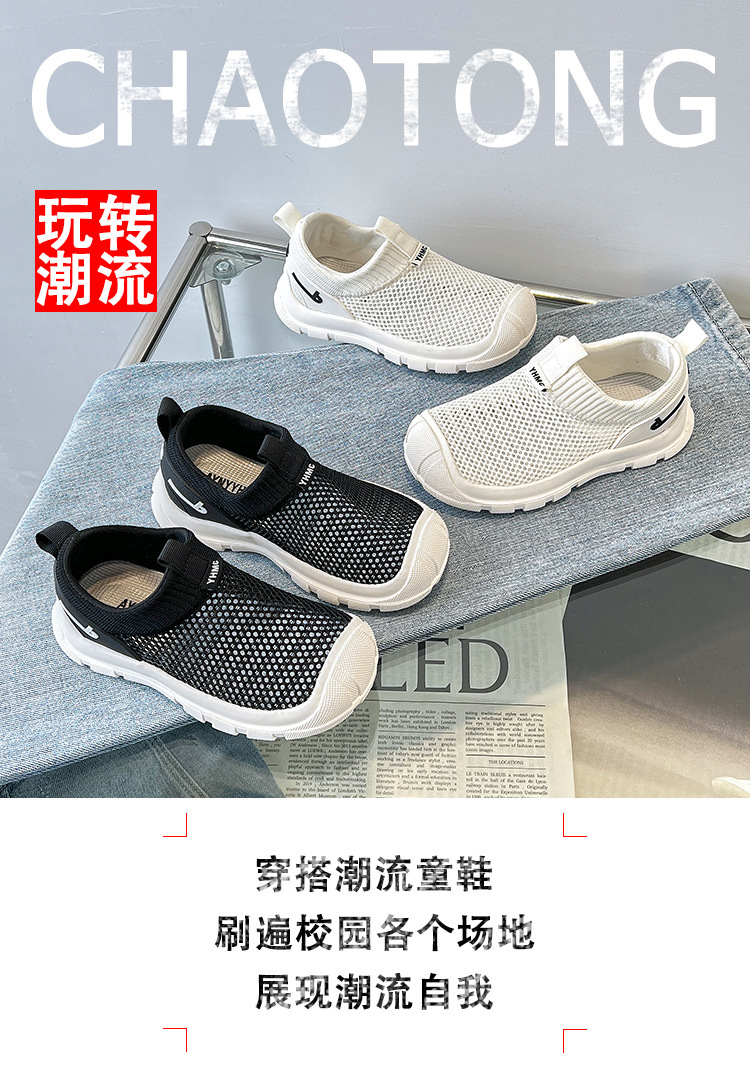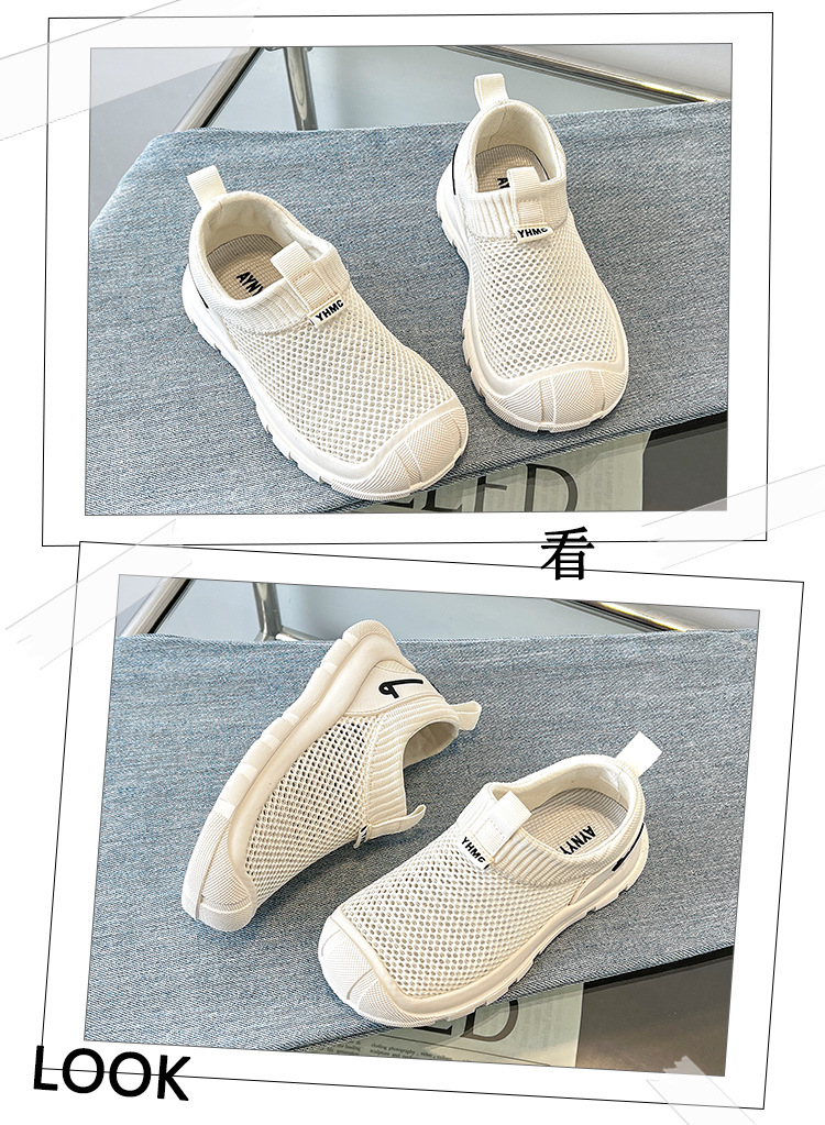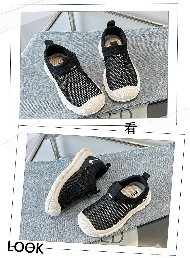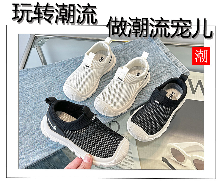 어린이 슬립 온 경량 스포츠 메쉬 신발 소년 2024 새로운 여름 싱글 메쉬 할로우 통기성 세미 쿨 여성 신발