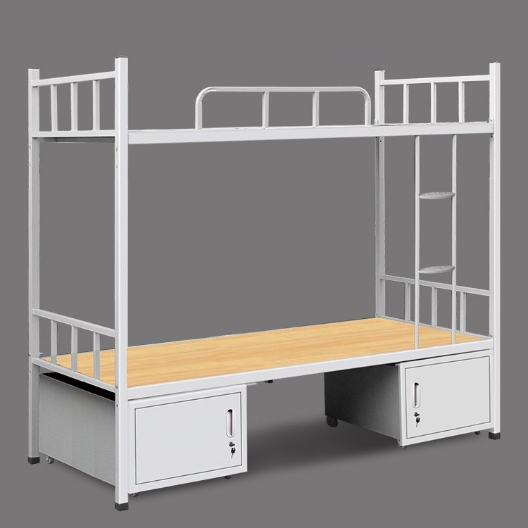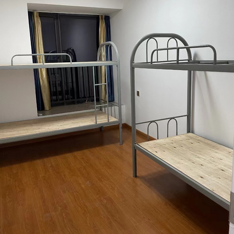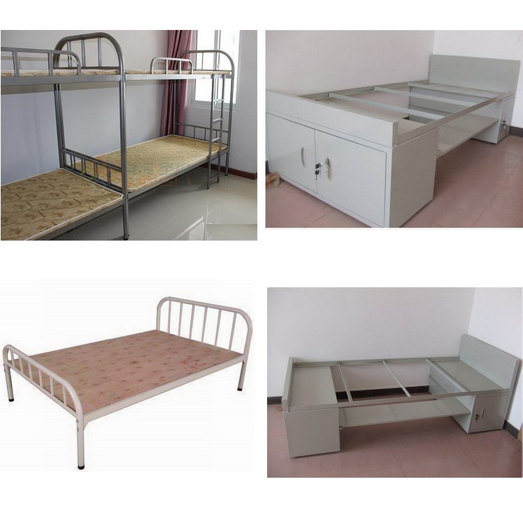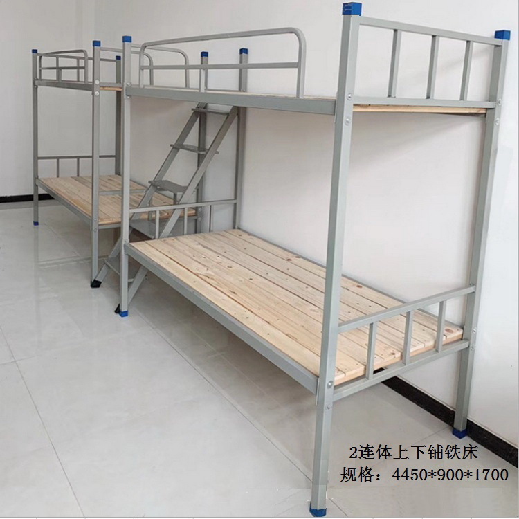 二、员工及学生上下铺铁床采用1. 立柱材料40*40*1.2mm厚方管, 2.横梁:采用50*25*1.2厚冷轧钢板, 3.护栏:采用直径19*1.0mm厚优质管材弯制而成,高度达到220mm以上,4、床板:1.5厚天然杉木板。