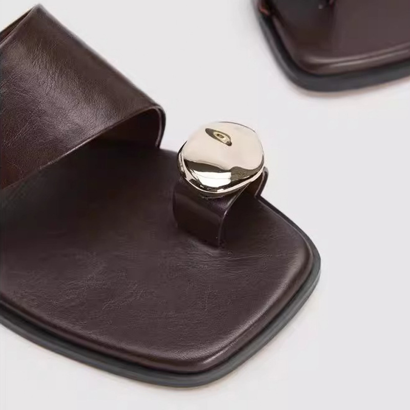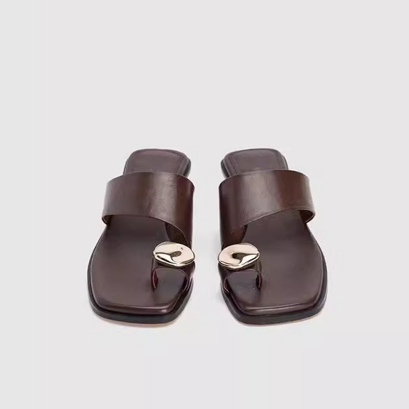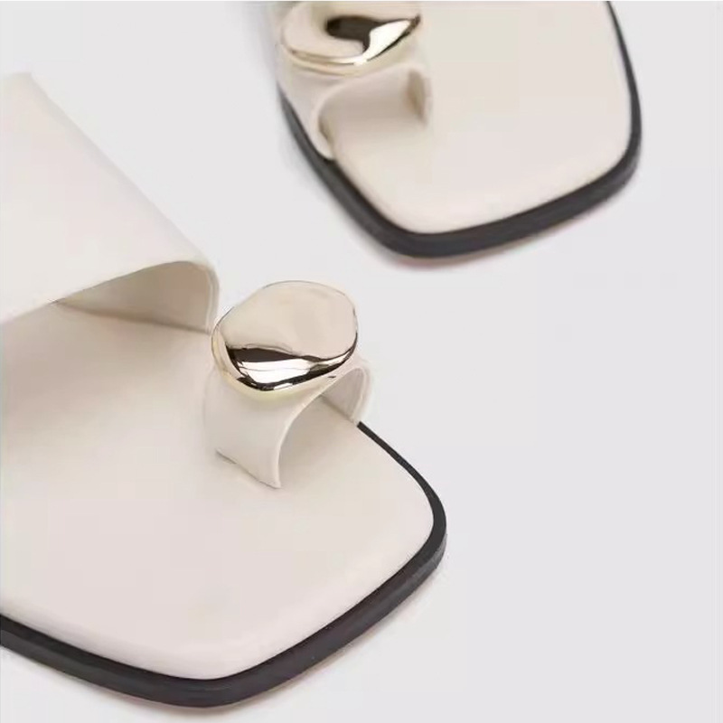 요정 스타일 메탈 버클 슬리퍼 여성 여름용 2025년 신상 프렌치 스타일 여성 로우힐 캐주얼 비치 슈즈스토어 가기