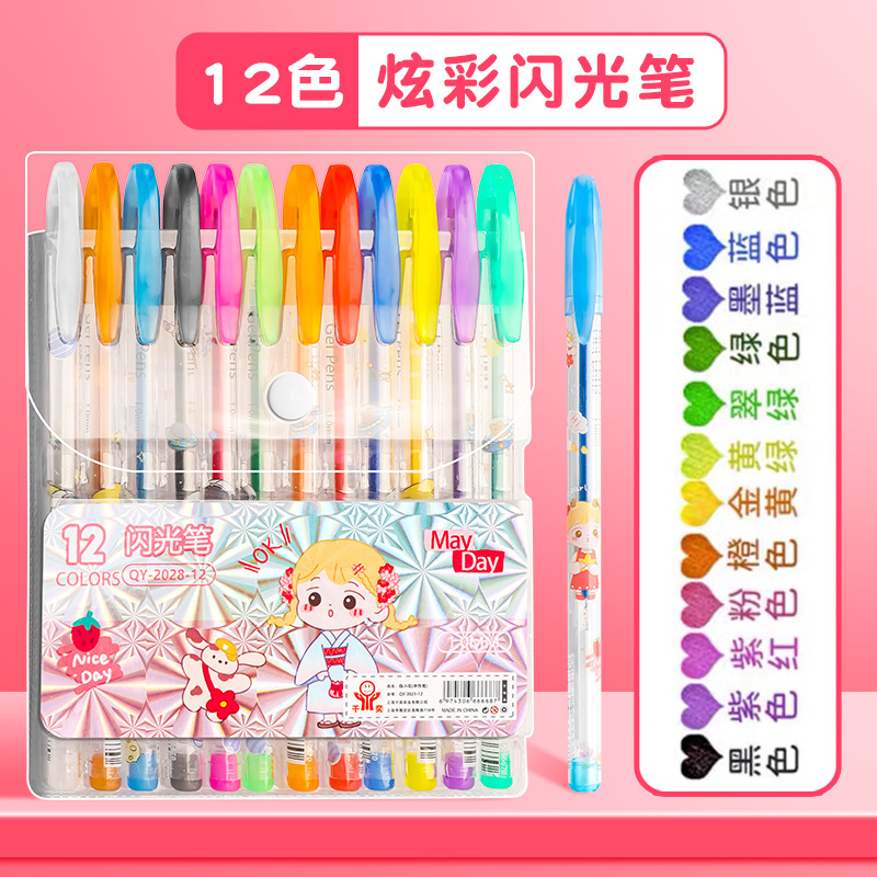 초등학생 손으로 쓴 신문 특수 윤곽 펜 컬러 플래시 분필 펜 반짝이는 금속 펜 멀티 컬러 퀵 샌드 형광