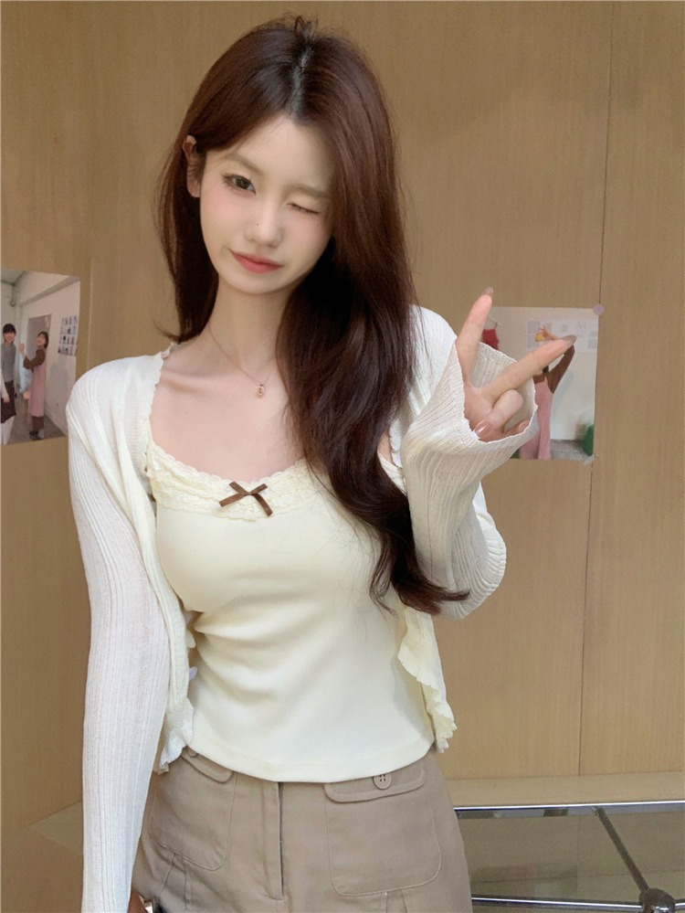 핫 스파이스 걸 레이스 보우 슬링 가슴 패드와 아름다운 백 조끼 원활한 랩 가슴베이스 쇼트 탑