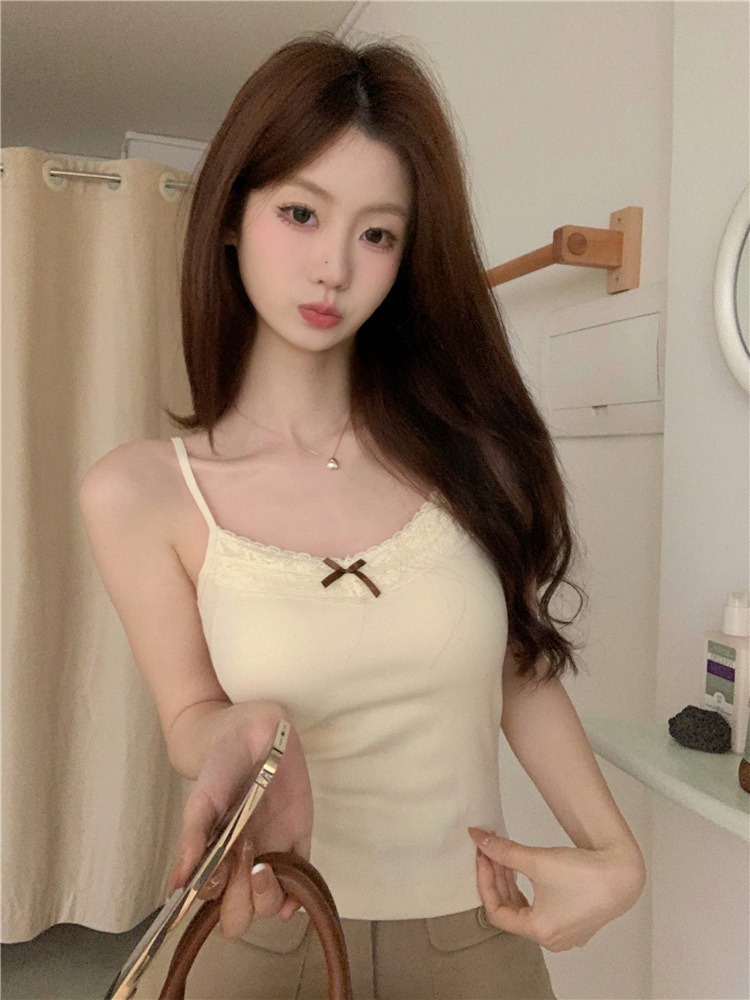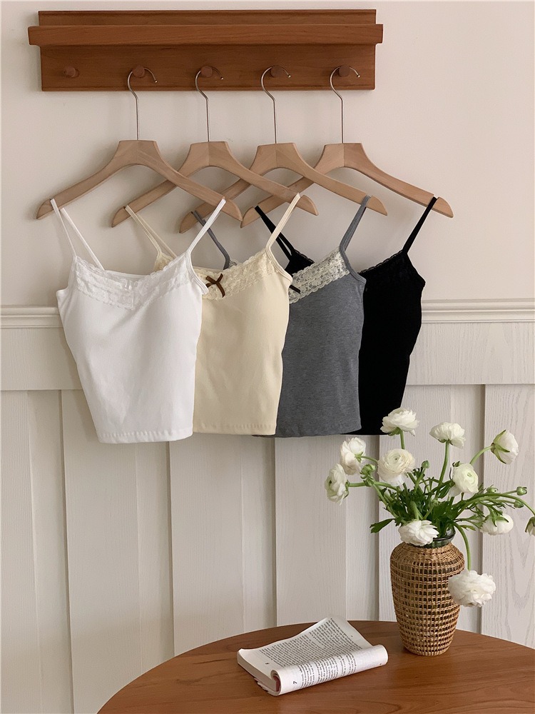 핫 스파이스 걸 레이스 보우 슬링 가슴 패드와 아름다운 백 조끼 원활한 랩 가슴베이스 쇼트 탑스토어 가기