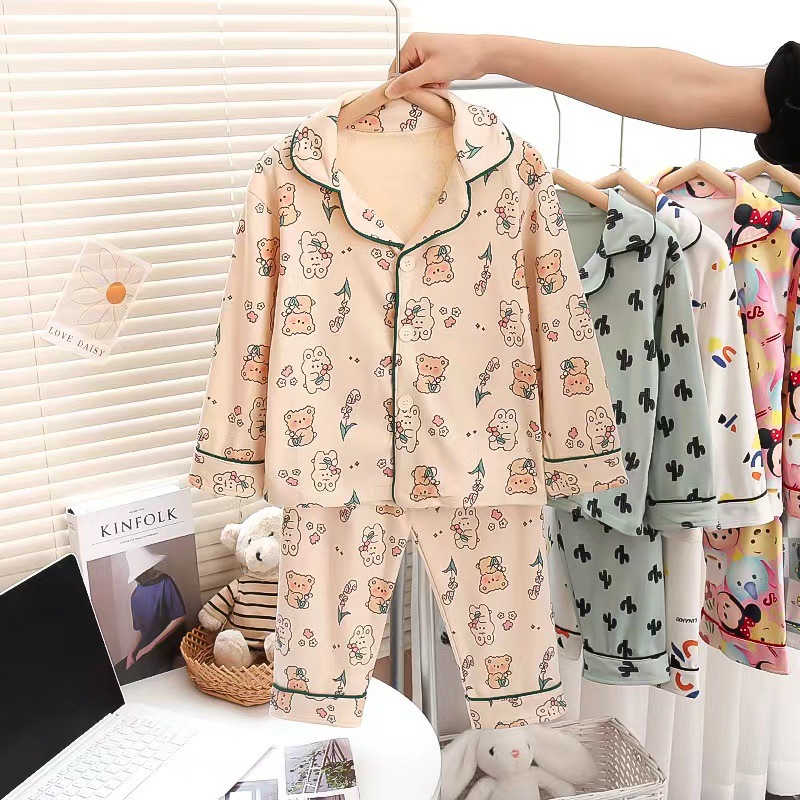 소녀 가을과 겨울 긴 소매 파자마 큰 어린이 만화 카디건 캐주얼 느슨한 아기 기모 소년 소녀 가을과 겨울