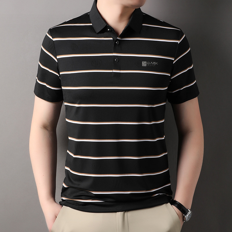 2024 년 여름 반팔 추적없는 티셔츠 원사 염색 추적없는 트렌디 얇은 여름 남성 티셔츠 스트레이트 캐주얼