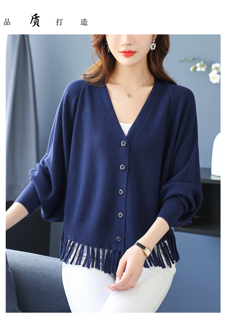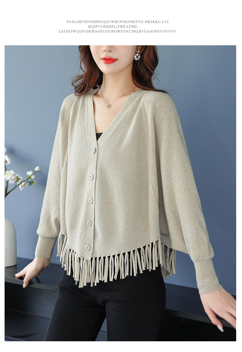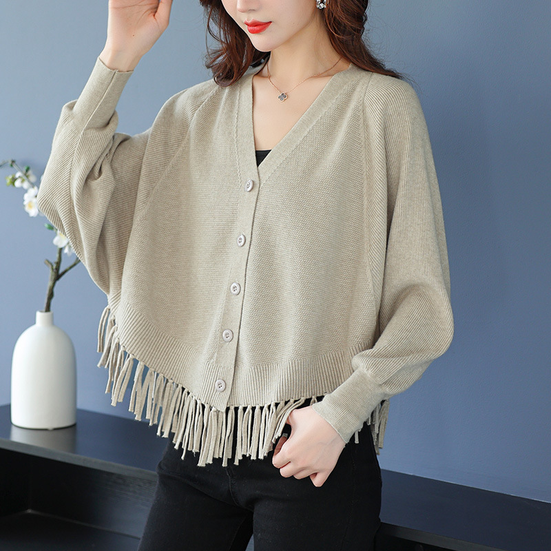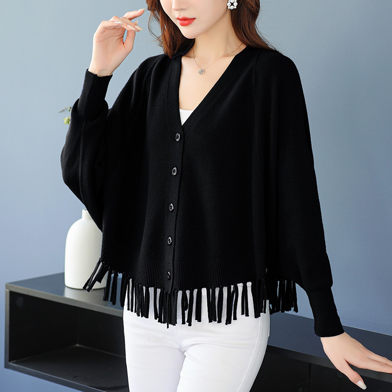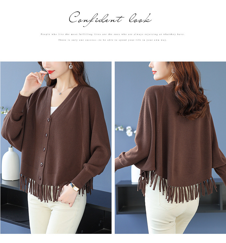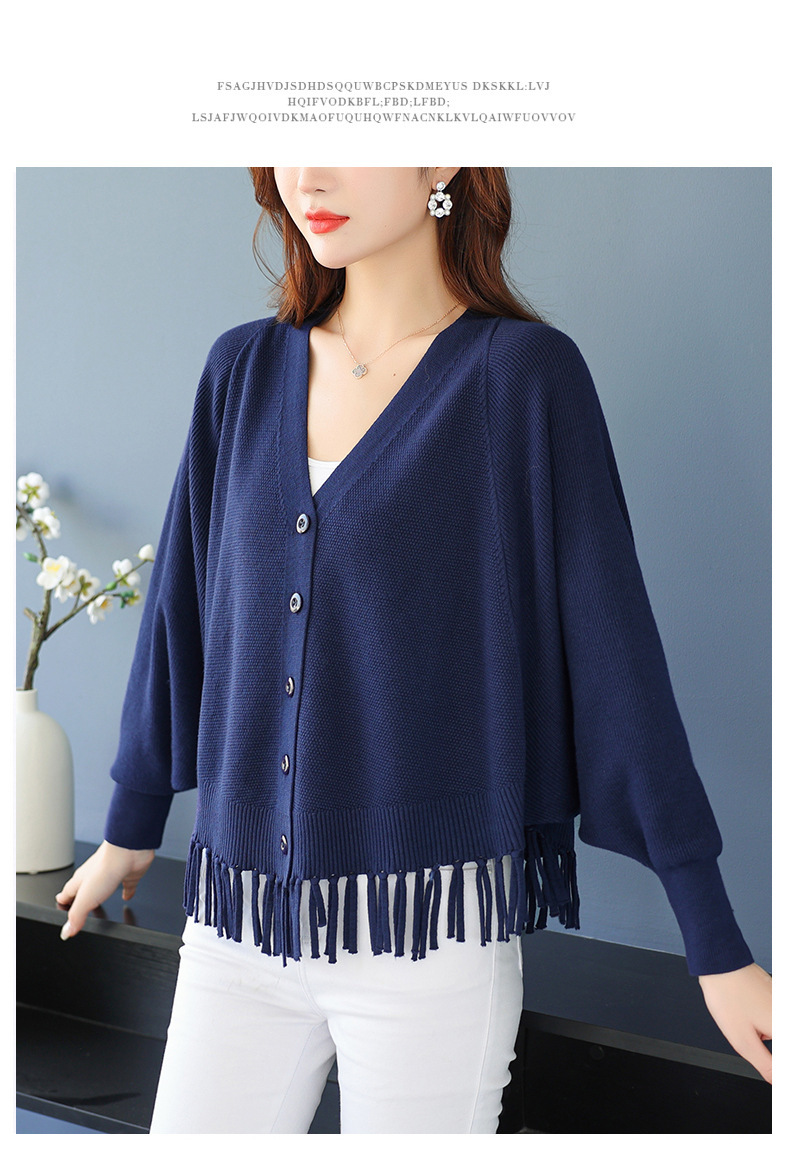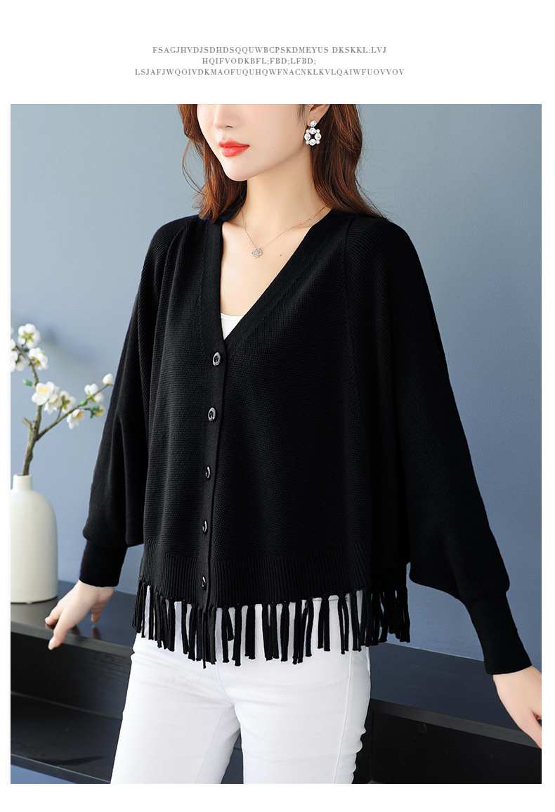 고급 카디건 니트 코트 여성용 망토 목도리 2024 새로운 봄과 가을 배트 모빌 셔츠 탑 술 스웨터 겉옷스토어 가기