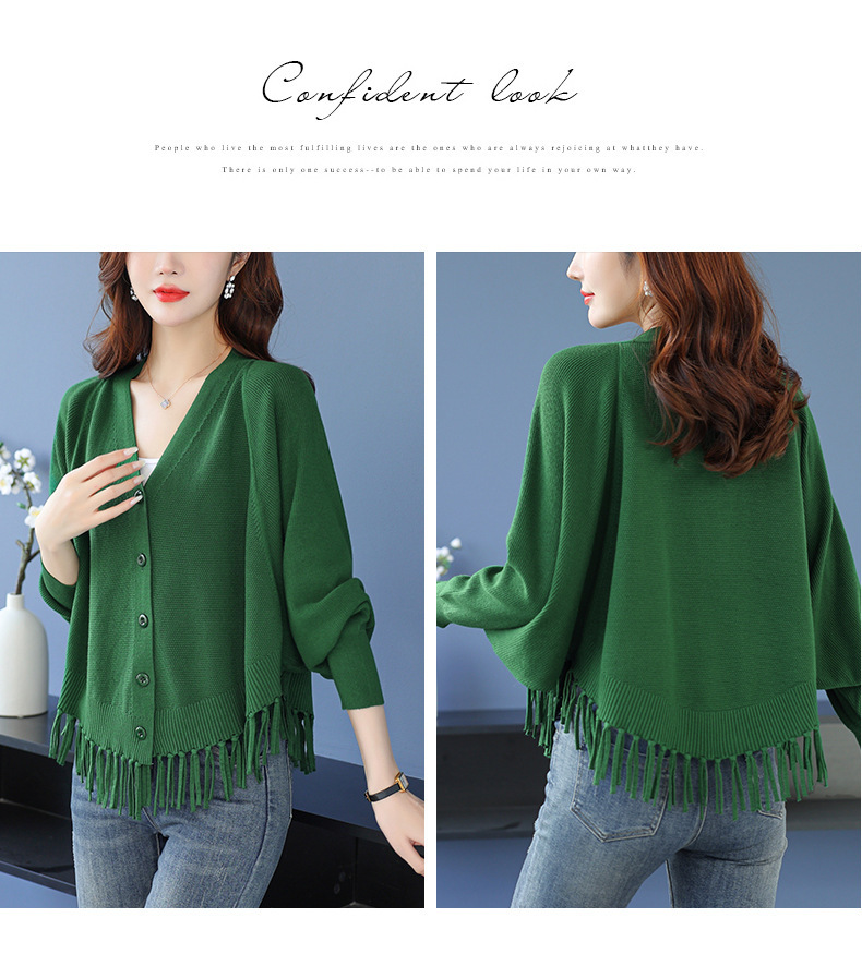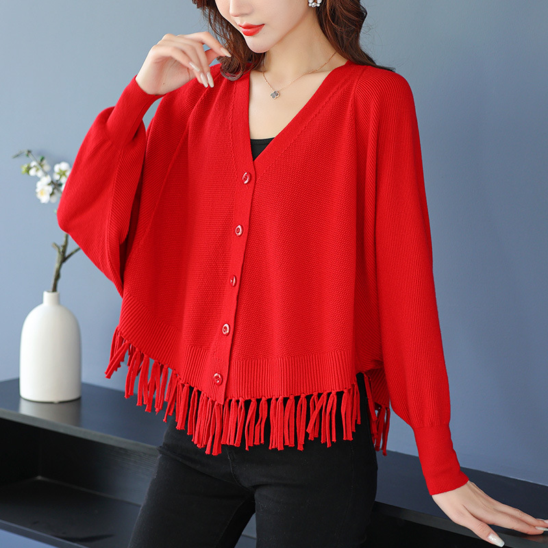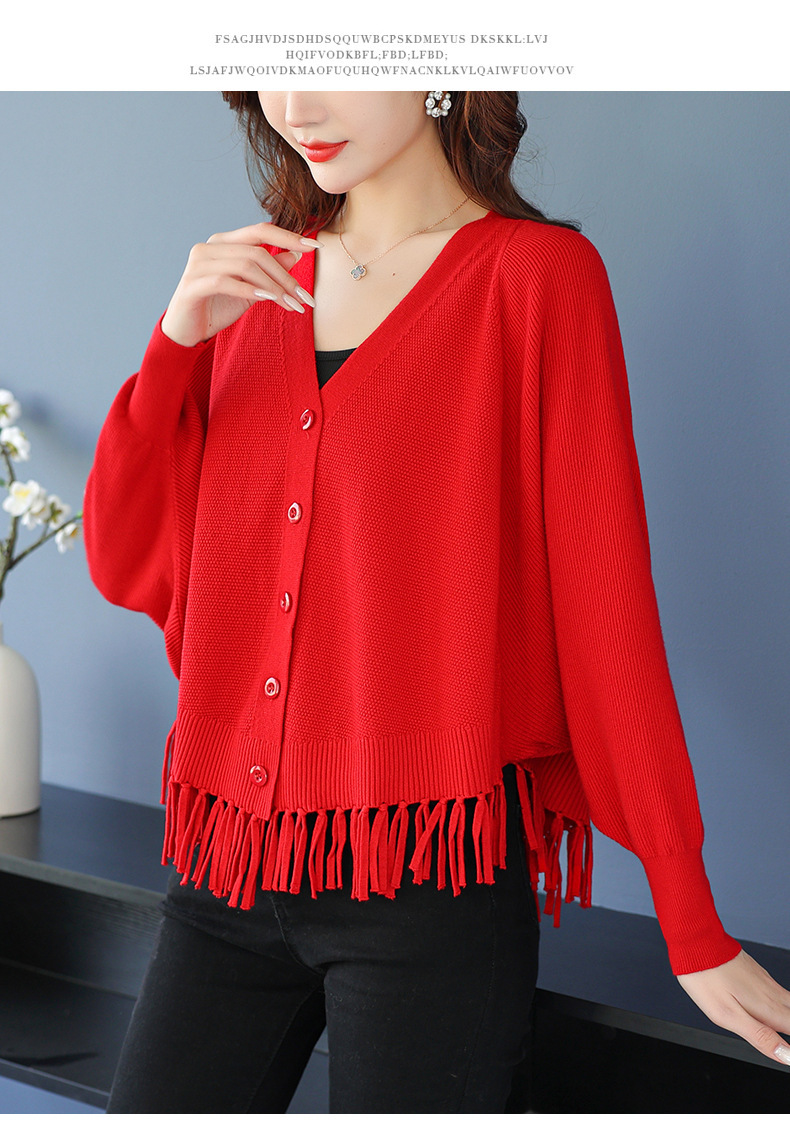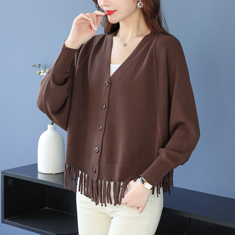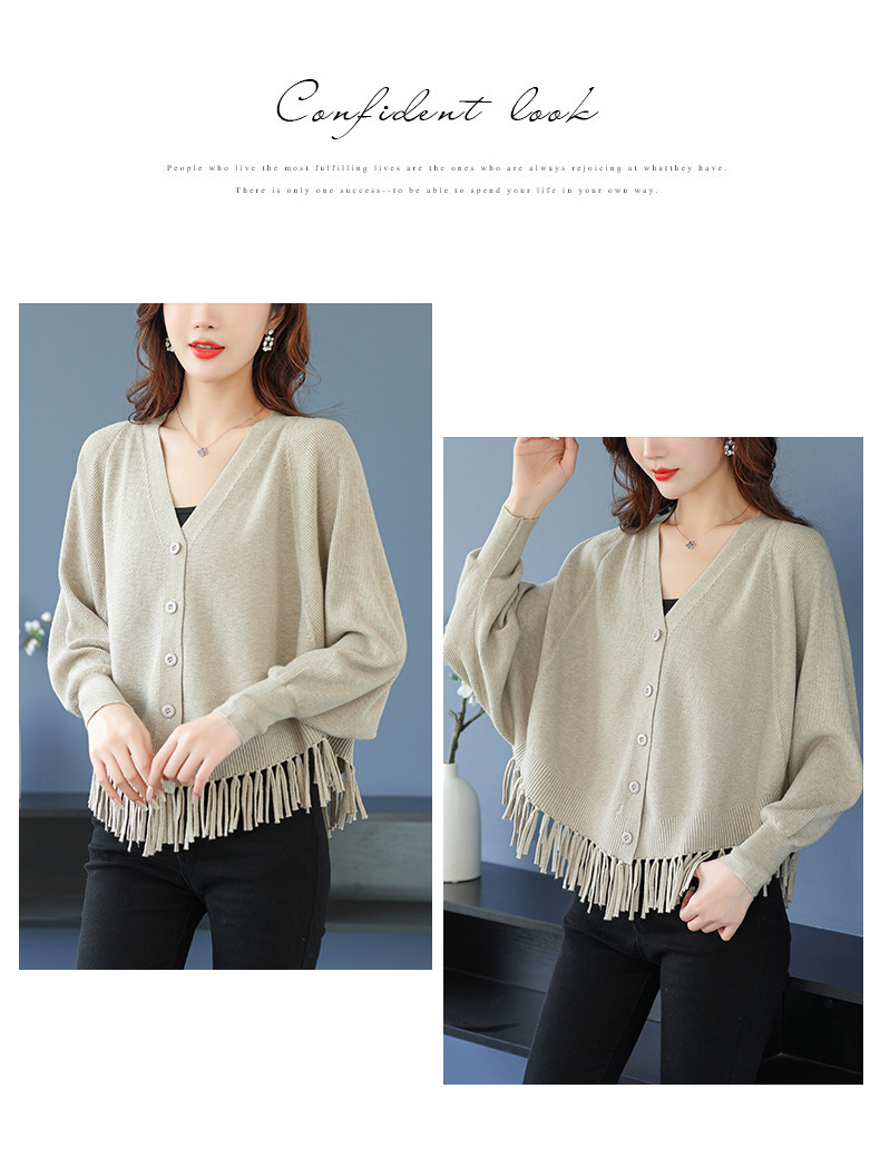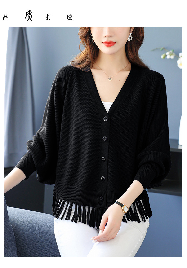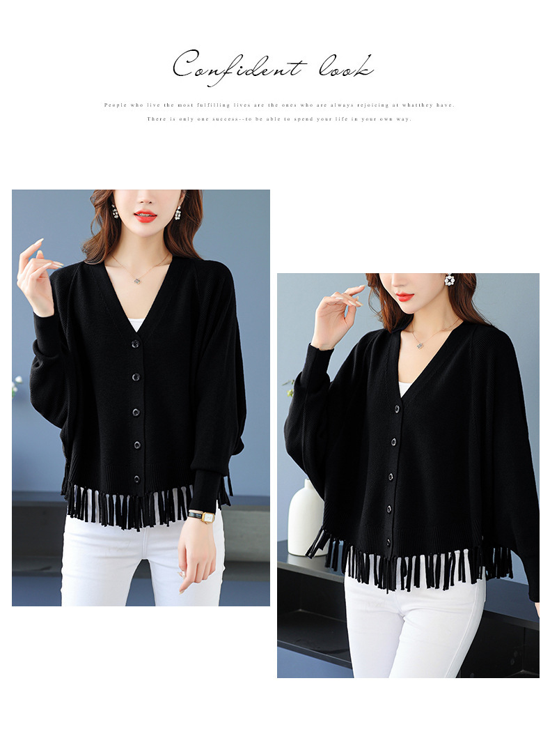 고급 카디건 니트 코트 여성용 망토 목도리 2024 새로운 봄과 가을 배트 모빌 셔츠 탑 술 스웨터 겉옷스토어 가기