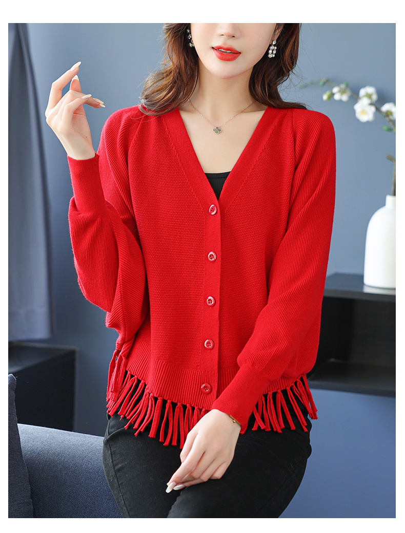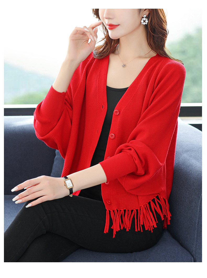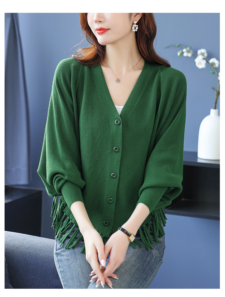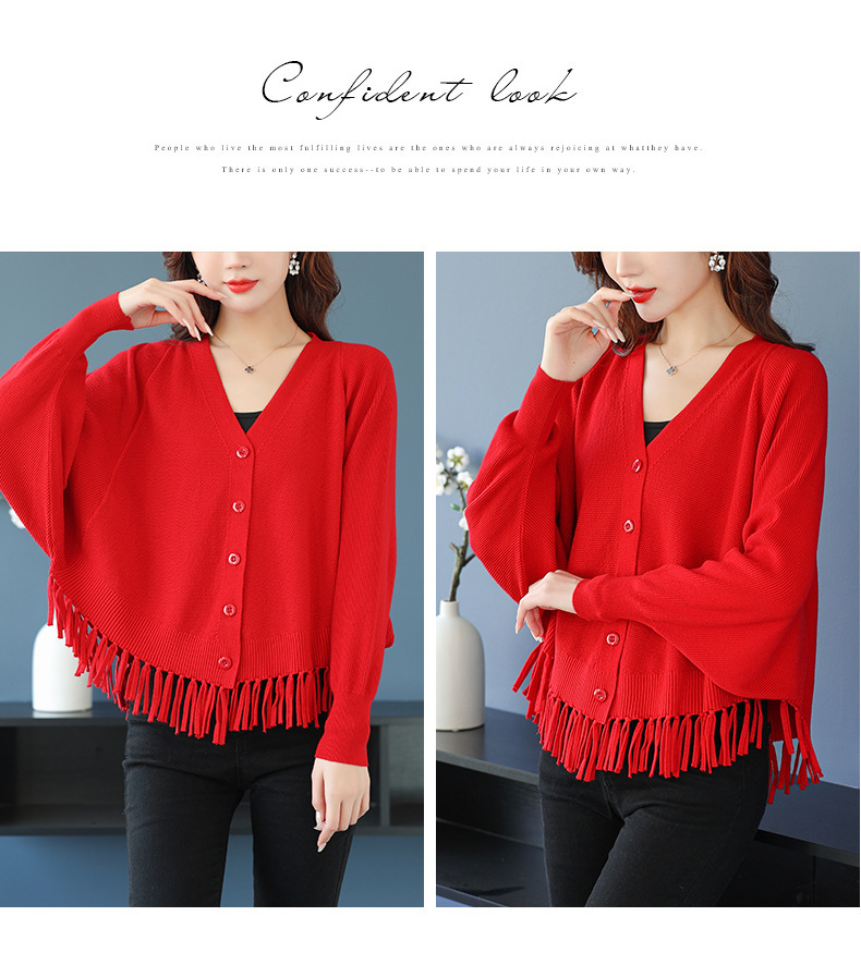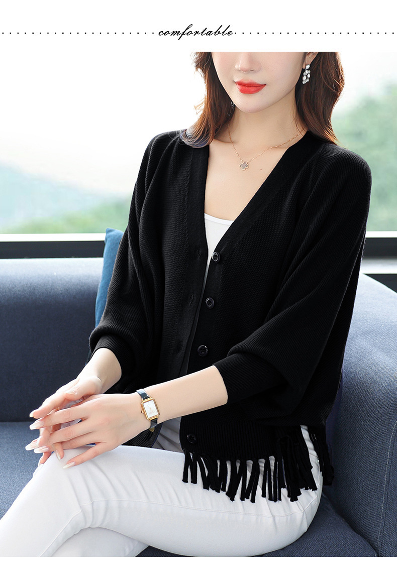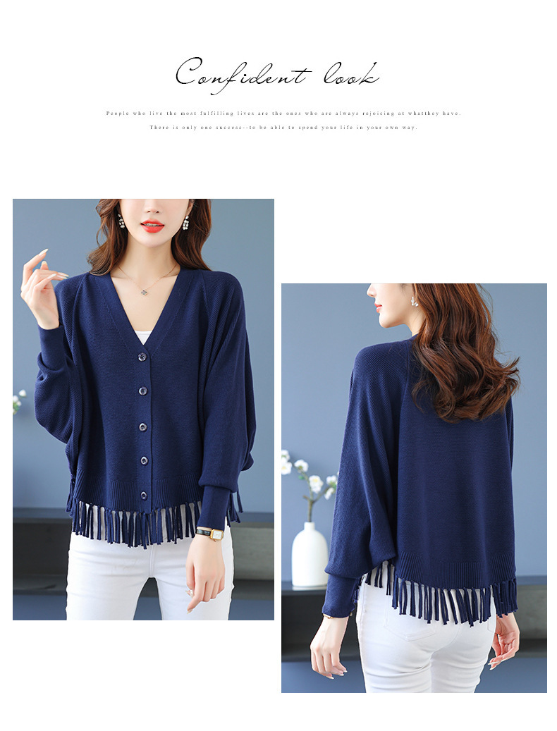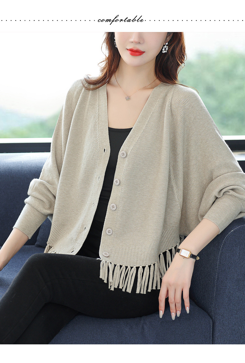 고급 카디건 니트 코트 여성용 망토 목도리 2024 새로운 봄과 가을 배트 모빌 셔츠 탑 술 스웨터 겉옷스토어 가기