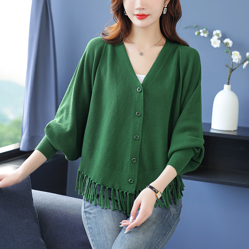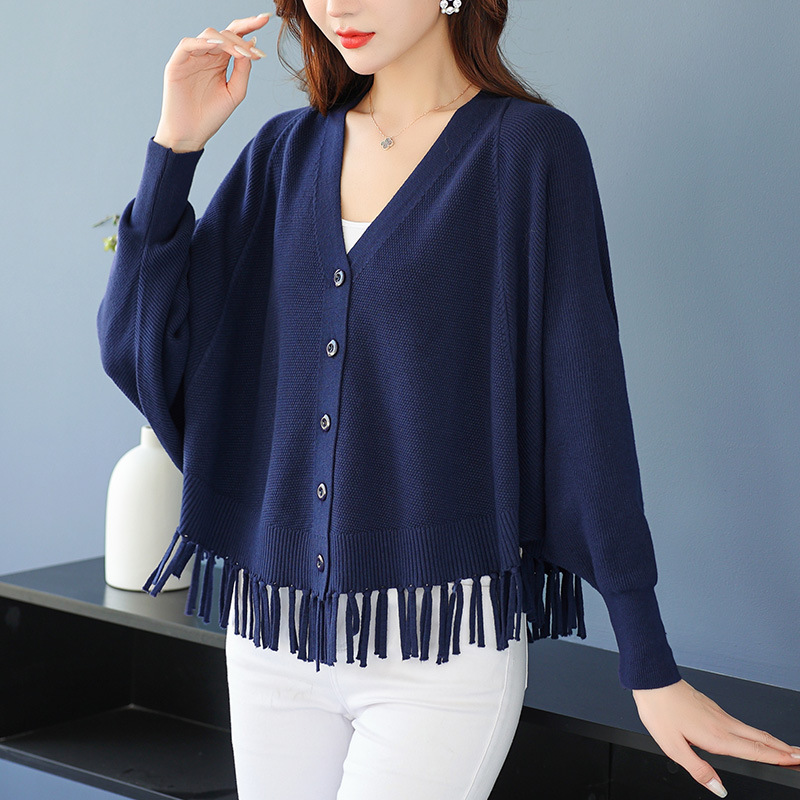 고급 카디건 니트 코트 여성용 망토 목도리 2024 새로운 봄과 가을 배트 모빌 셔츠 탑 술 스웨터 겉옷