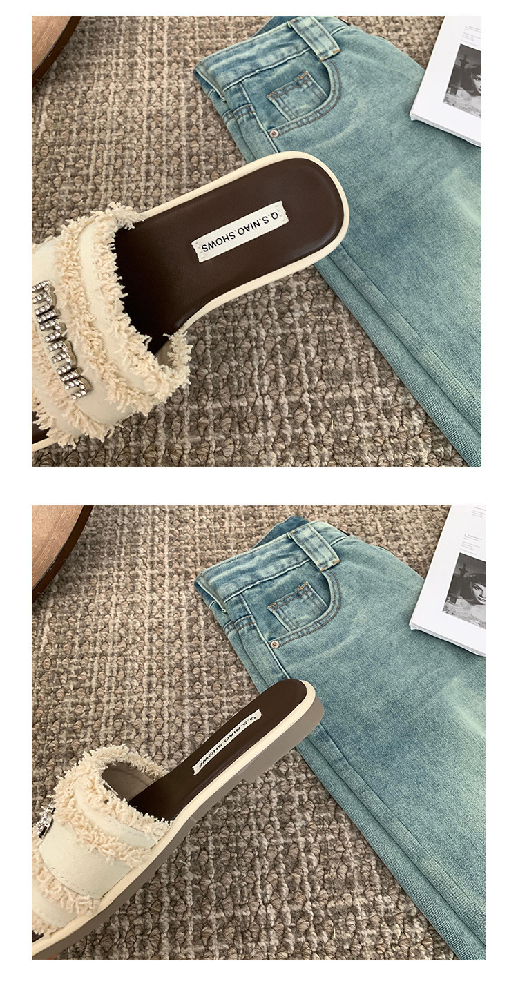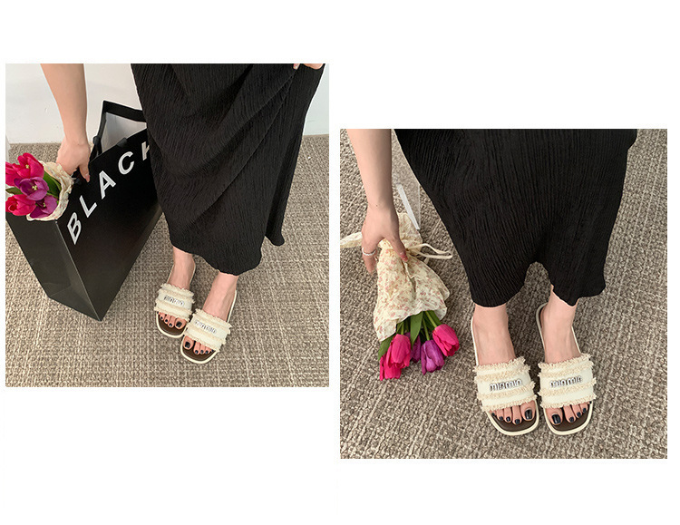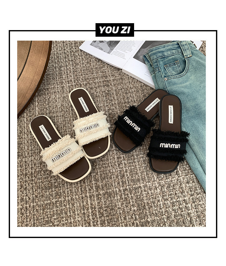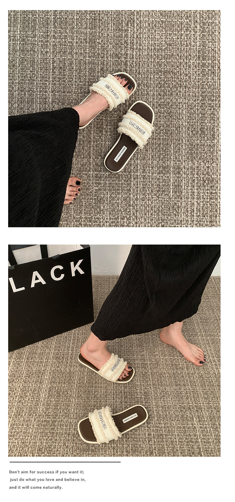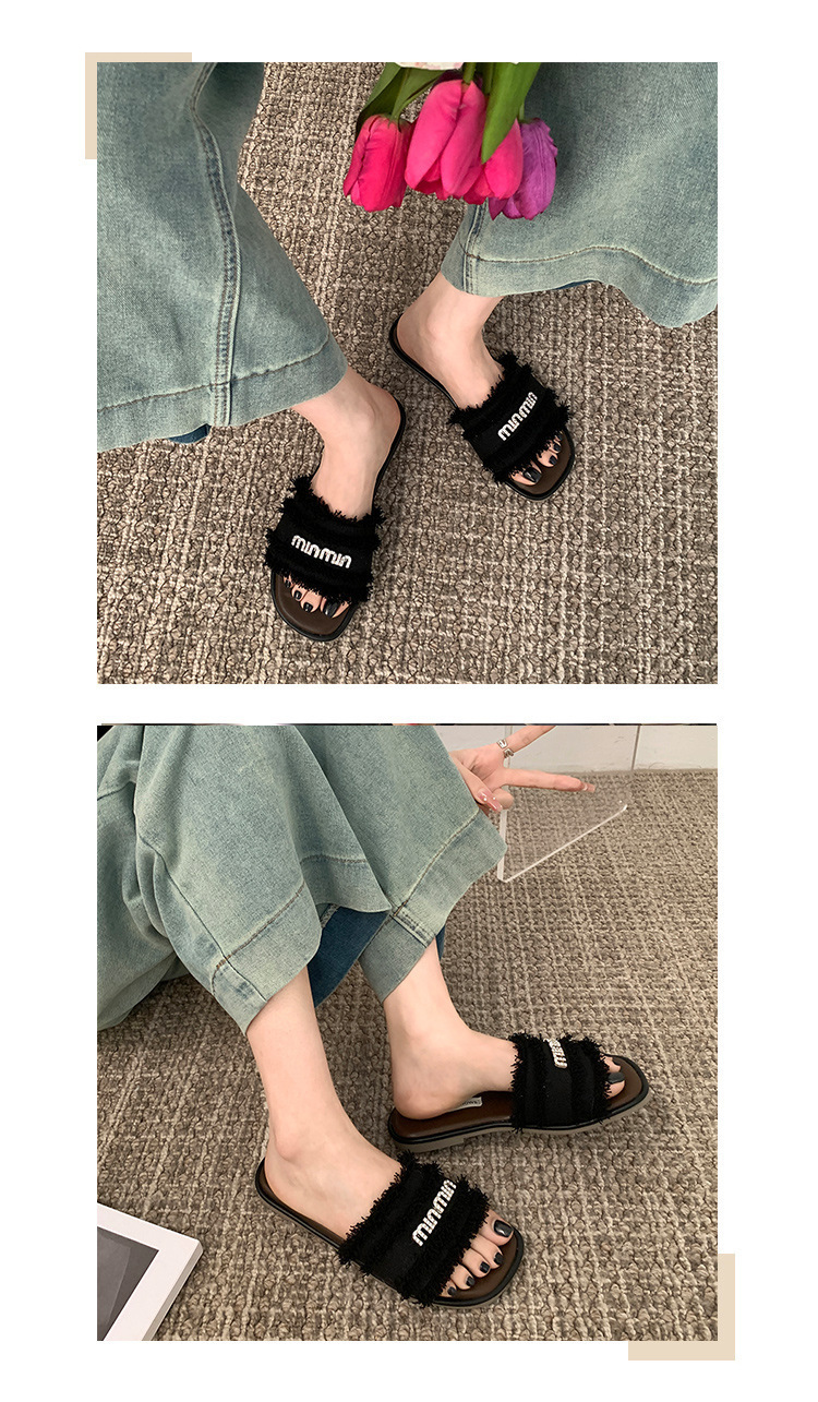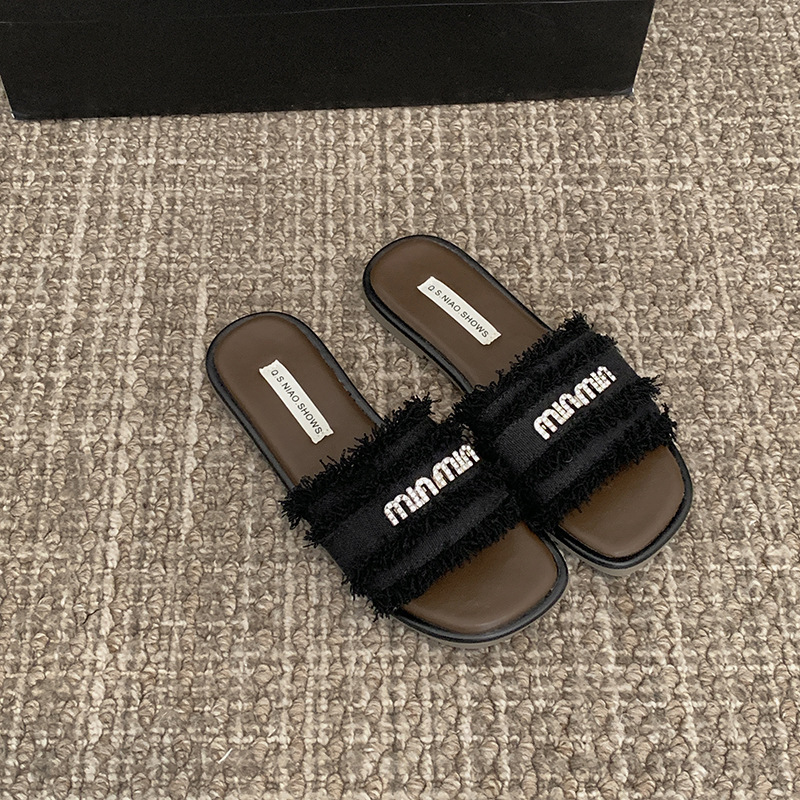 유행 올 매치 인터넷-인기있는 블랙 플랫 슬리퍼 여성 여름 외부 착용 2024 새로운 하이 엔드 경량 샌들스토어 가기